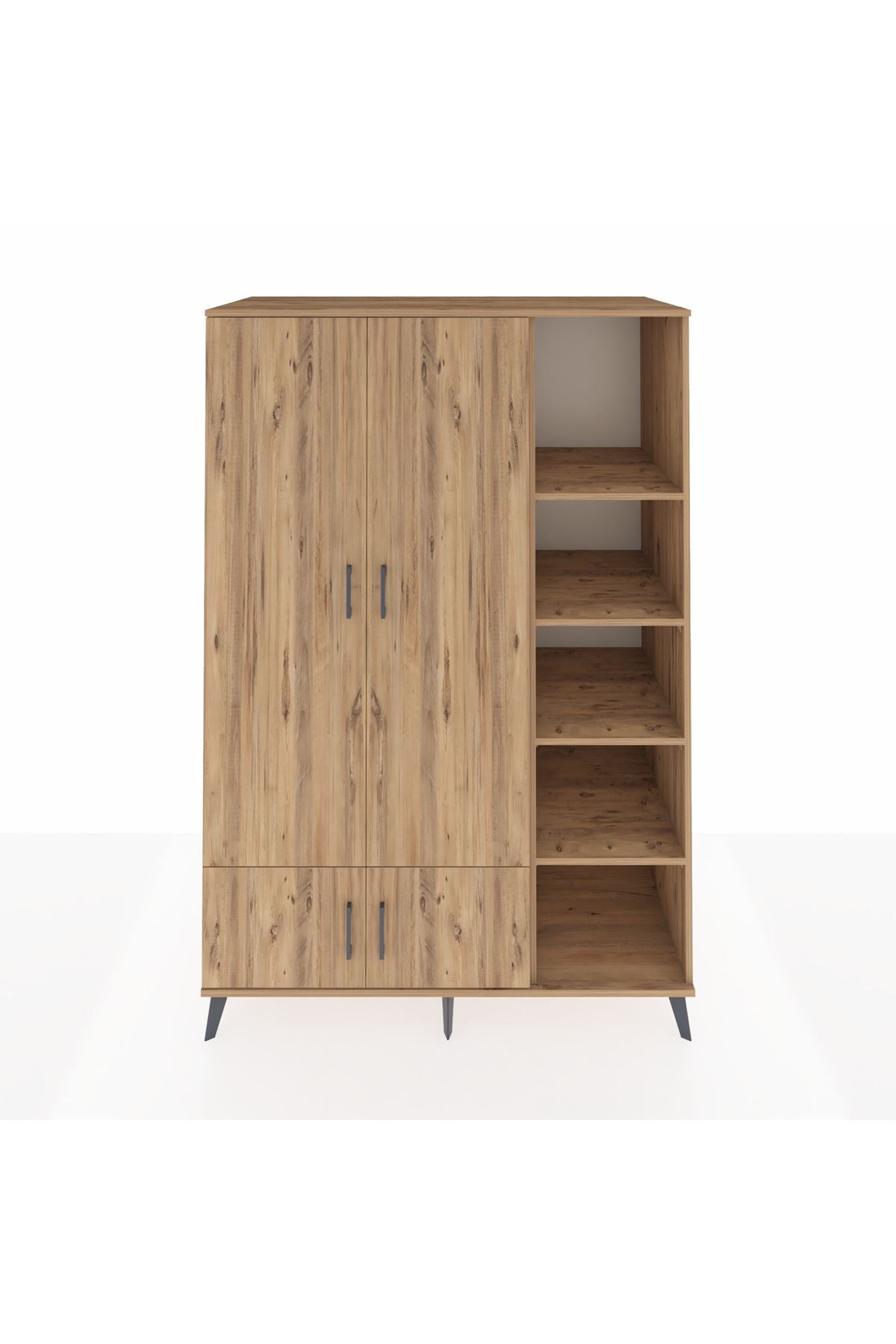 Kronos Dolap 6 Raflı 4 Kapaklı Tek Askılı 132x59x195 Çam-Çam/Çam