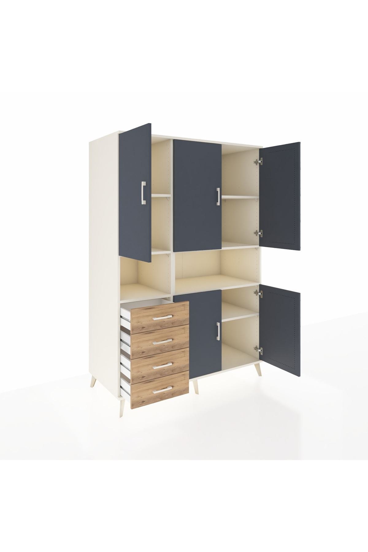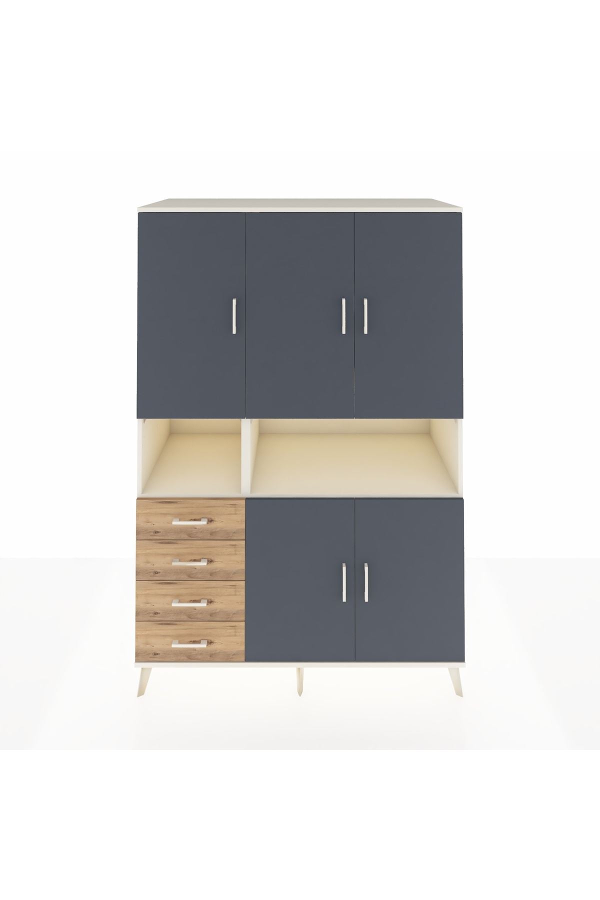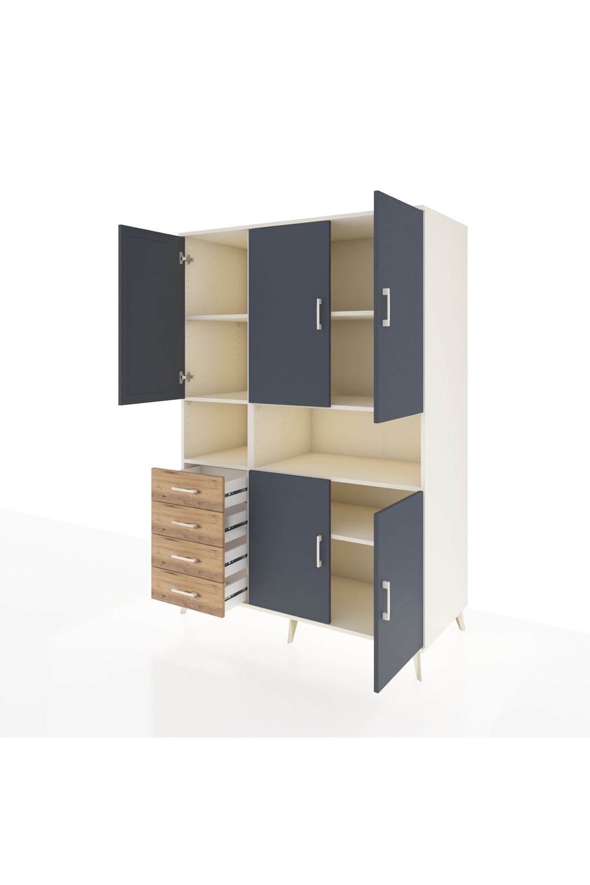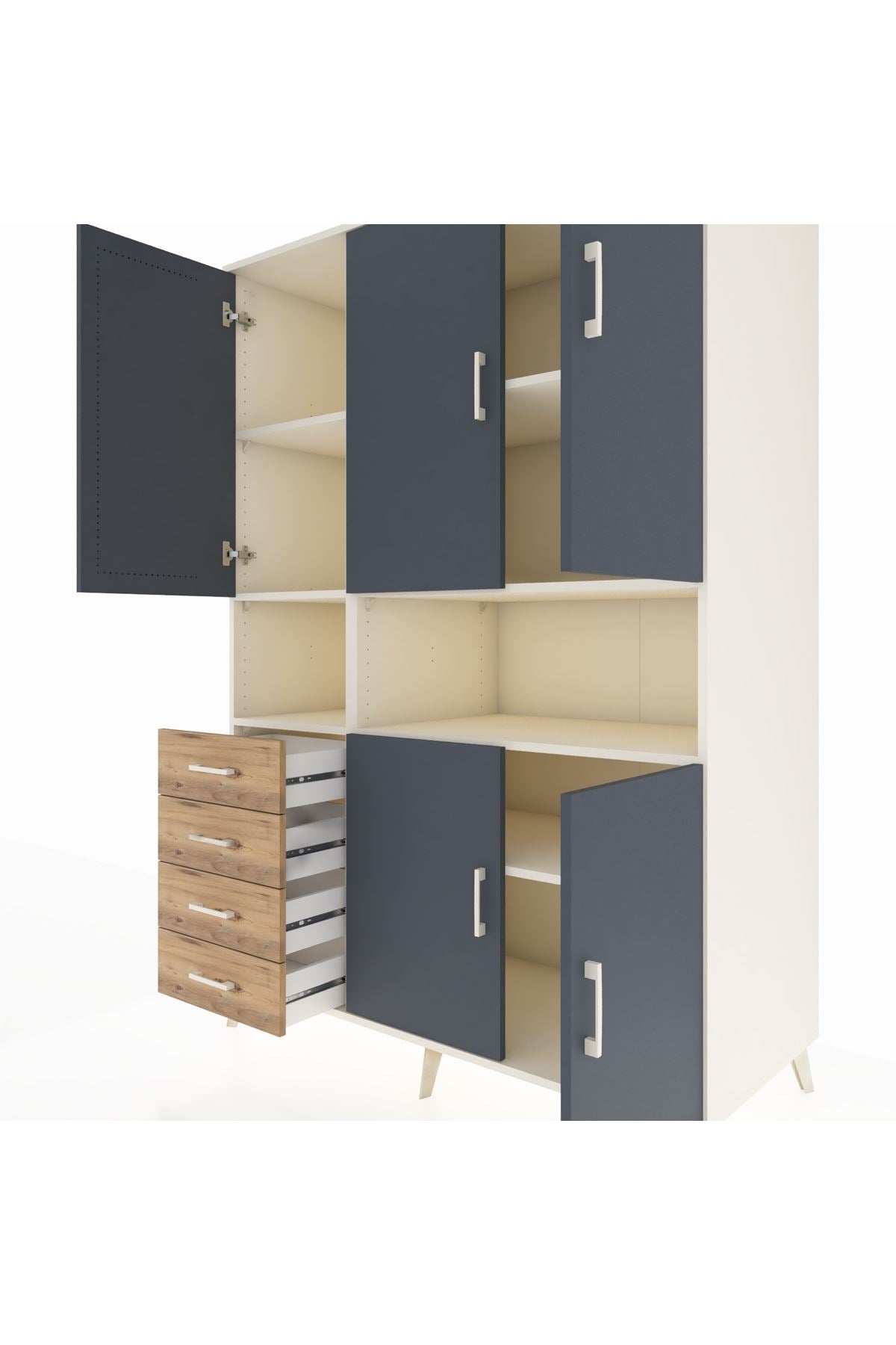 7 geniş rafı, 4 kullanışlı çekmecesi ve 5 kapaklı yapısıyla çok amaçlı depolama ihtiyacınıza modern bir yanıt sunuyor.