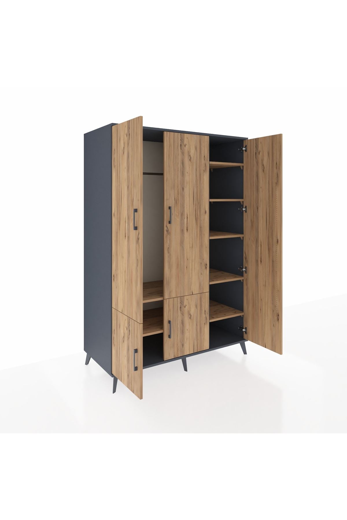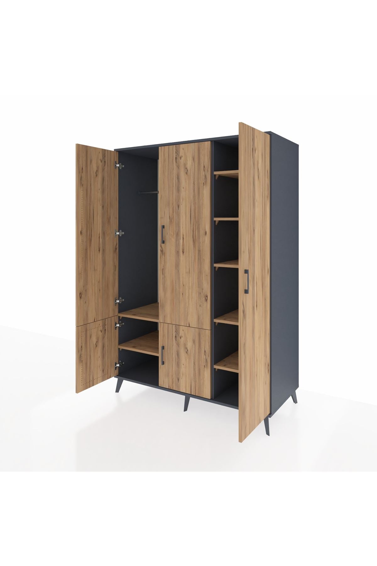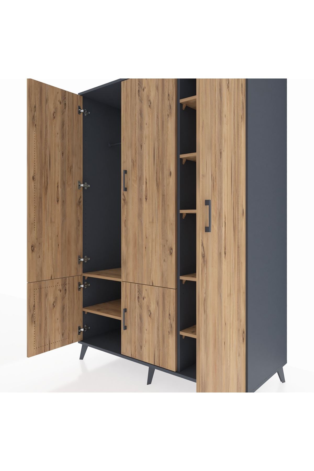🌞 Kronos Dolap 8 Raflı 4 Çekmeceli 3 Kapaklı 132x59x195 Çam-Aytaşı/Antrasit