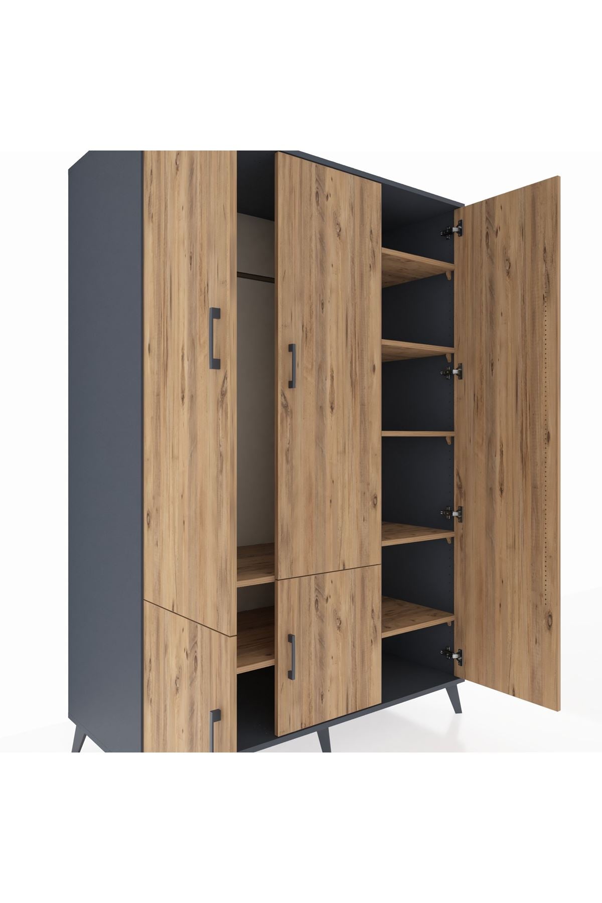 Kronos Dolap 7 Raflı 5 Kapaklı Tek Askılı 132x59x195 Antrasit-Çam/Çam