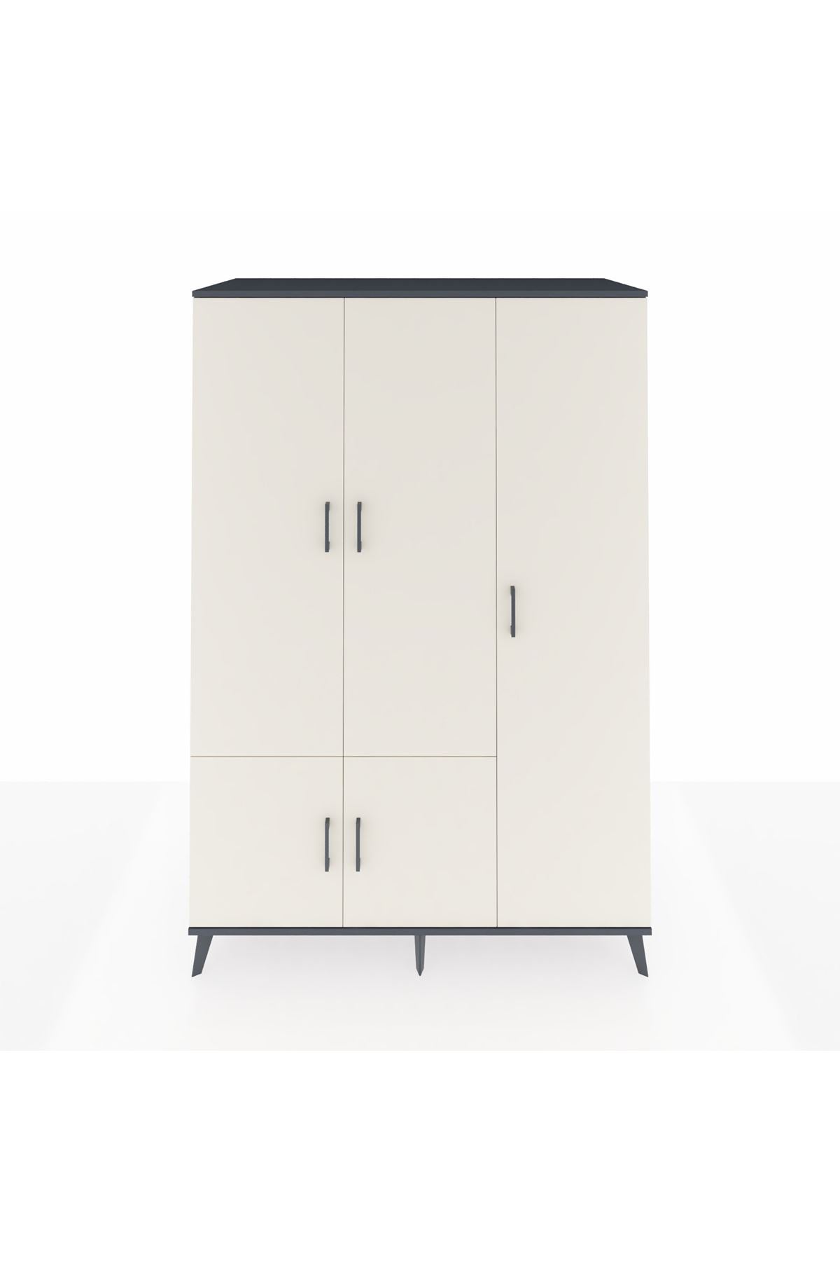 Kronos Dolap 7 Raflı 5 Çekmeceli 3 Kapaklı 132x59x195 Antrasit-Antrasit/Çam