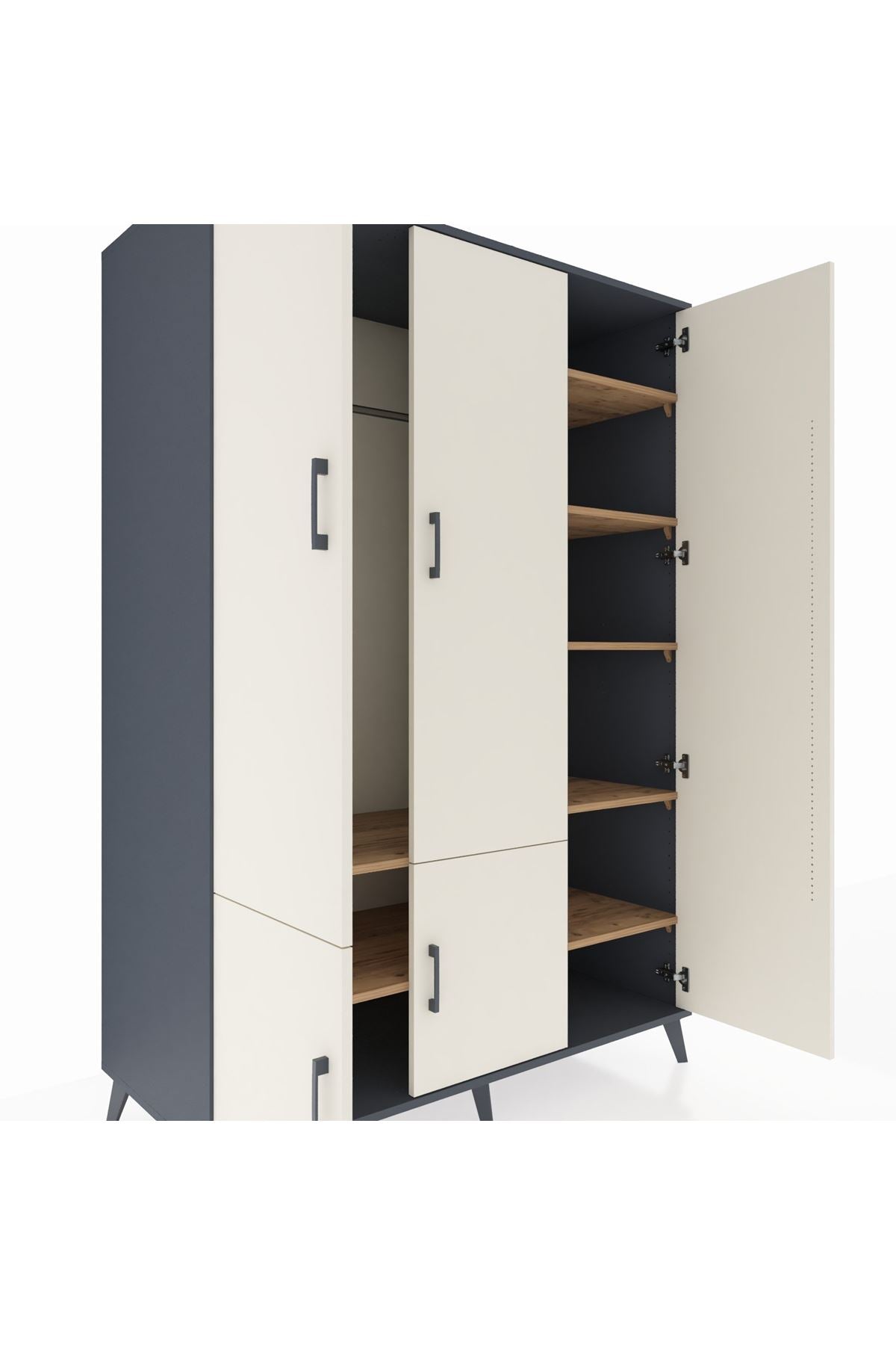 Kronos Dolap 7 Raflı 5 Kapaklı Tek Askılı 132x59x195 Antrasit-Aytaşı/Çam