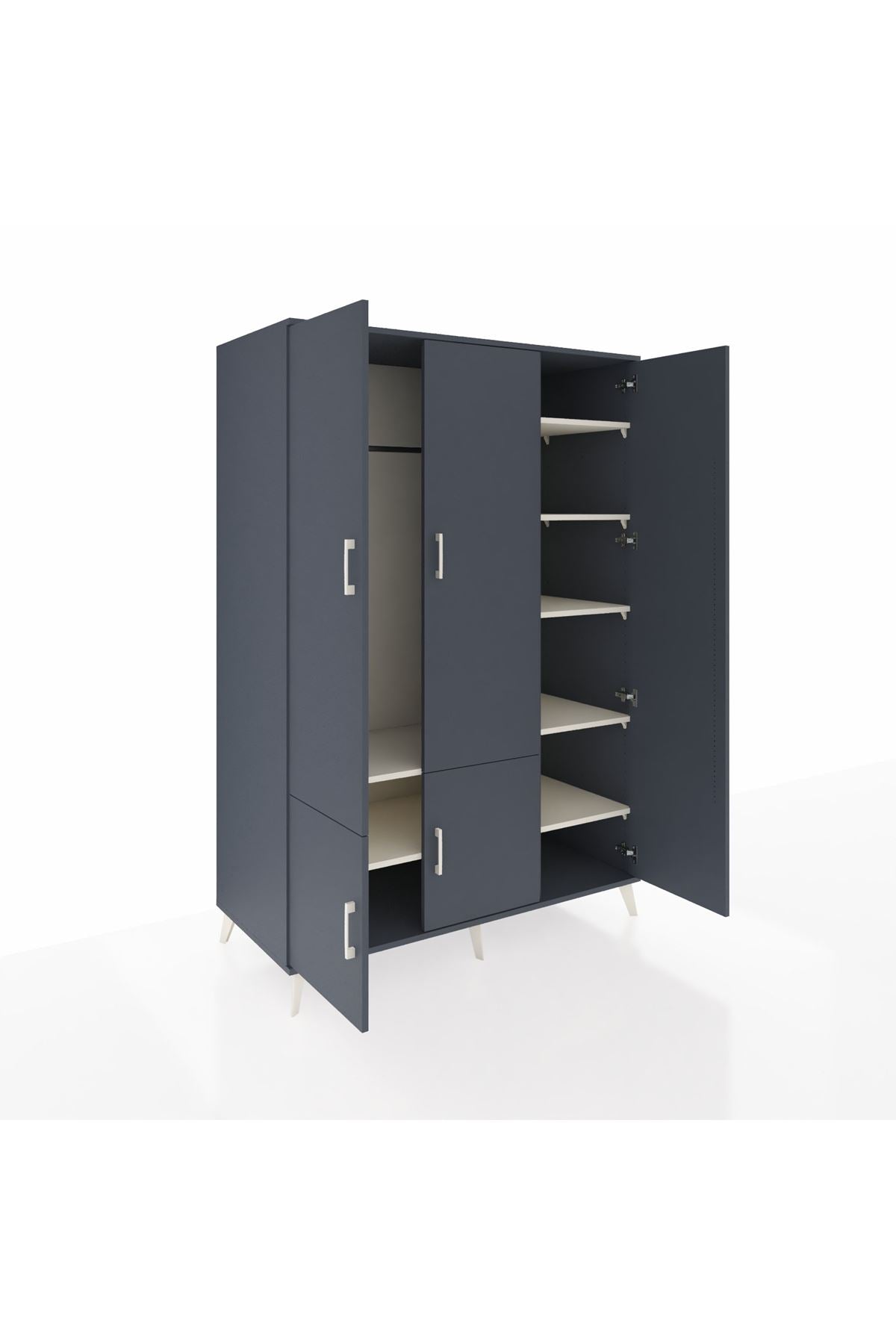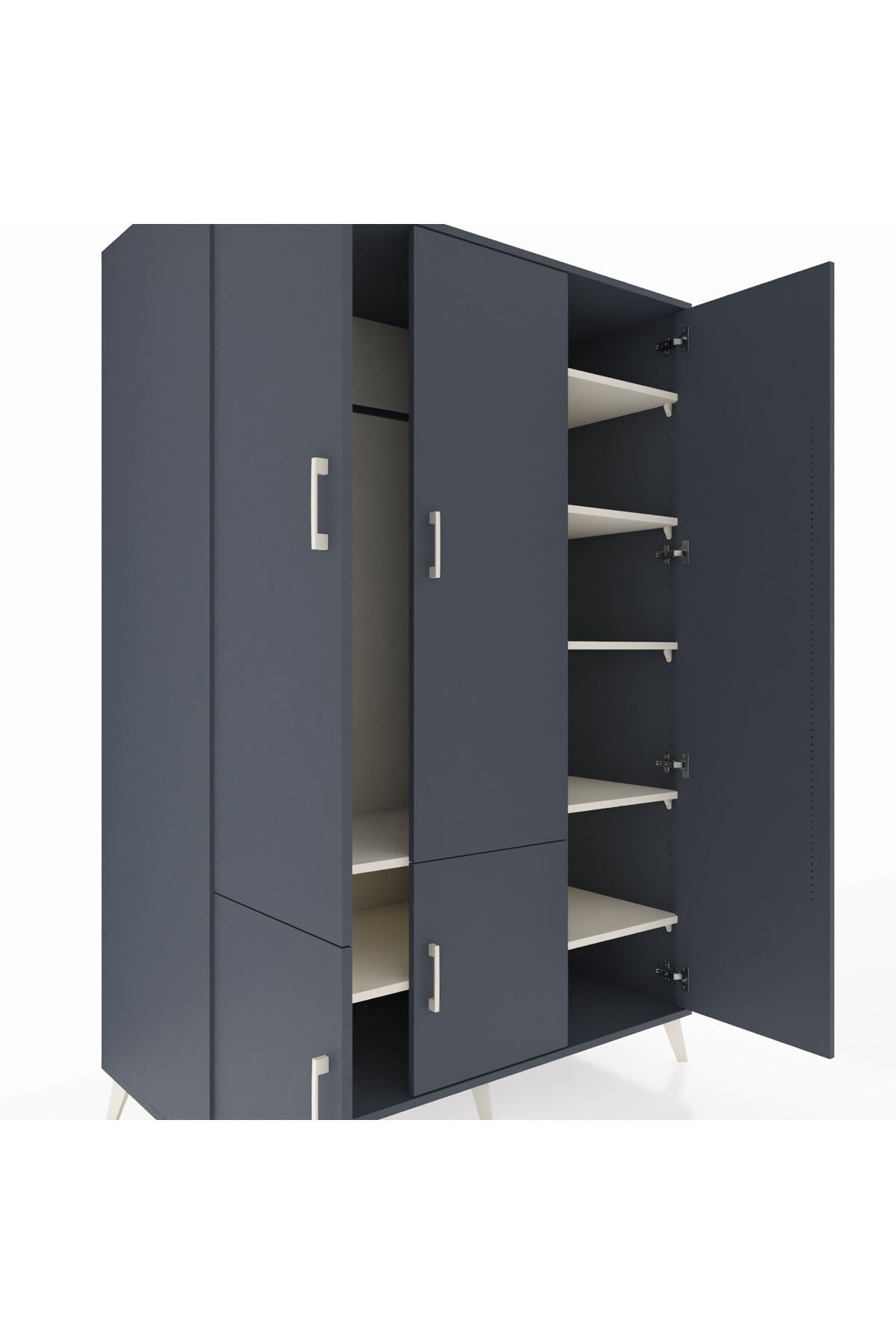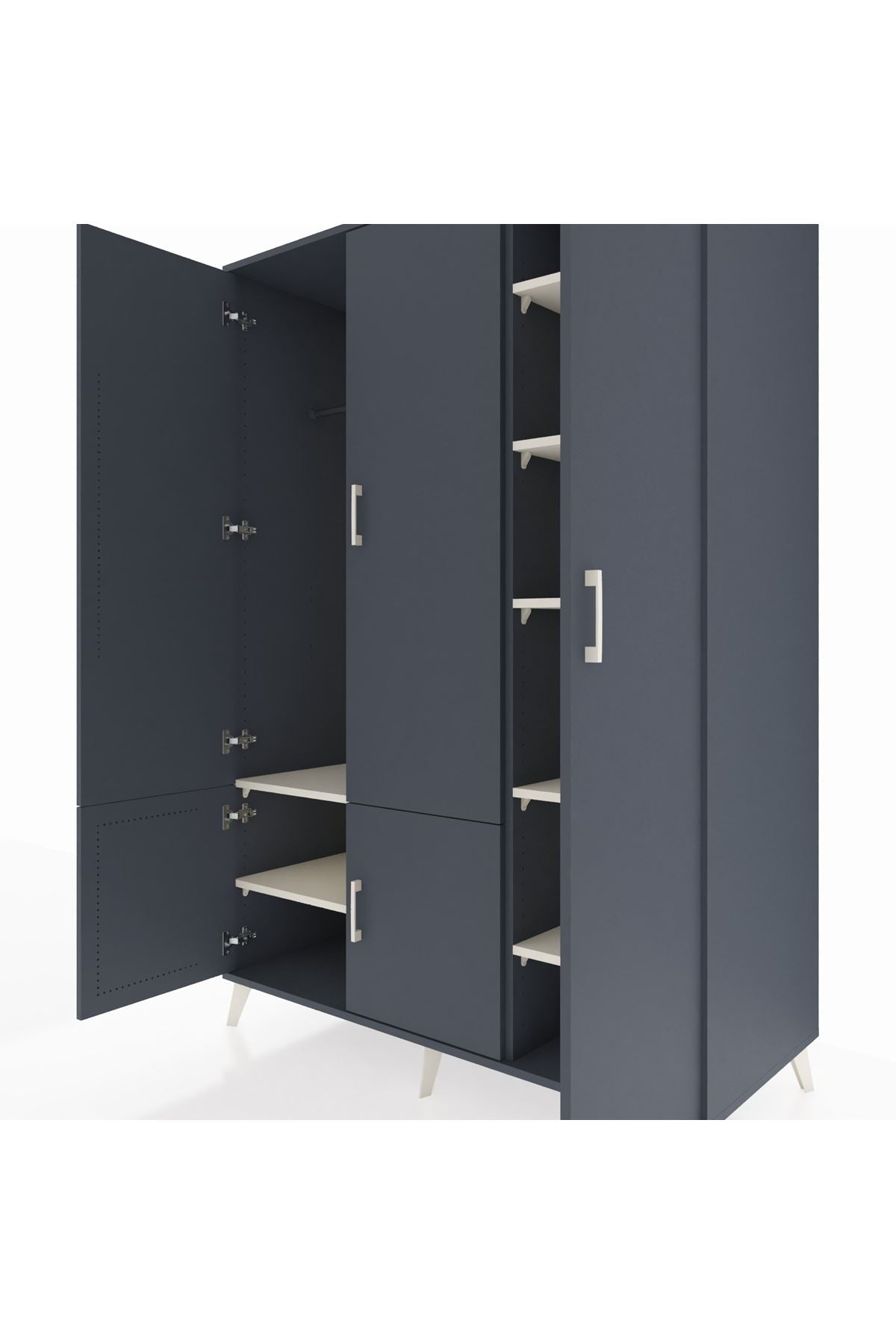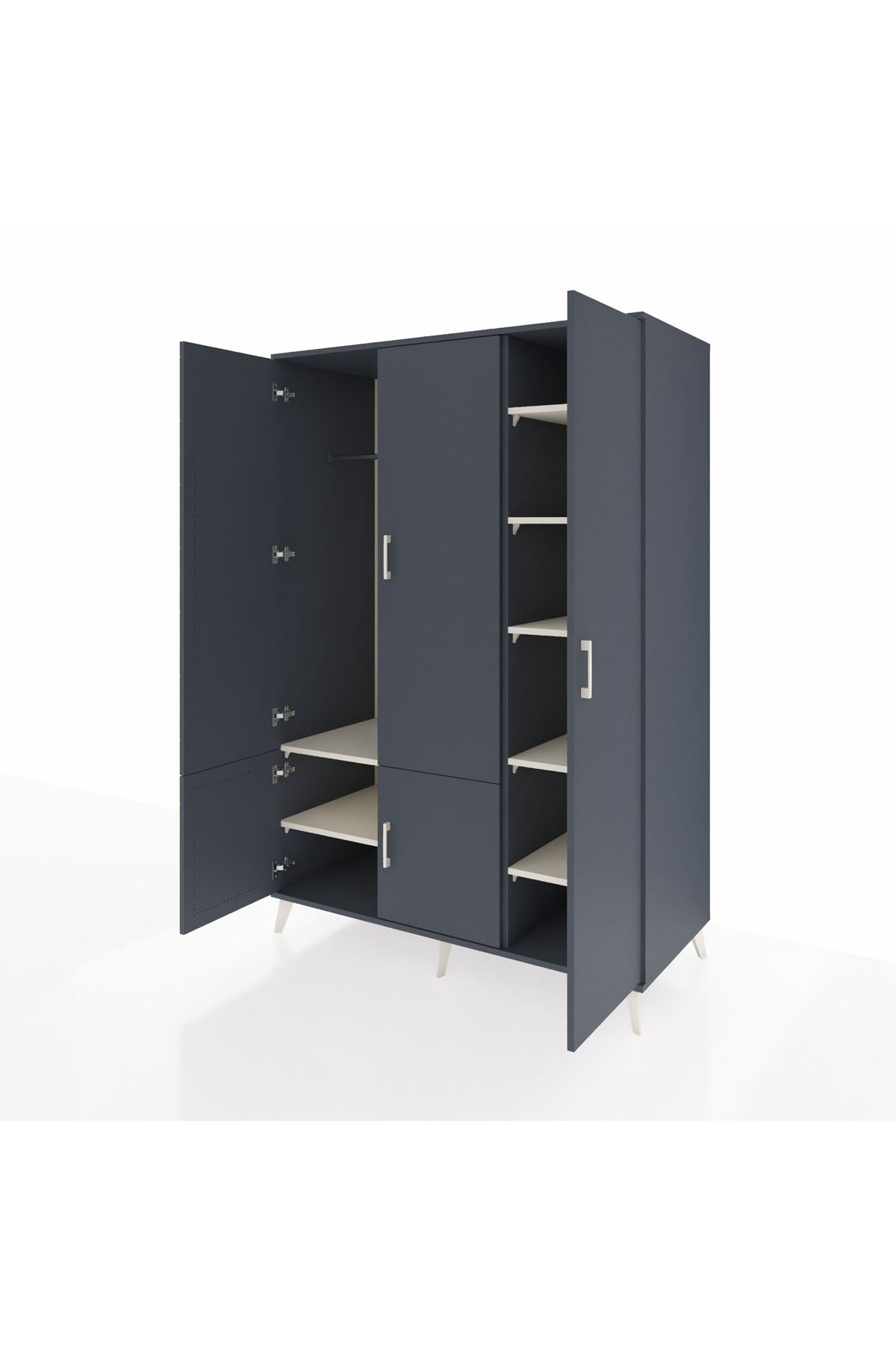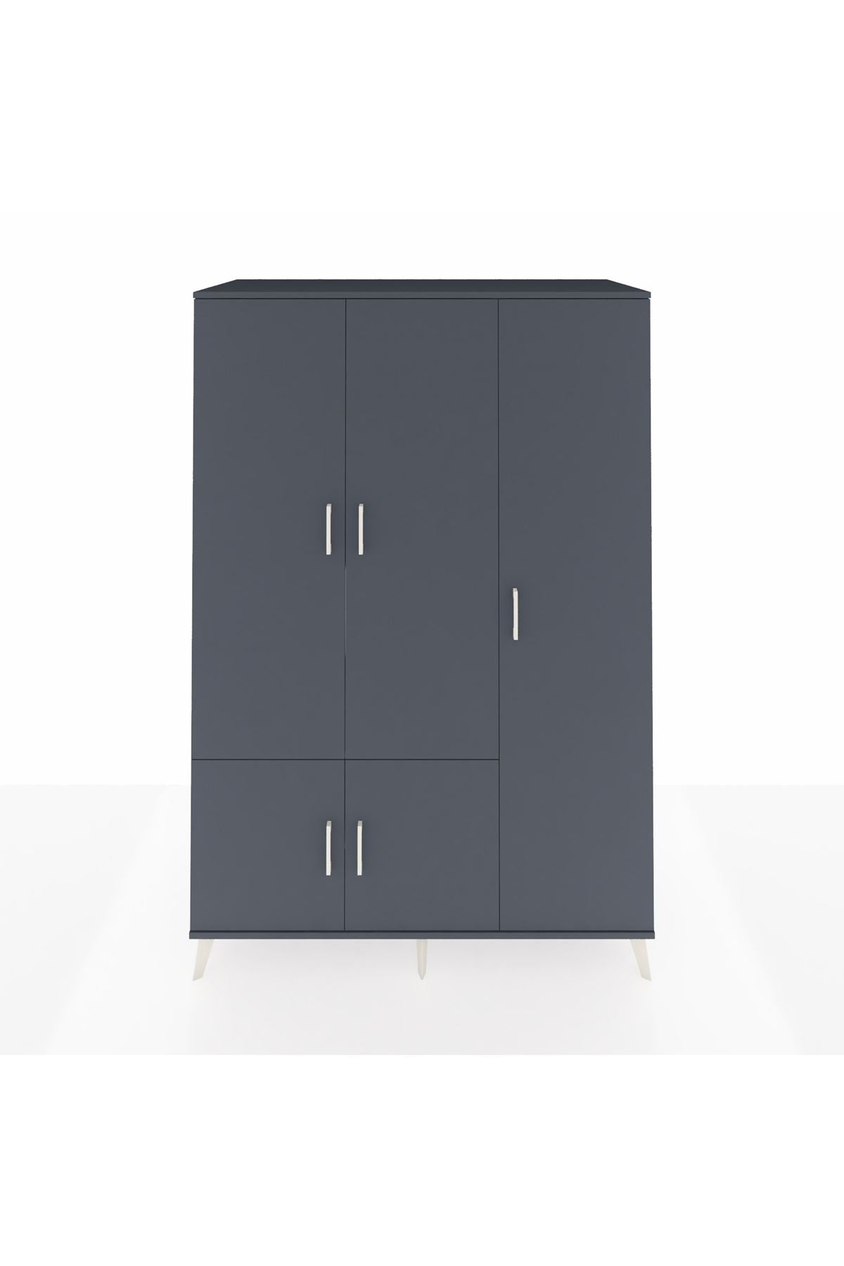 Kronos Dolap’ta dayanıklılığın ve zarafetin buluşmasına şahit olun. Kastamonu Entegre 1. sınıf suntalam gövde, 1.2 mm kenar bandı ve sağlam metal ayaklar yıllarca ilk günkü görünümünü korur. Antrasit rengin asil duruşu, metal kulplarla birleşerek zamansız bir stil yaratır.