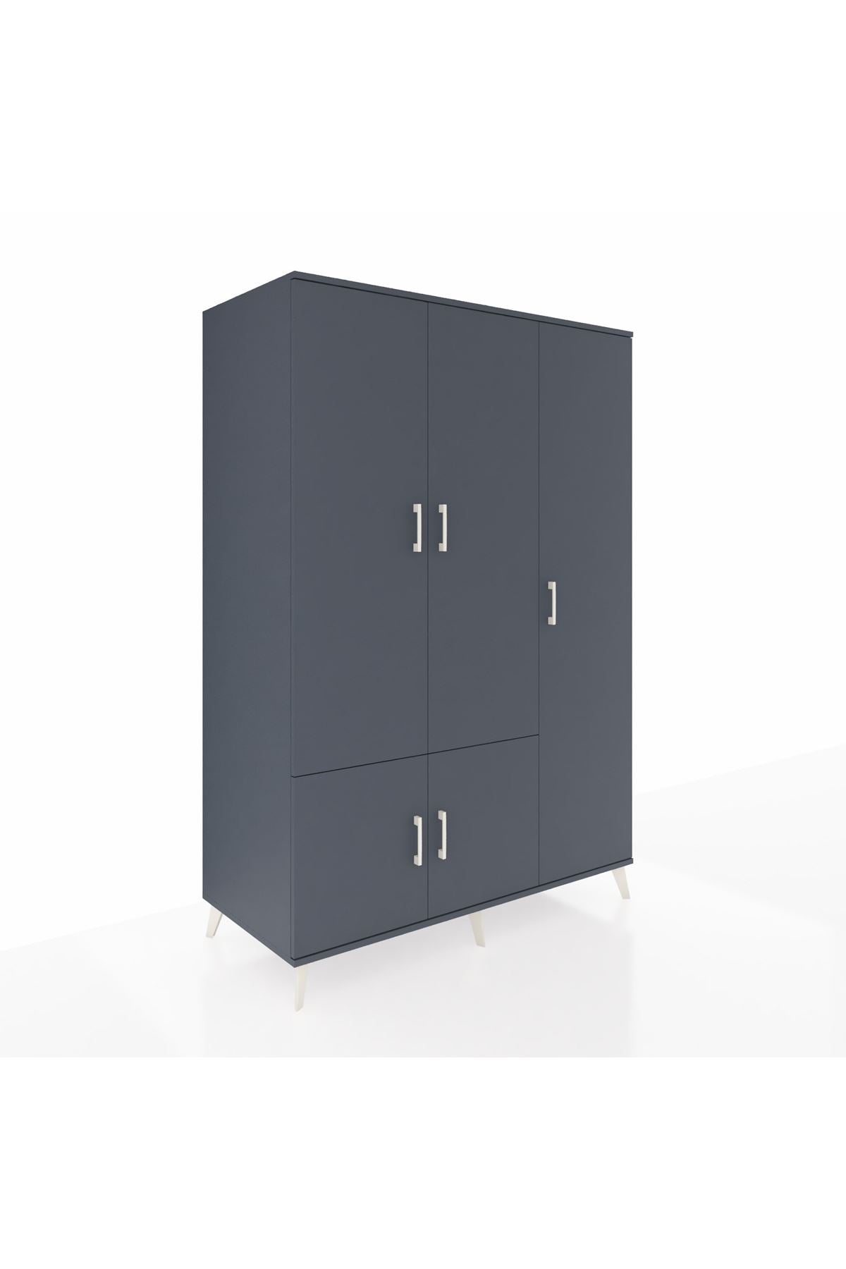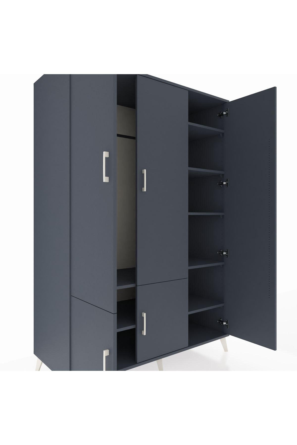 Kronos Dolap 7 Raflı 5 Kapaklı Tek Askılı 132x59x195 Antrasit-Antrasit/Antrasit