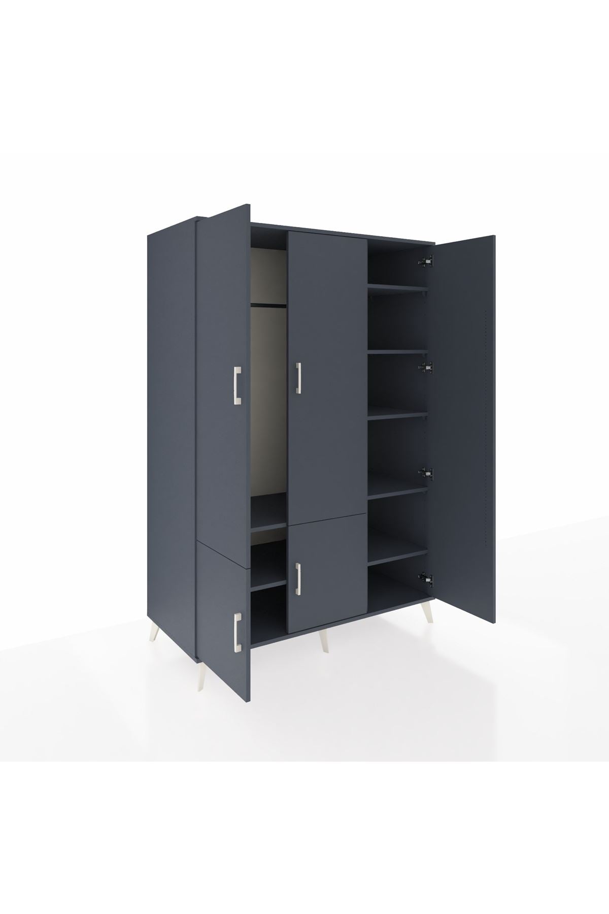 132 cm genişlik, 59 cm derinlik ve 195 cm yüksekliğiyle çok amaçlı kullanım sunar 📏 8 rafı ve 4 geniş çekmecesiyle eşyalarınızı düzenli ve kolay erişilebilir şekilde saklamanızı sağlar 📚🧺 3 kapaklı tasarım, estetik görünümüyle hem yatak odası hem de salon veya çalışma odası gibi birden fazla alana uyum gösterir 🏡