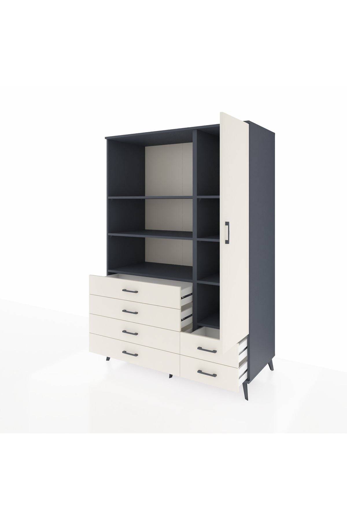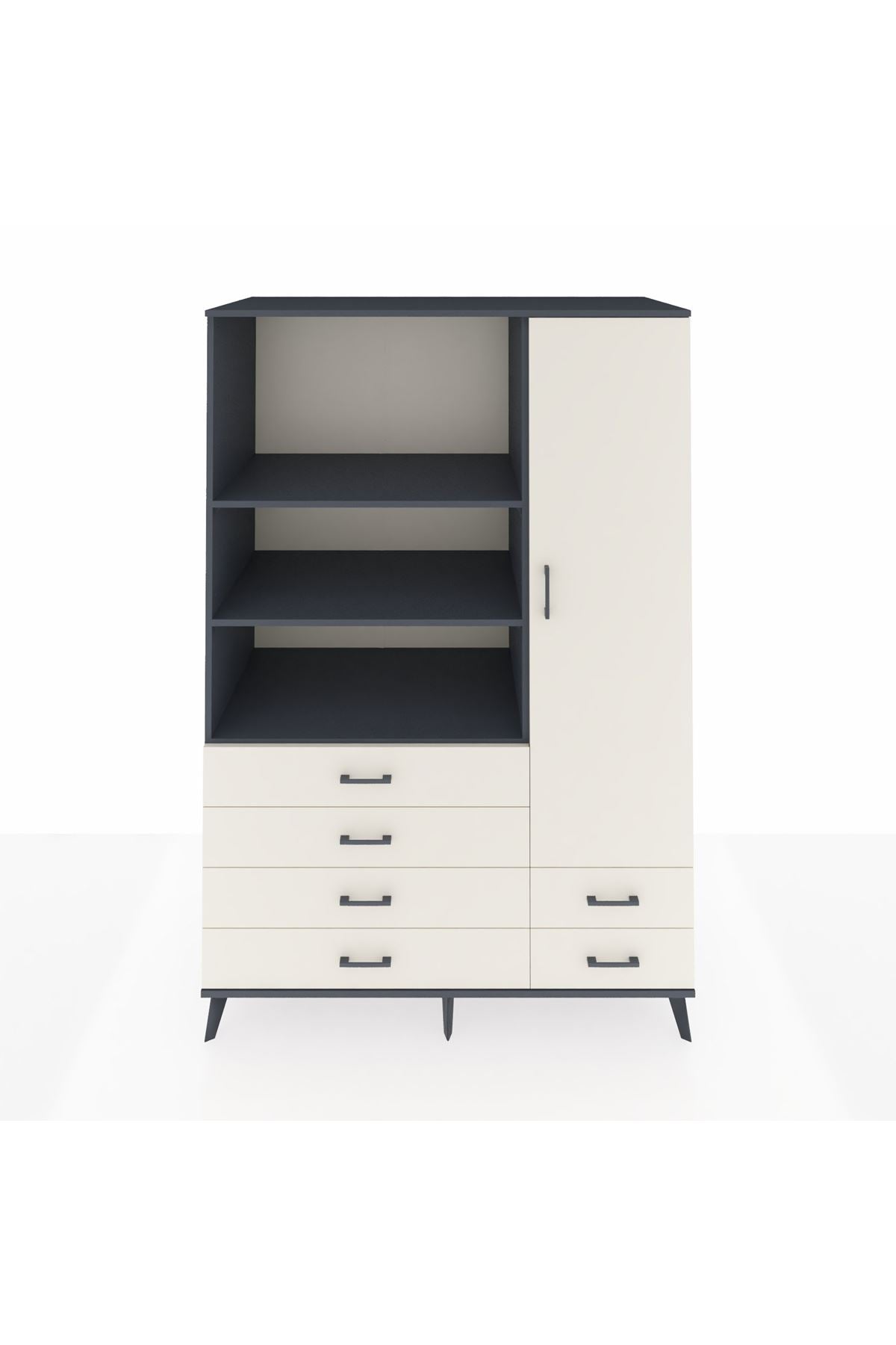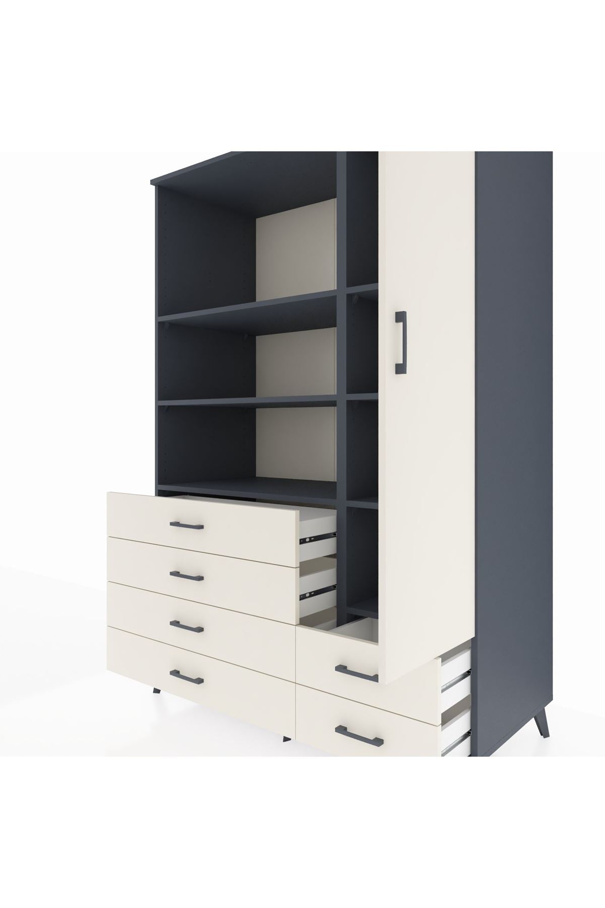 Kronos Dolap 7 Raflı 6 Çekmeceli Tek Kapaklı 132x59x195 Antrasit-Aytaşı/Aytaşı