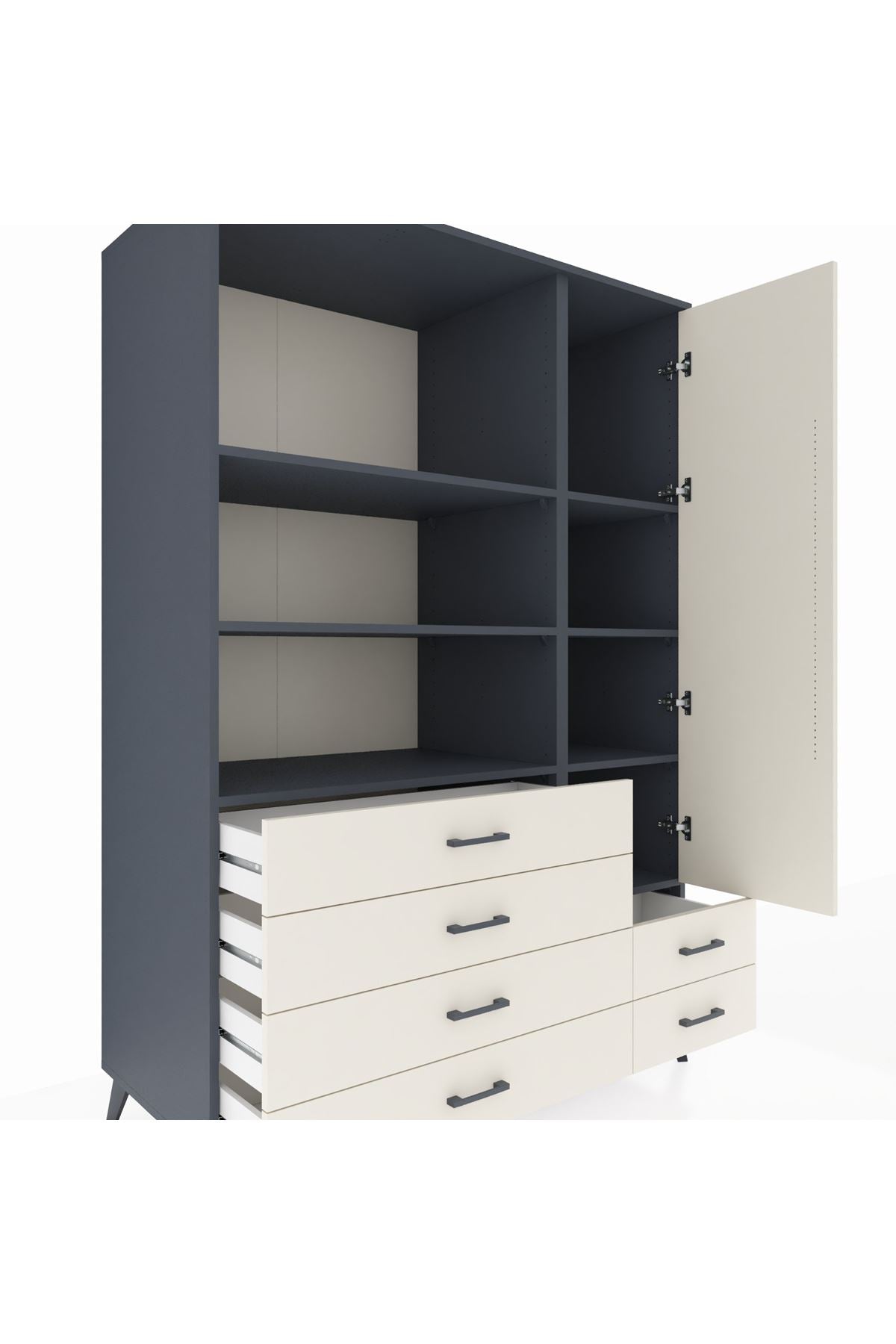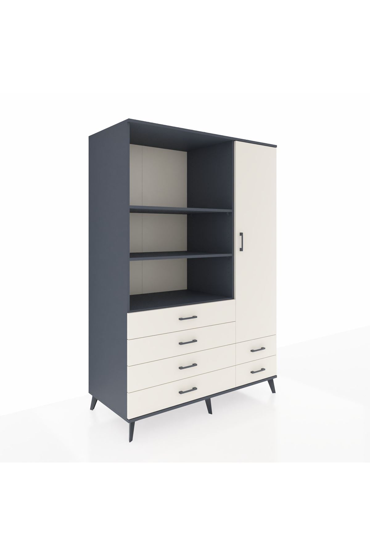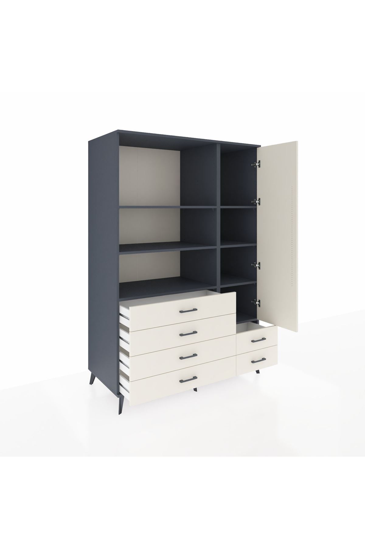 Kronos Dolap 7 Raflı 6 Çekmeceli Tek Kapaklı 132x59x195 Antrasit-Aytaşı/Aytaşı