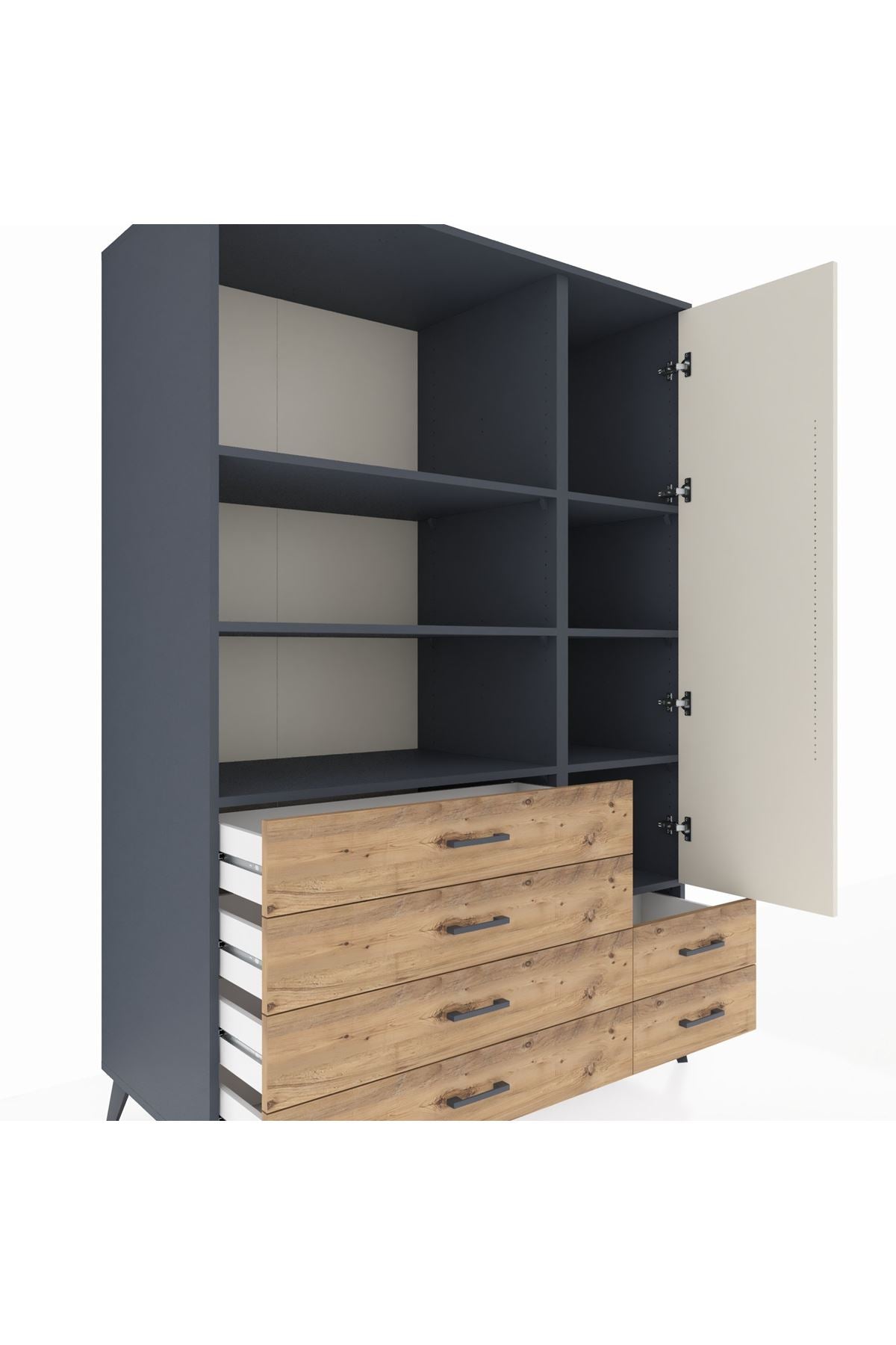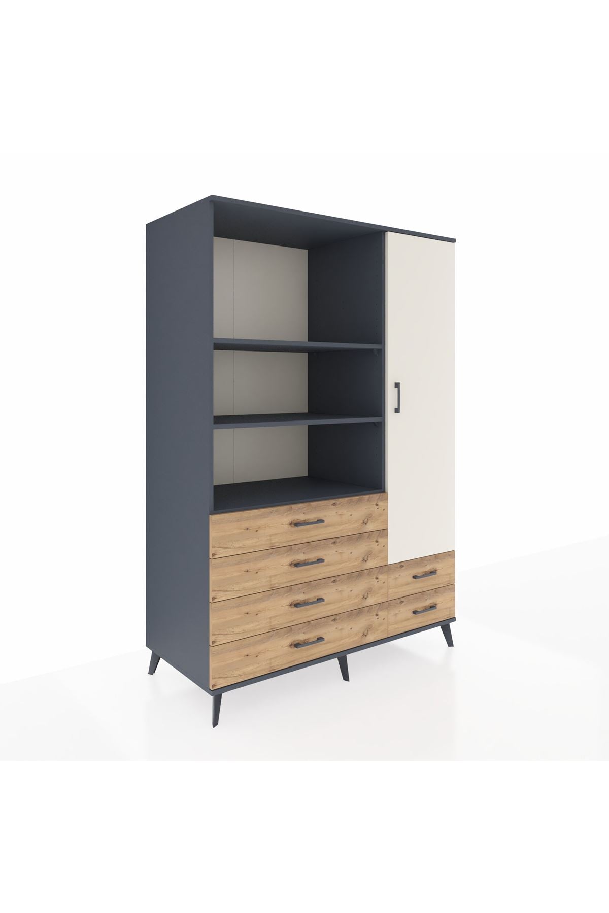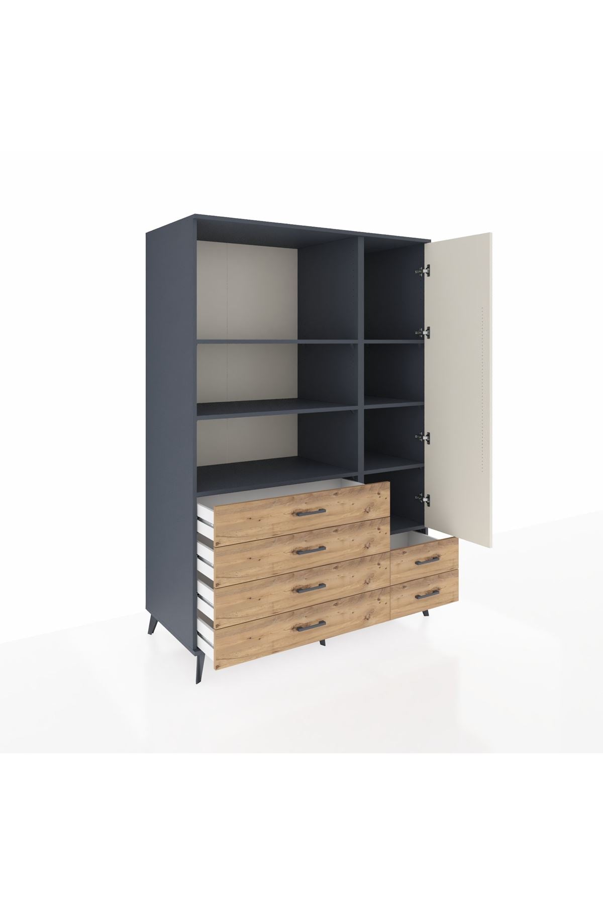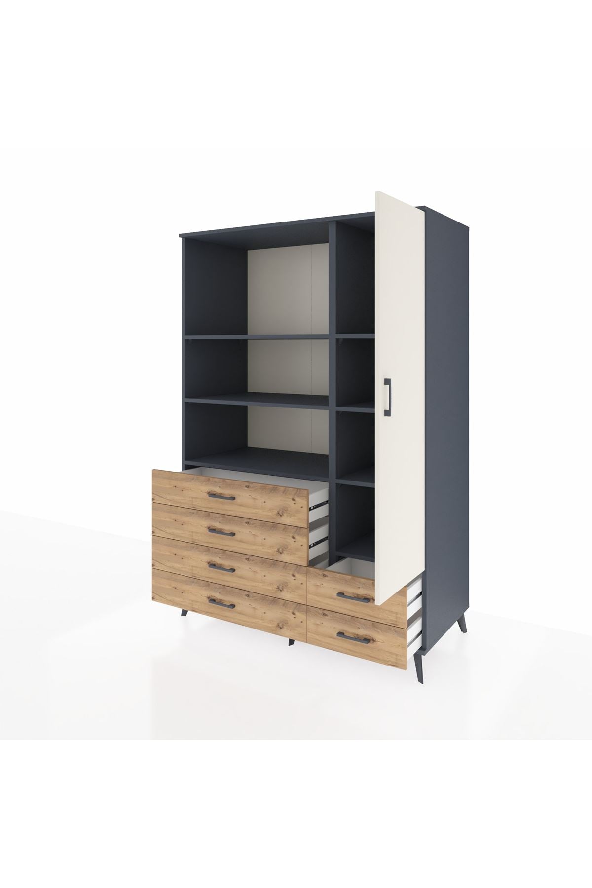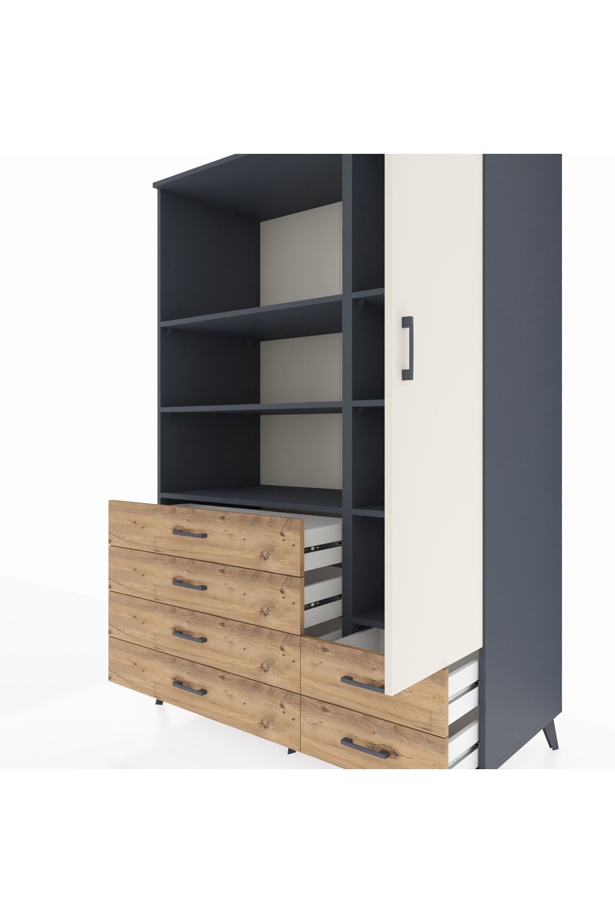 Kronos Dolap 7 Raflı 6 Çekmeceli Tek Kapaklı 132x59x195 Antrasit-Aytaşı/Çam