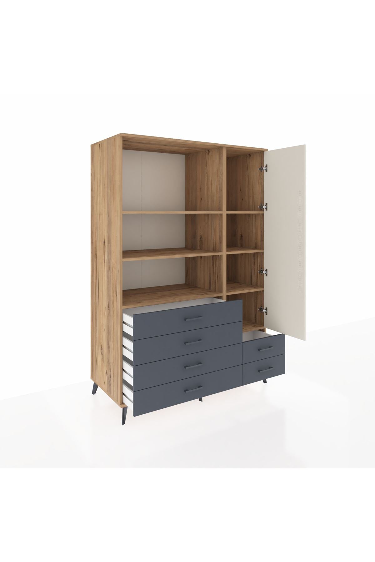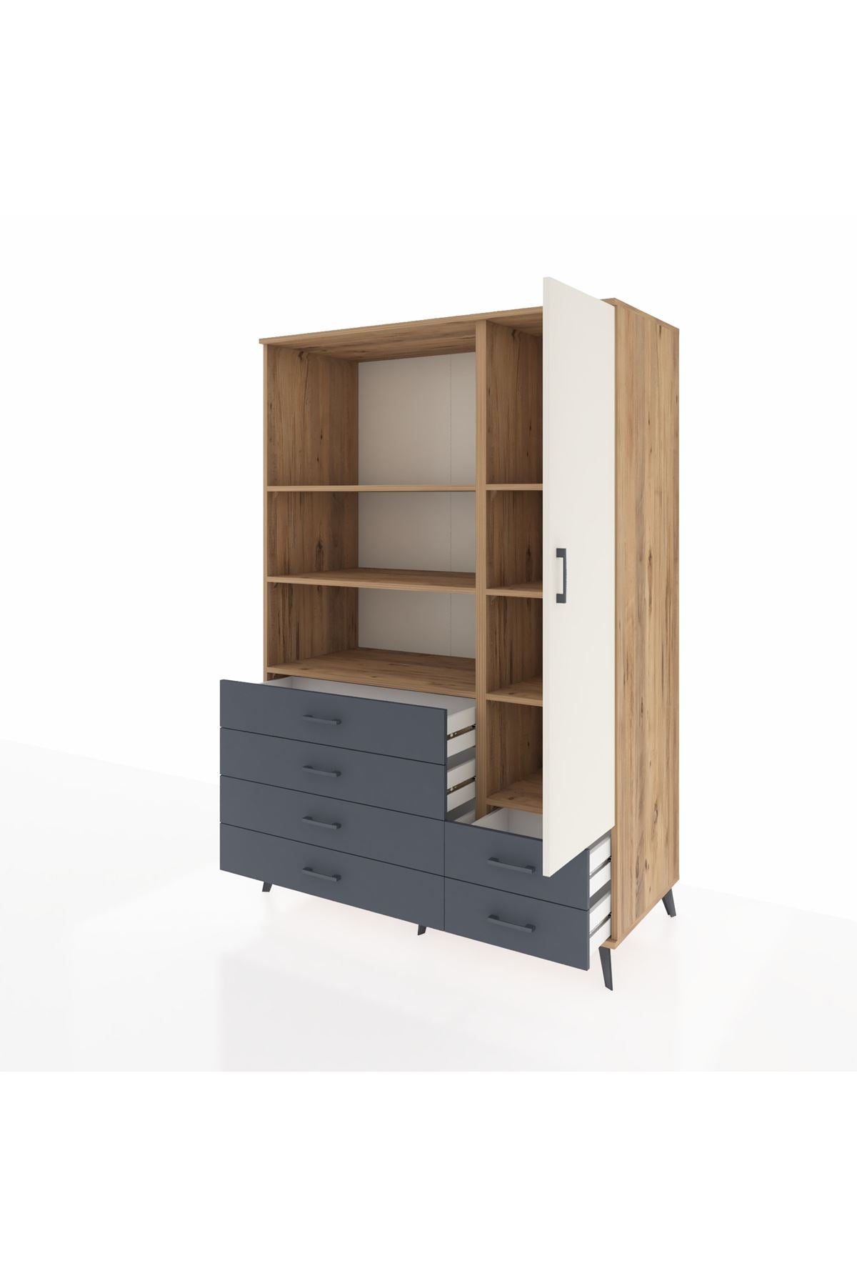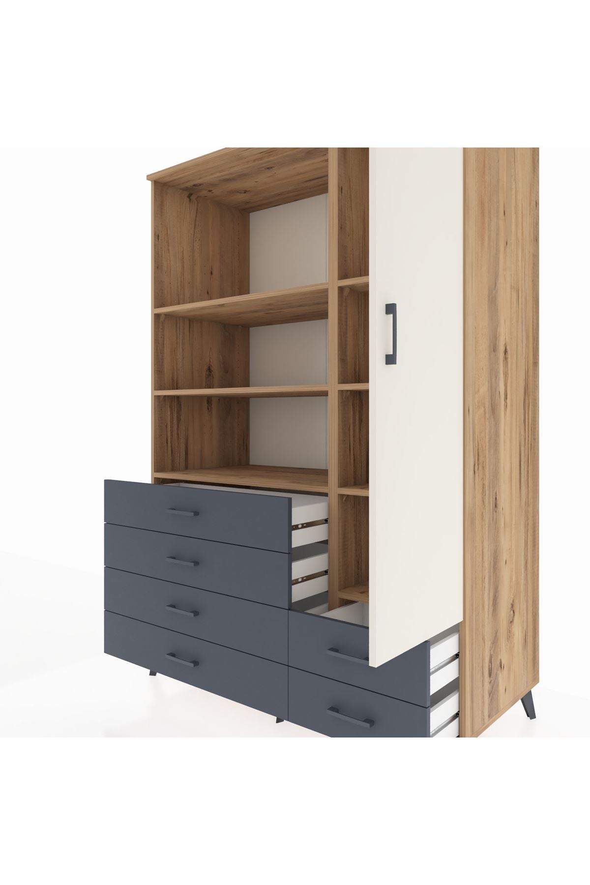 Kronos Dolap 7 Raflı 6 Çekmeceli Tek Kapaklı 132x59x195 Çam-Aytaşı/Antrasit