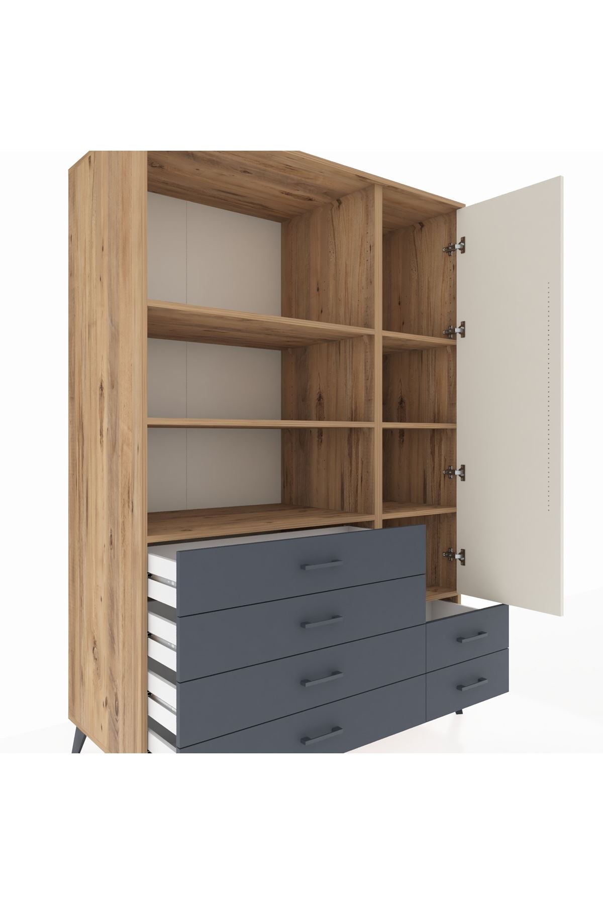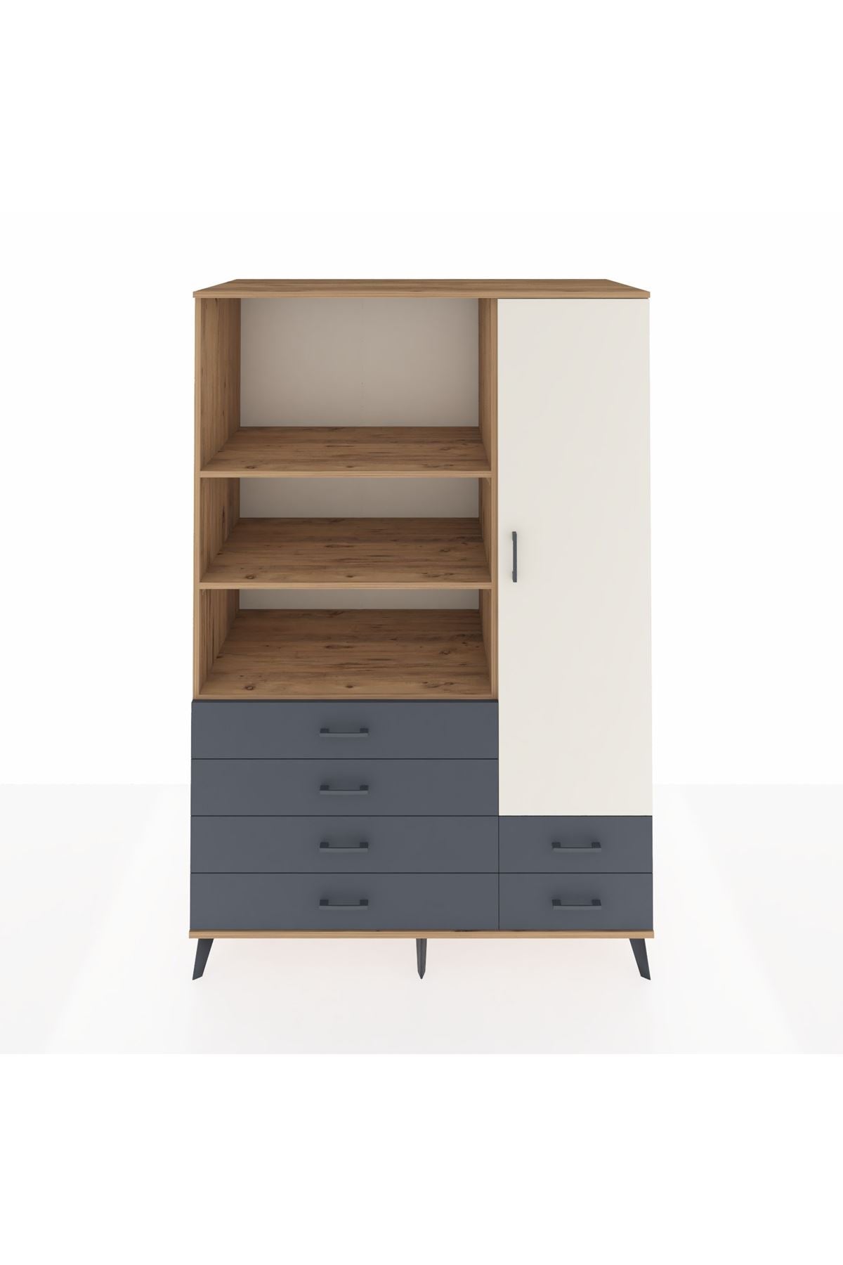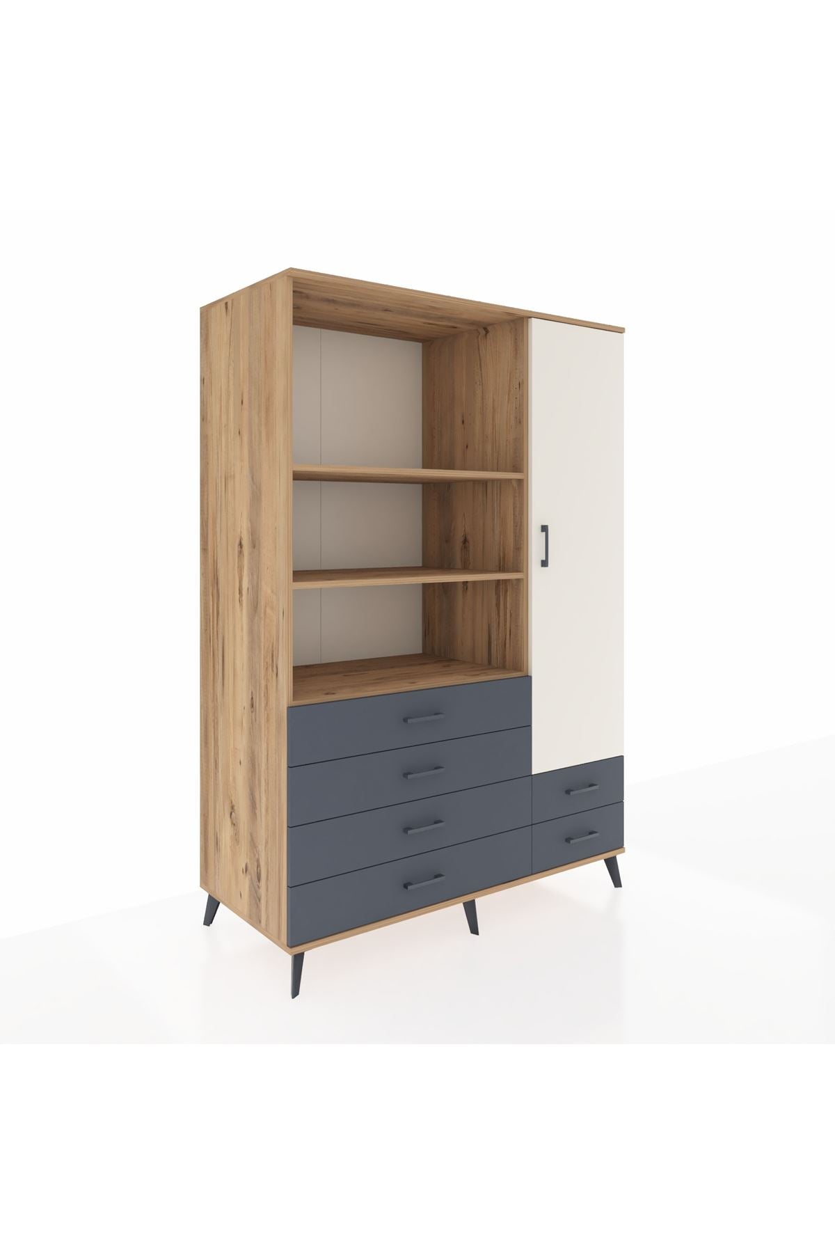 Kronos Dolap 7 Raflı 6 Çekmeceli Tek Kapaklı 132x59x195 Çam-Aytaşı/Antrasit