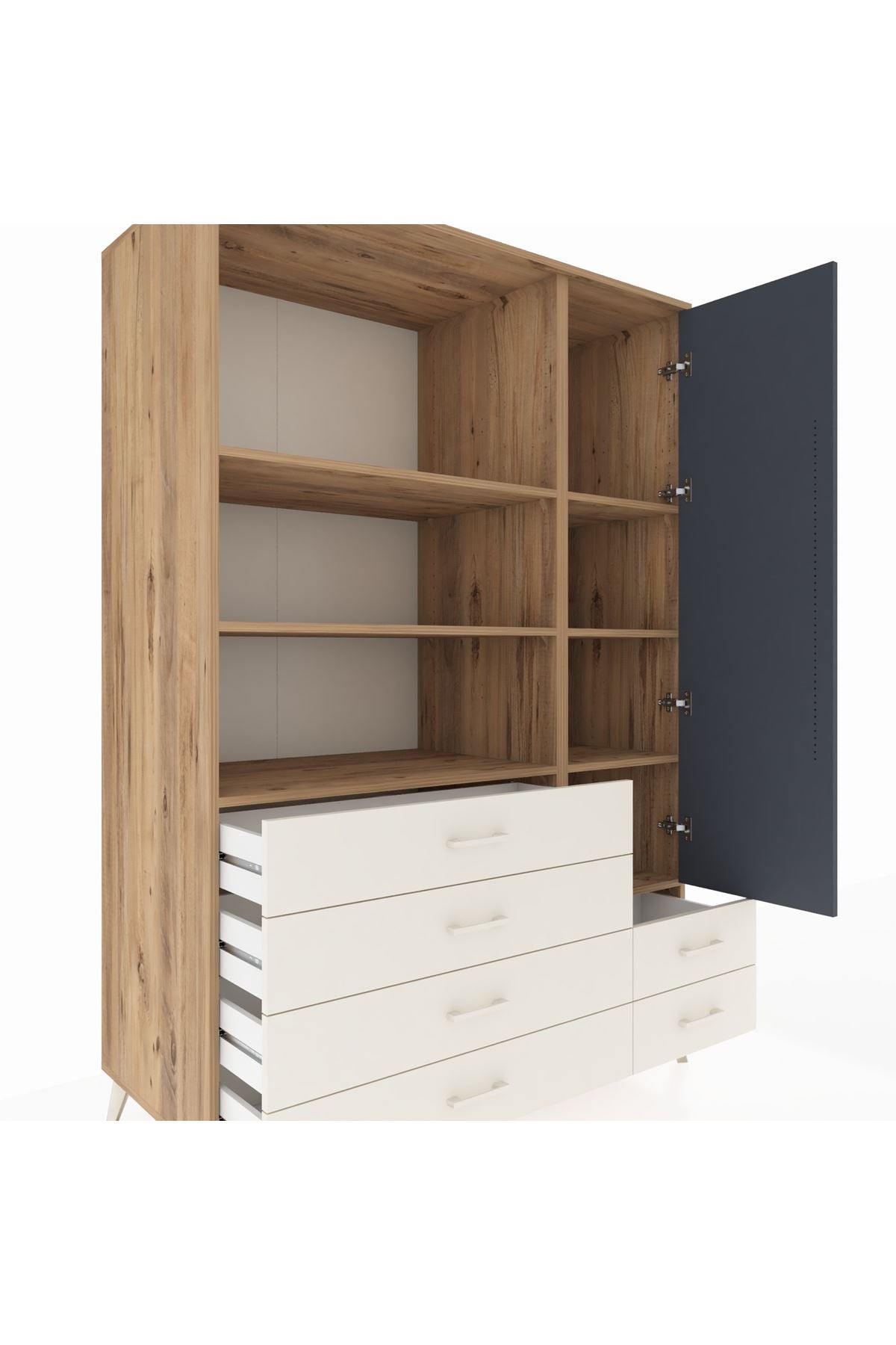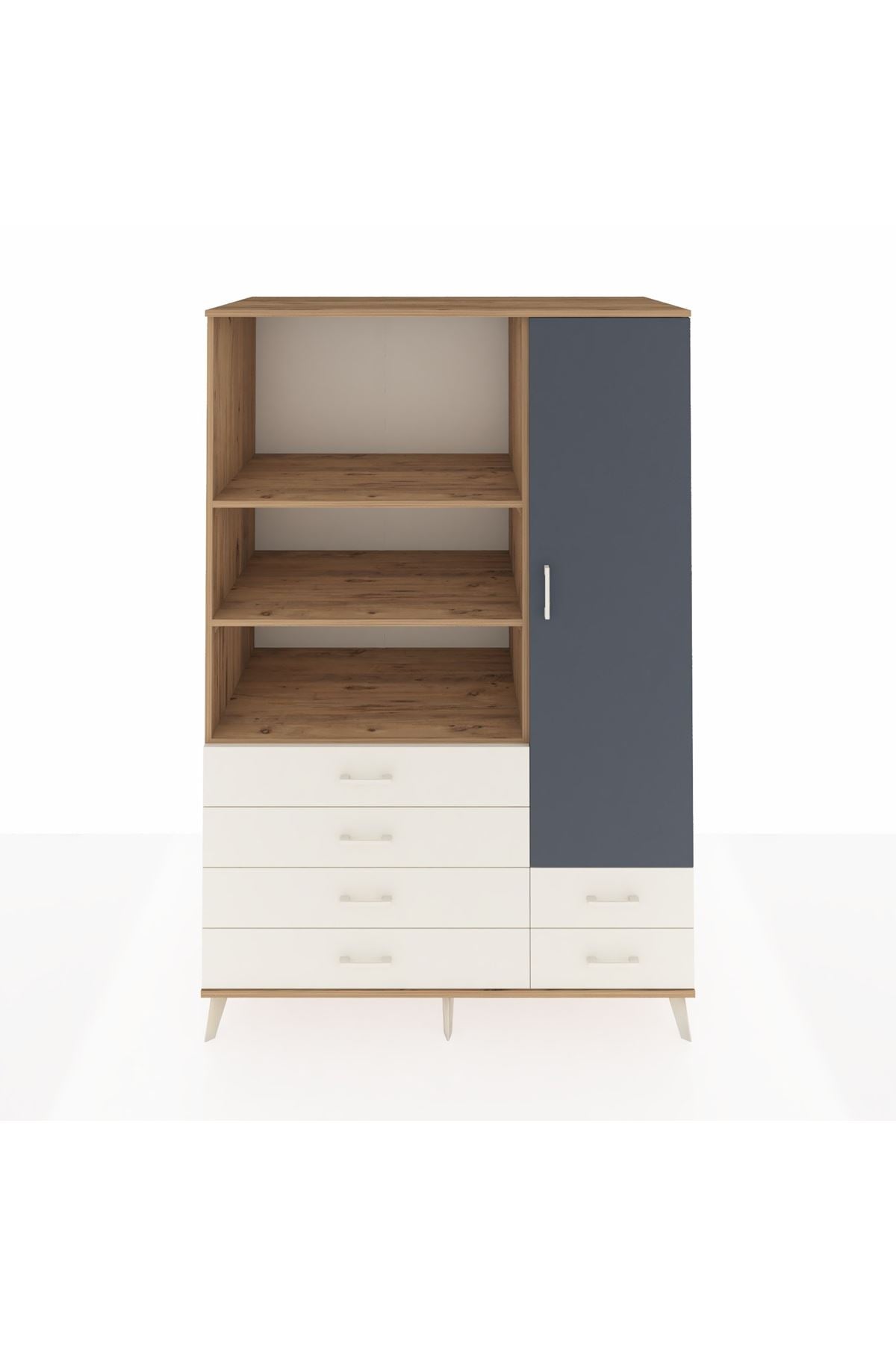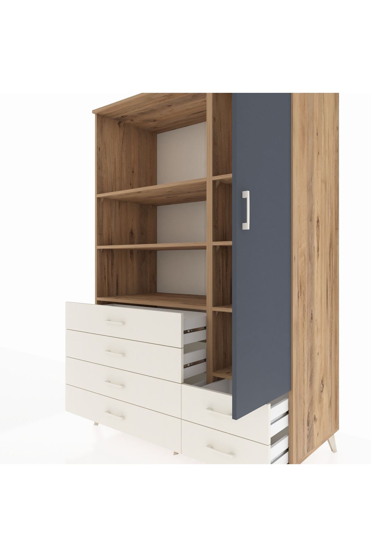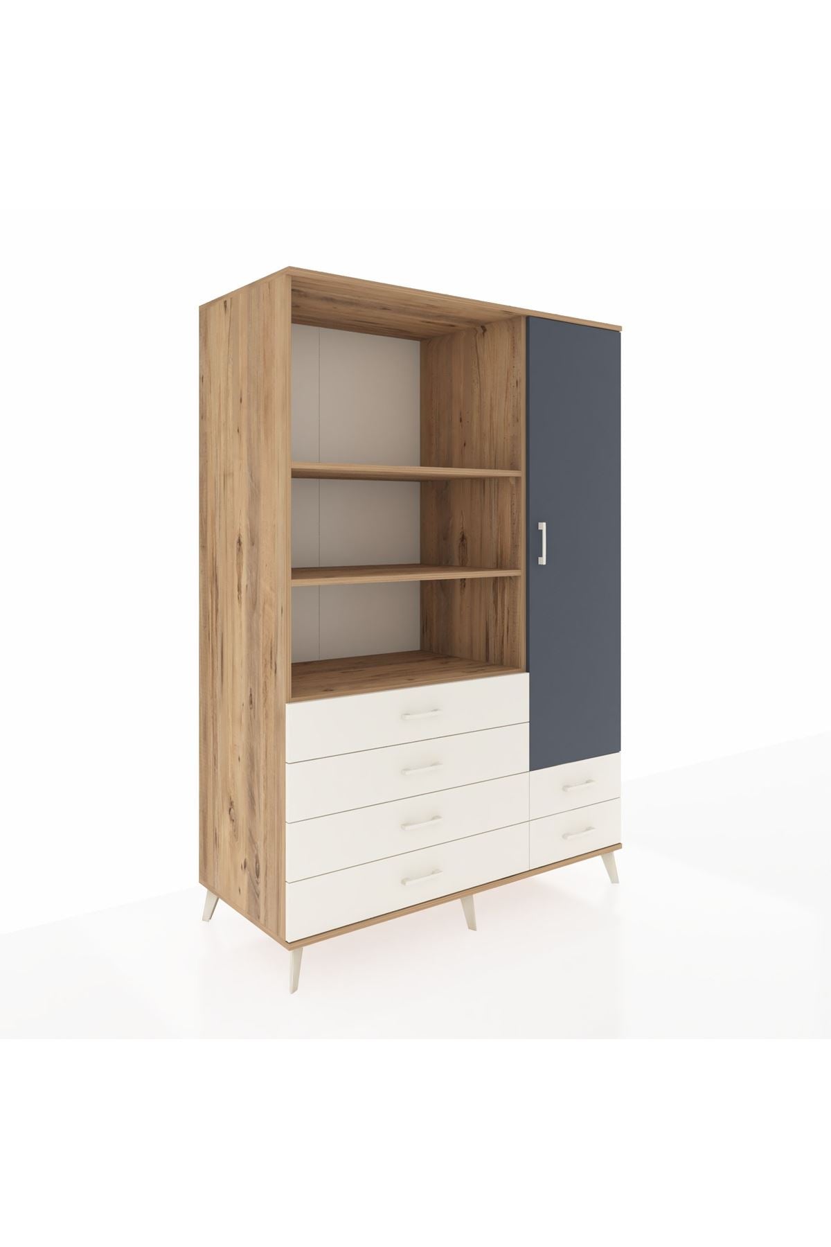 Kronos Dolap 7 Raflı 6 Çekmeceli Tek Kapaklı 132x59x195 Çam-Antrasit/Aytaşı