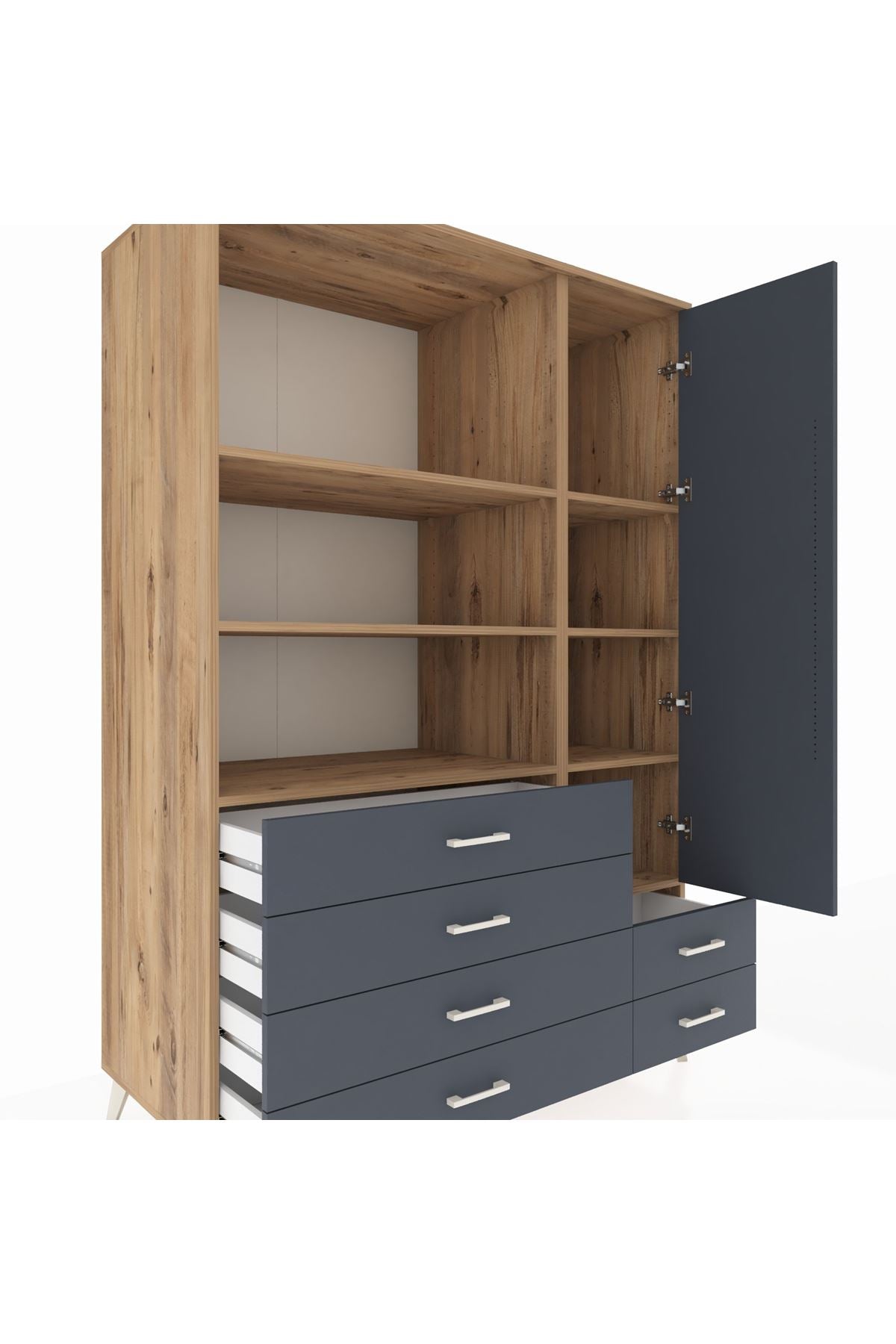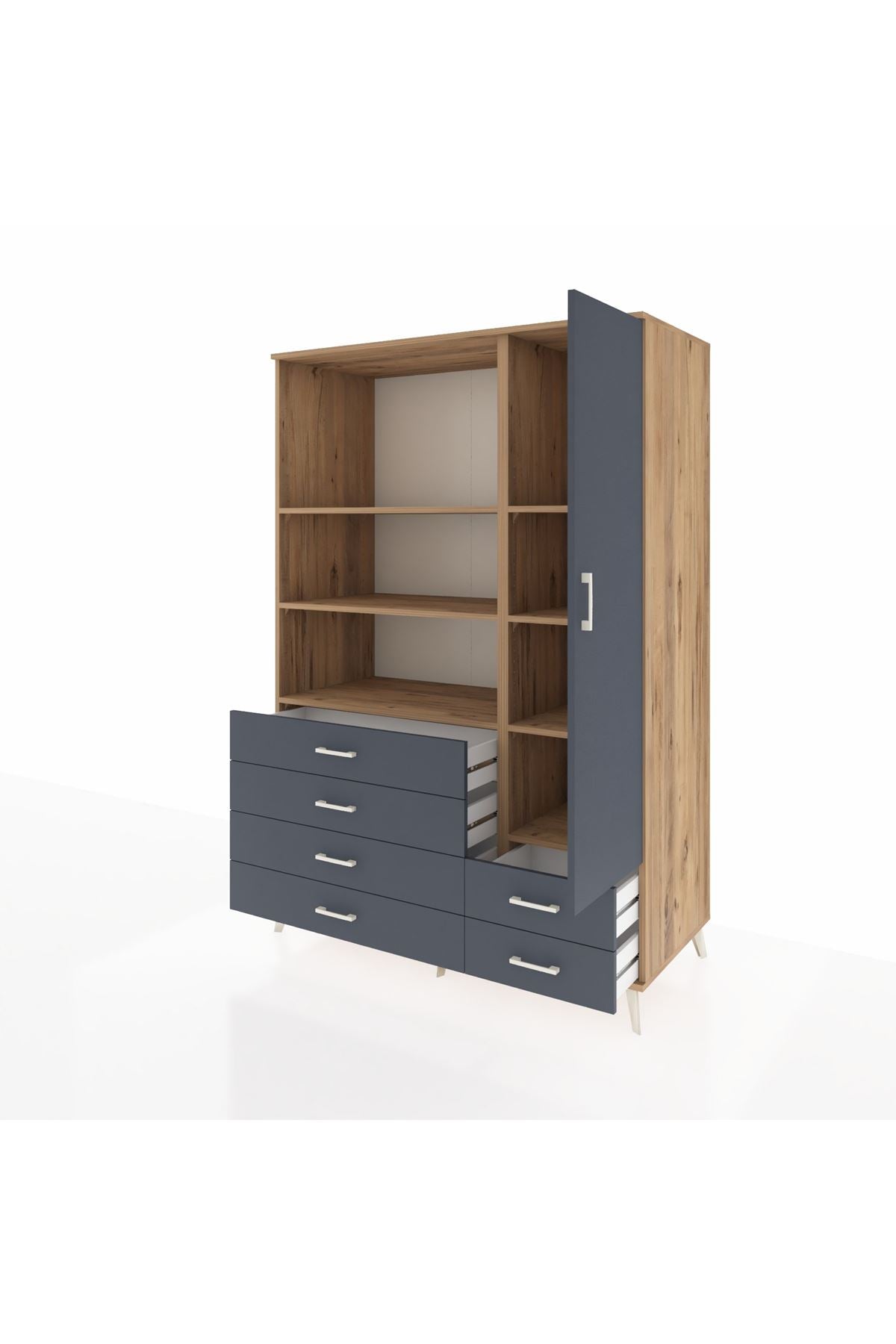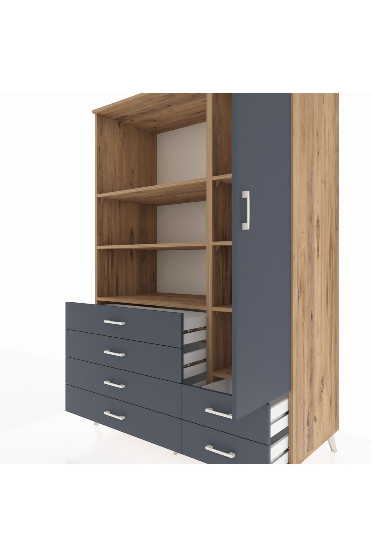Kronos Dolap 7 Raflı 6 Çekmeceli Tek Kapaklı 132x59x195 Çam-Antrasit/Antrasit