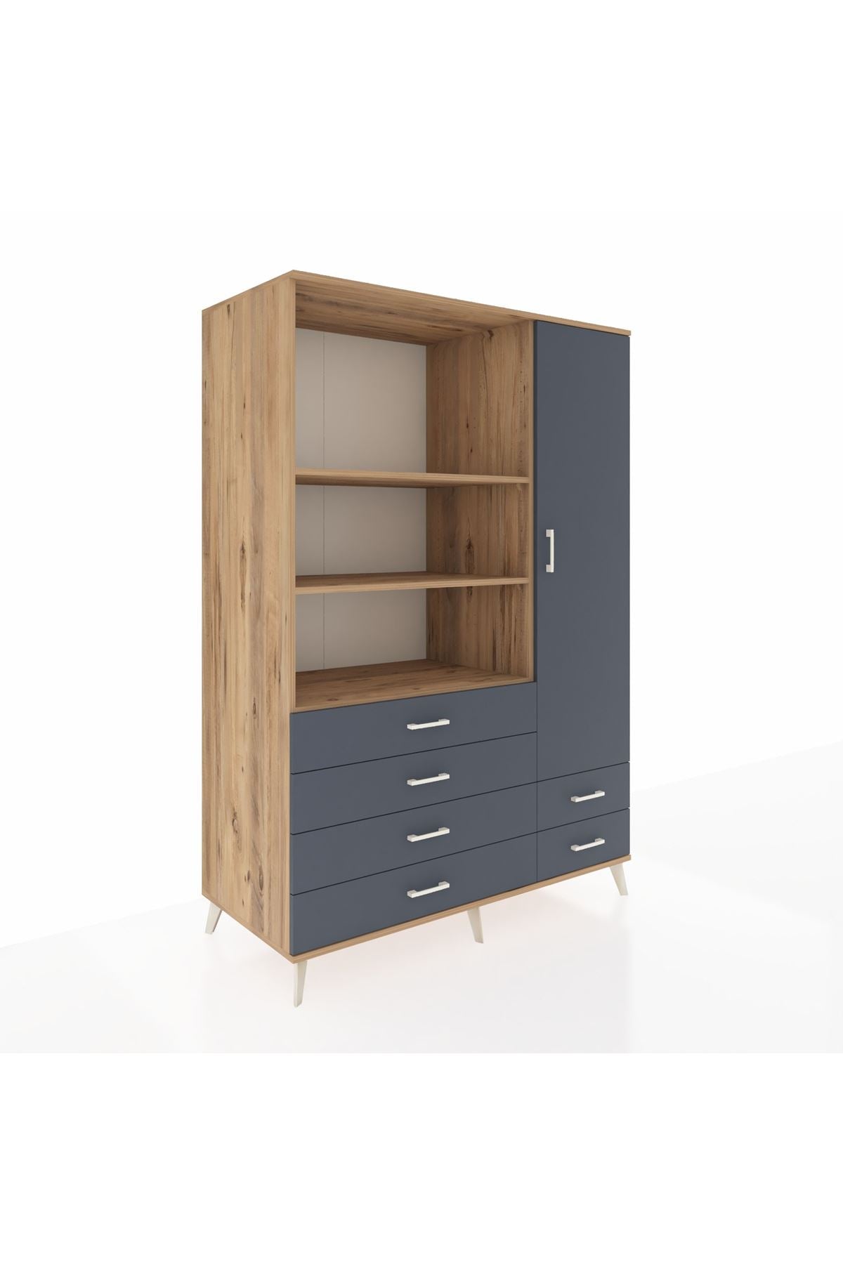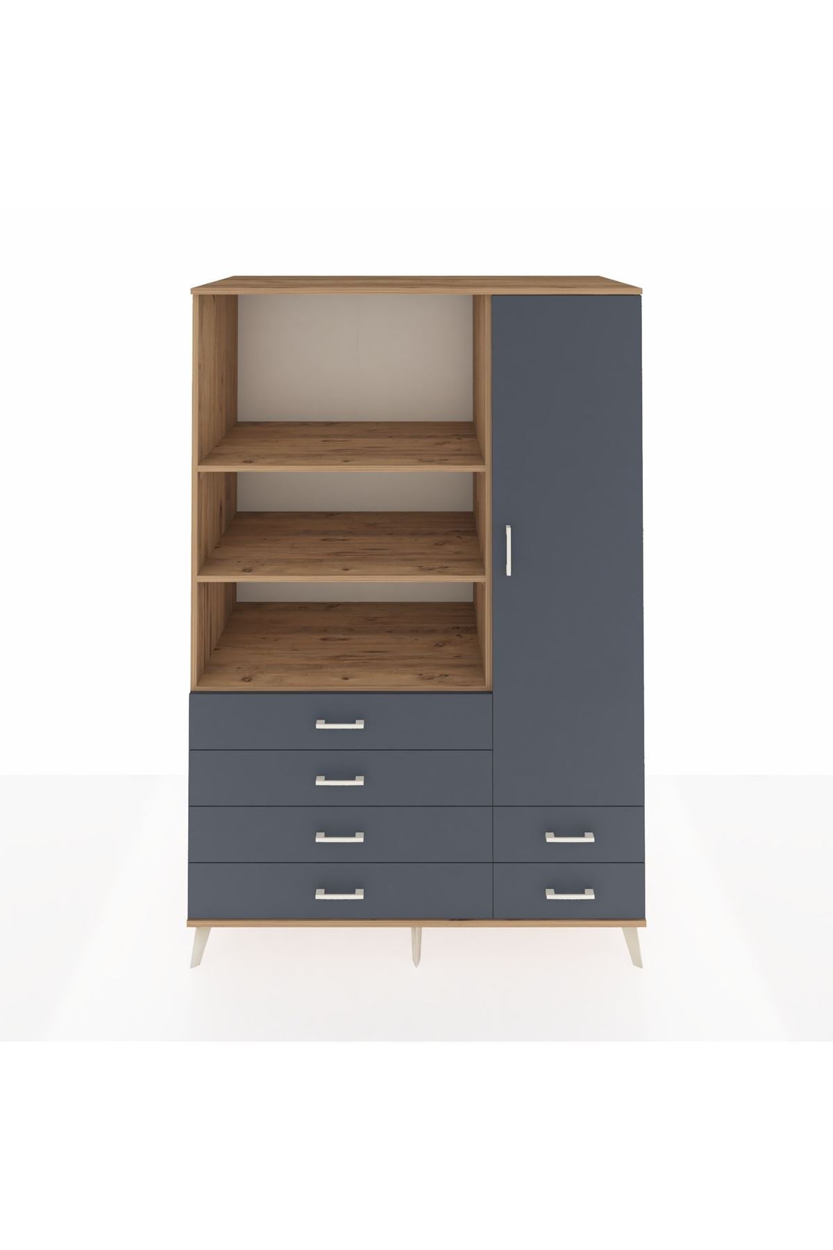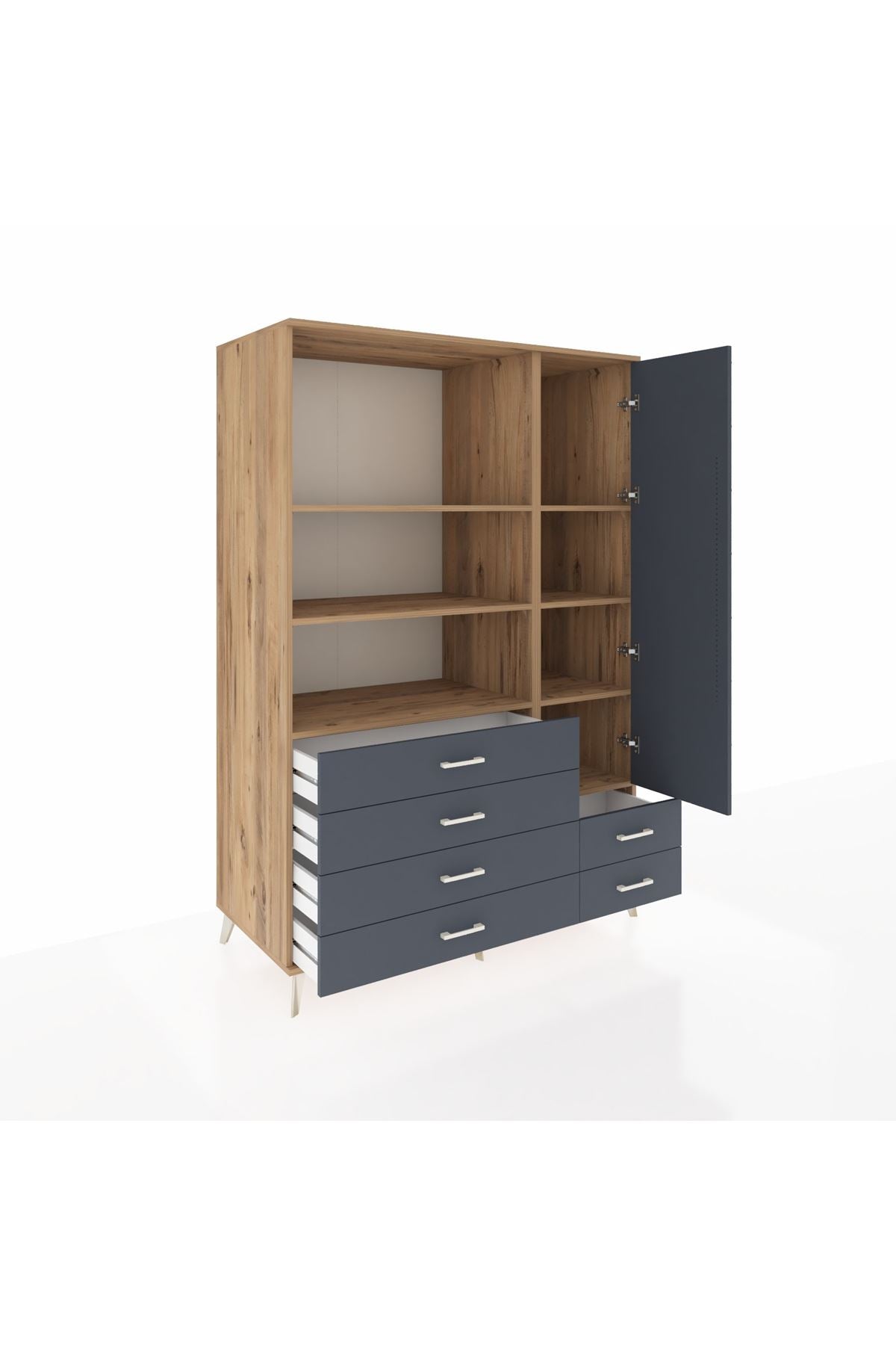 Kronos Dolap 7 Raflı 6 Çekmeceli Tek Kapaklı 132x59x195 Çam-Antrasit/Antrasit