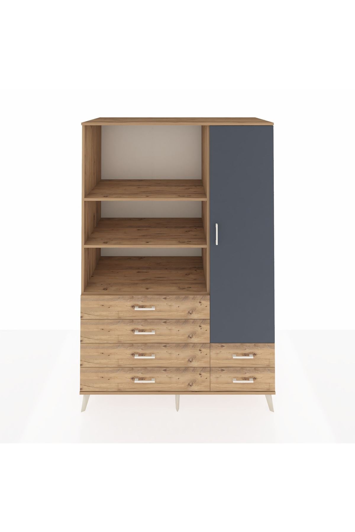 Kronos Dolap 7 Raflı 6 Çekmeceli Tek Kapaklı 132x59x195 Çam-Antrasit/Çam