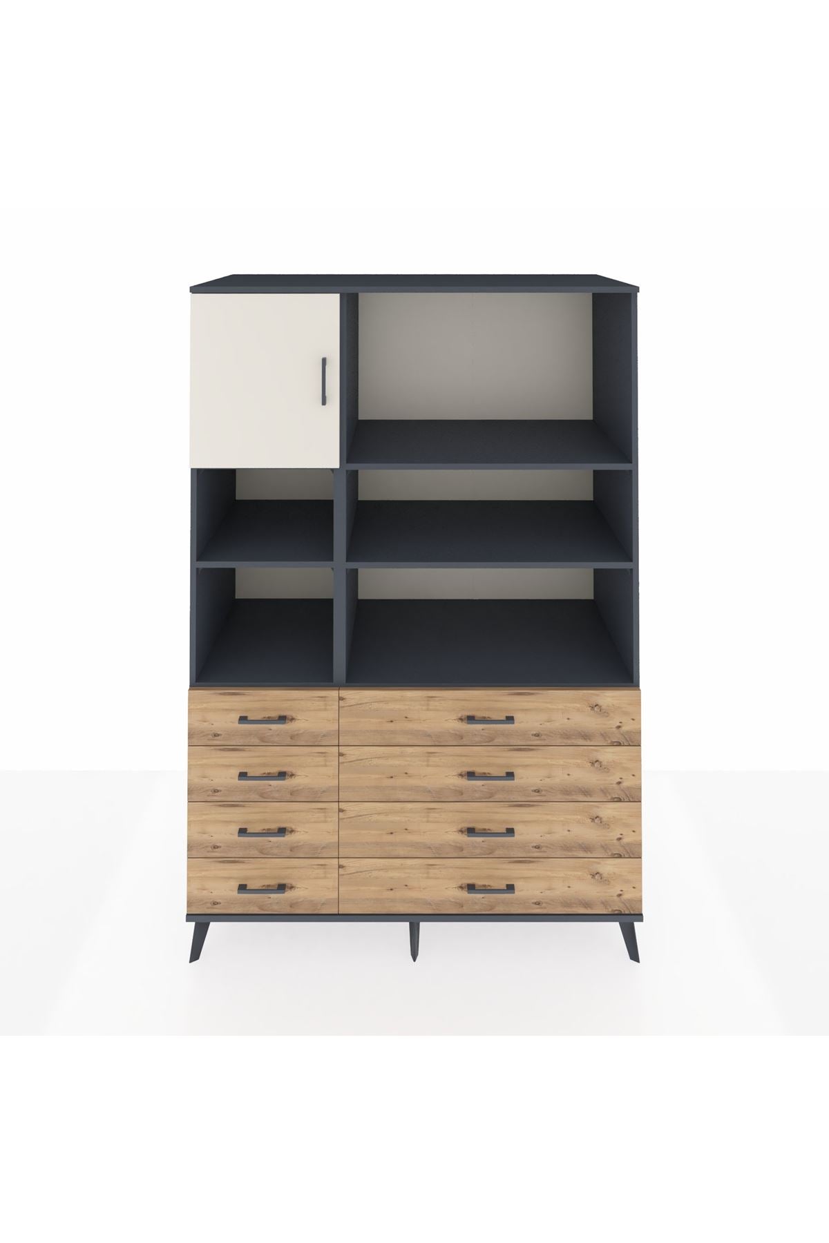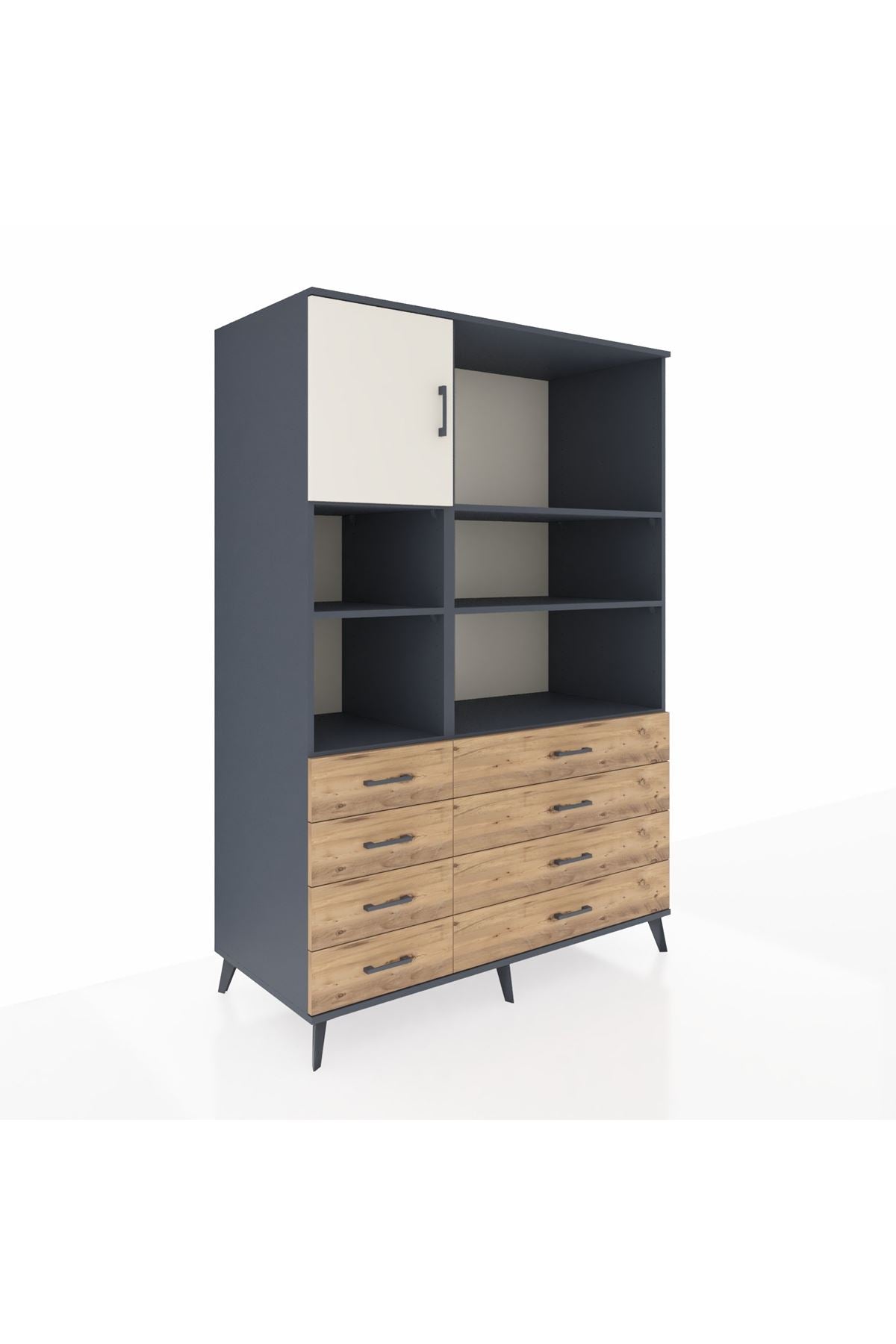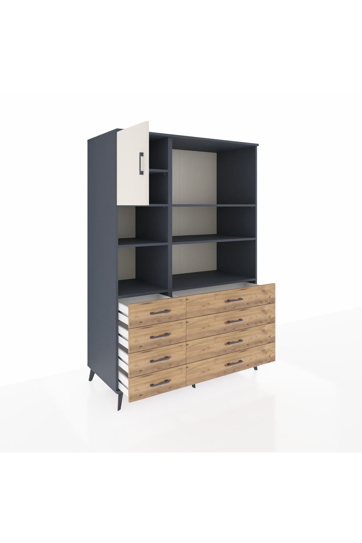 Ürün Adı: Kronos Dolap 7 Raflı 8 Çekmeceli Tek Kapaklı 132x59x195 Antrasit-Aytaşı/Çam