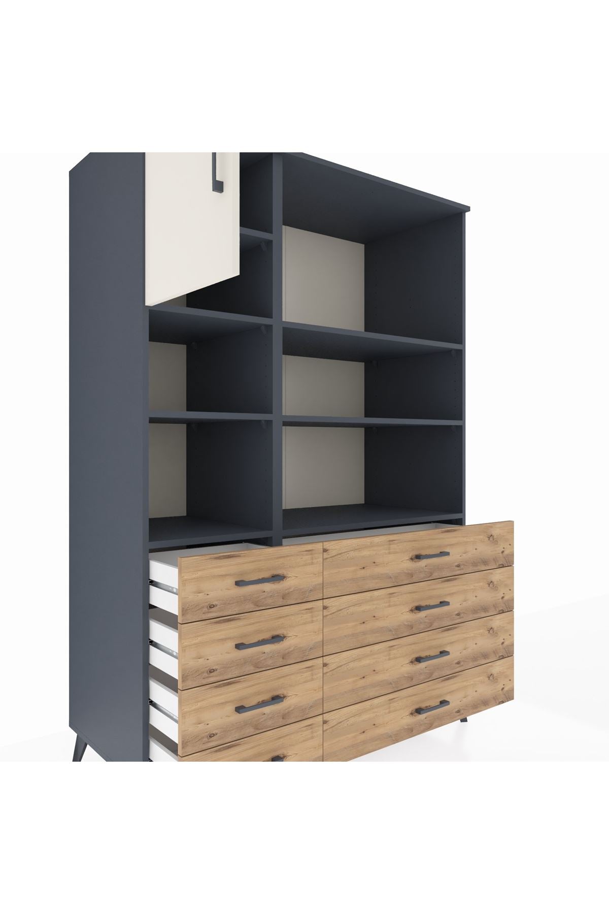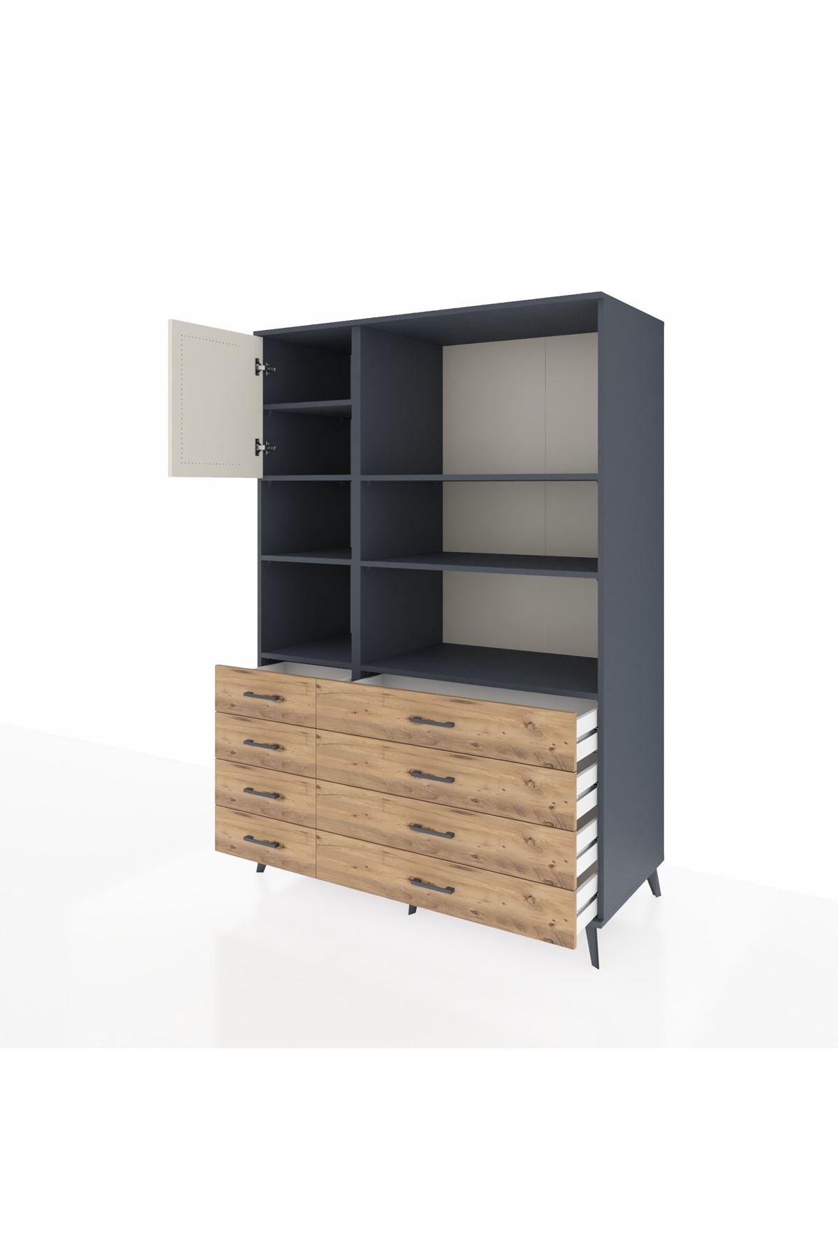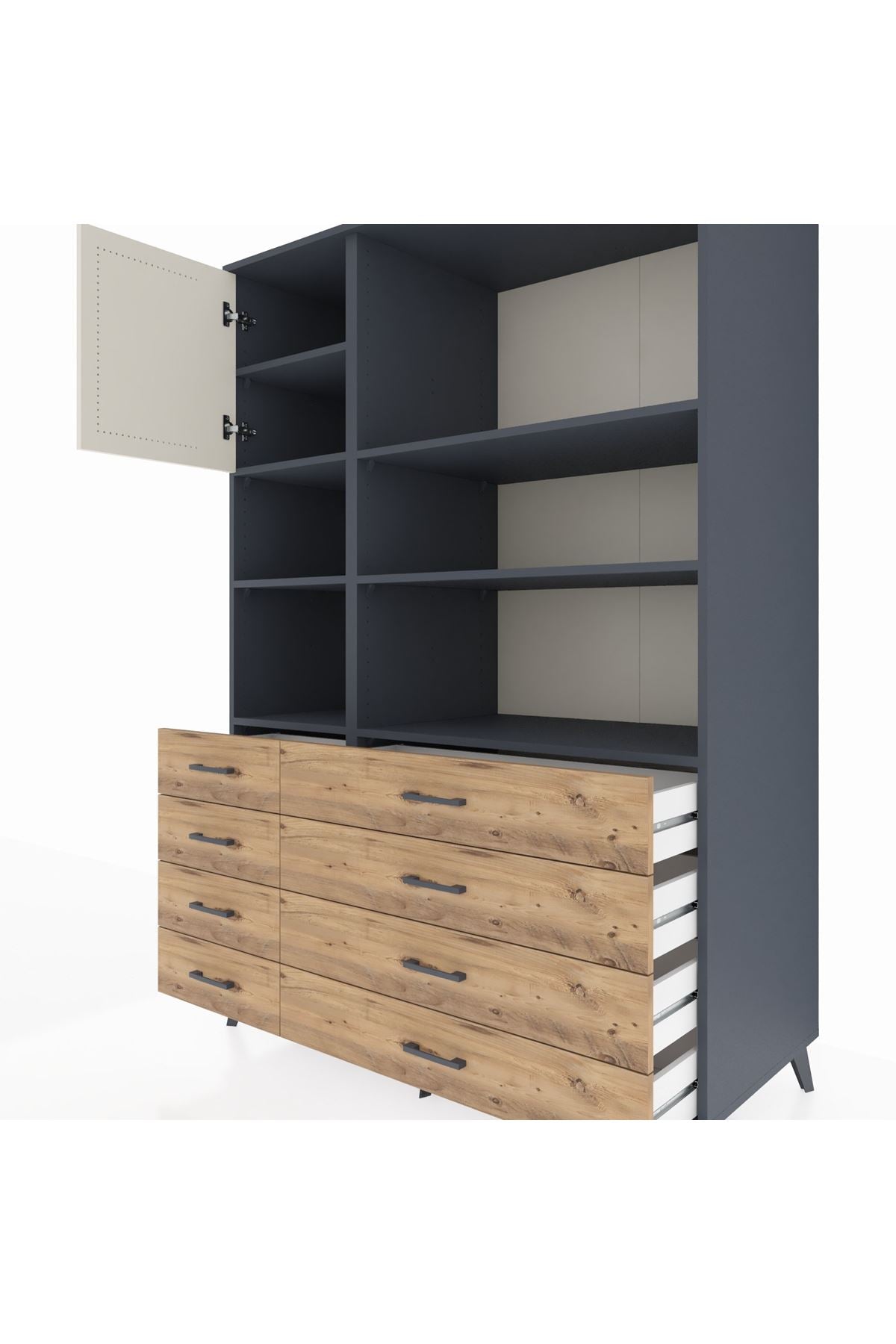 Kronos Dolap 7 Raflı 8 Çekmeceli Tek Kapaklı 132x59x195 Antrasit-Aytaşı/Çam