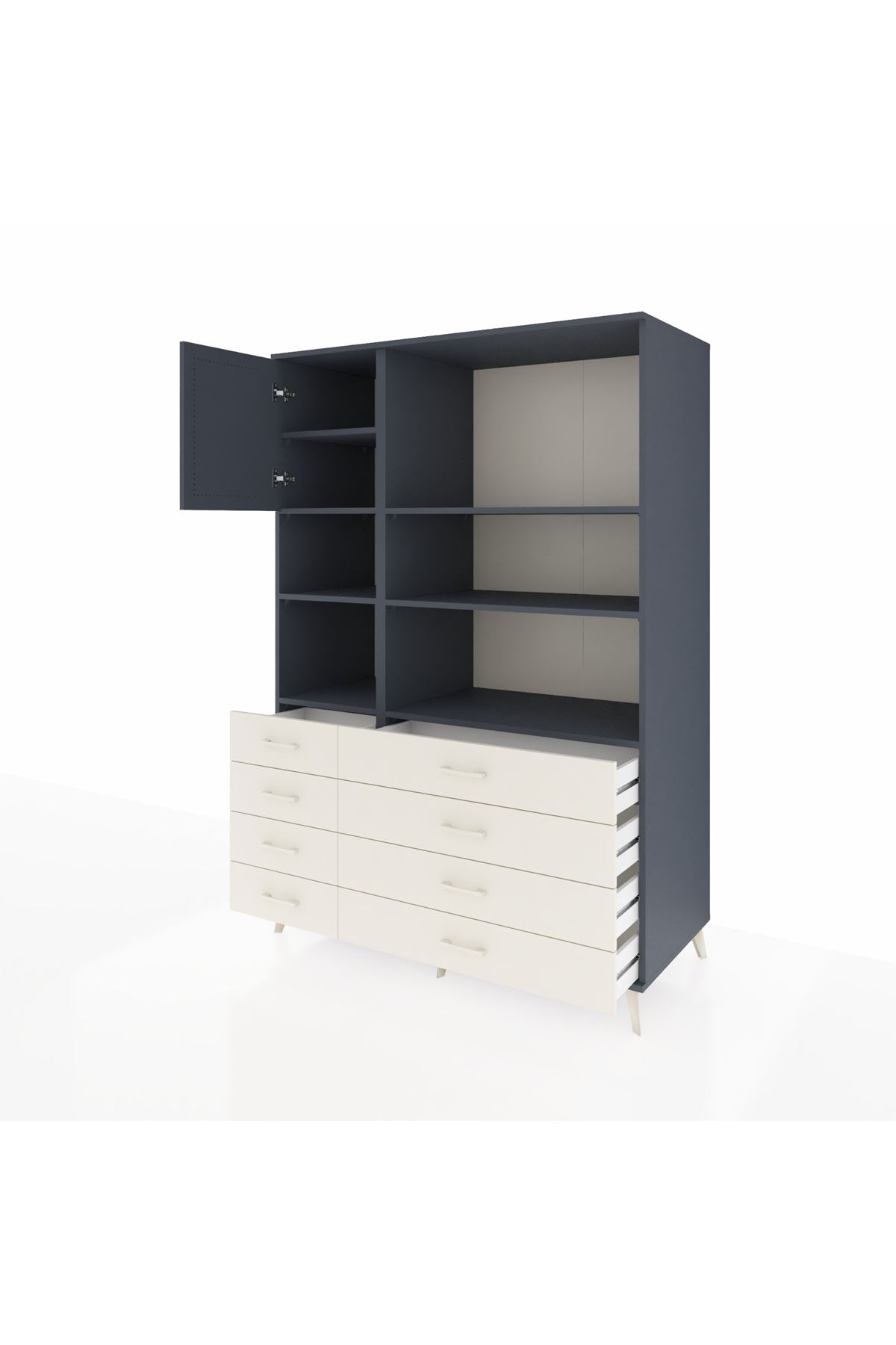 Kronos Dolap 7 Raflı 8 Çekmeceli Tek Kapaklı 132x59x195 Antrasit-Antrasit/Aytaşı