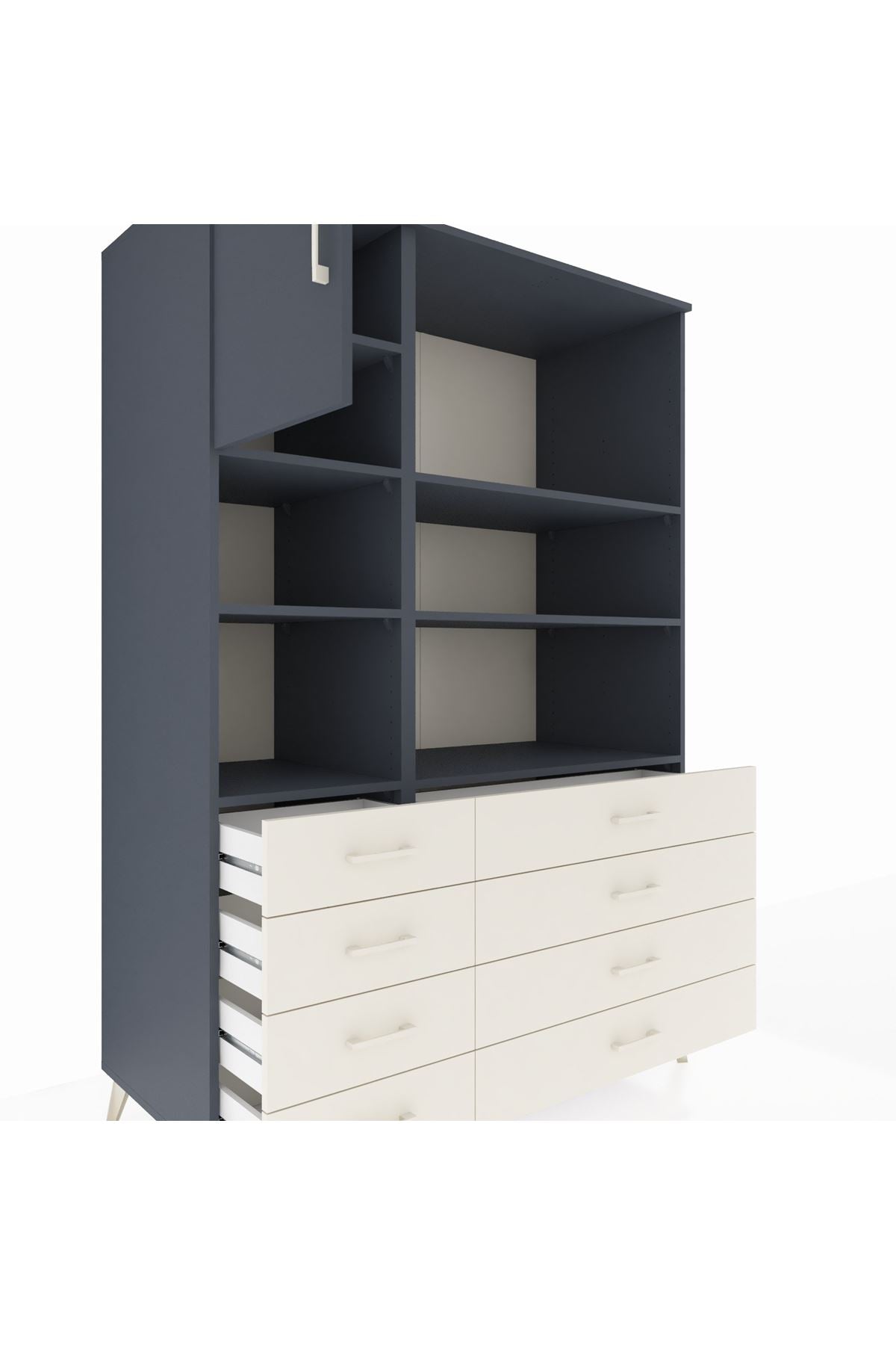 - İki kapılı dolap: 195 cm yüksekliği ve 132 cm genişliğiyle yatak odası için ideal depolama.