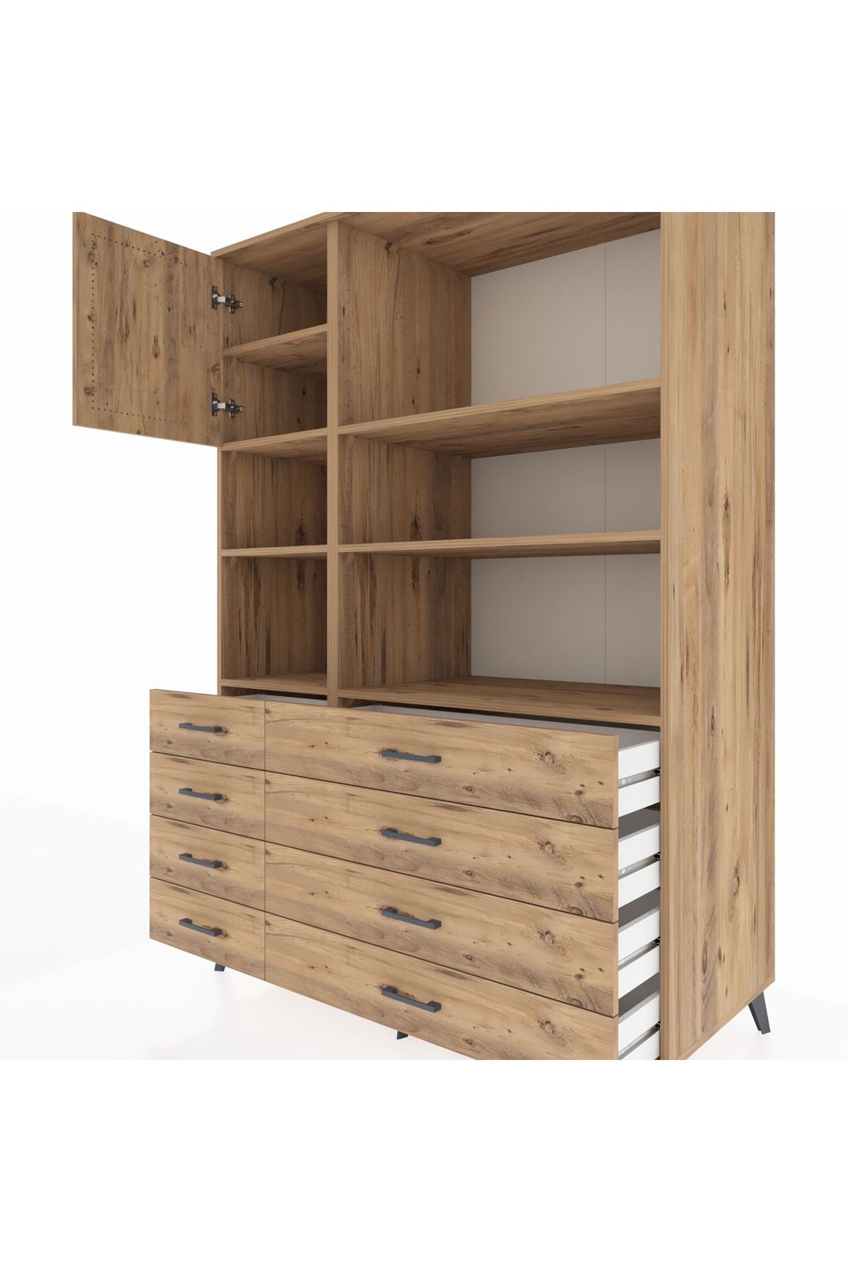 Kronos Dolap 7 Raflı 8 Çekmeceli Tek Kapaklı 132x59x195 Çam-Çam/Çam
