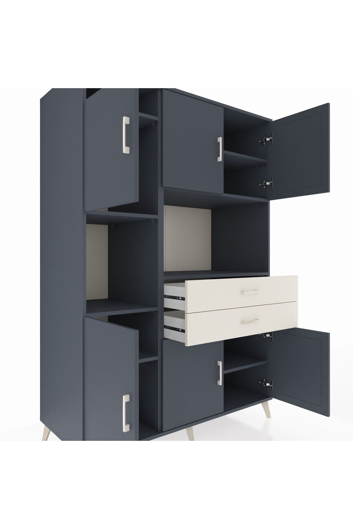 Geniş iç hacmi sayesinde 8 adet rafı ile tüm eşyalarınızı düzenli bir şekilde yerleştirebilir, 2 çekmecesiyle küçük aksesuarlarınızı rahatça saklayabilirsiniz 🎯