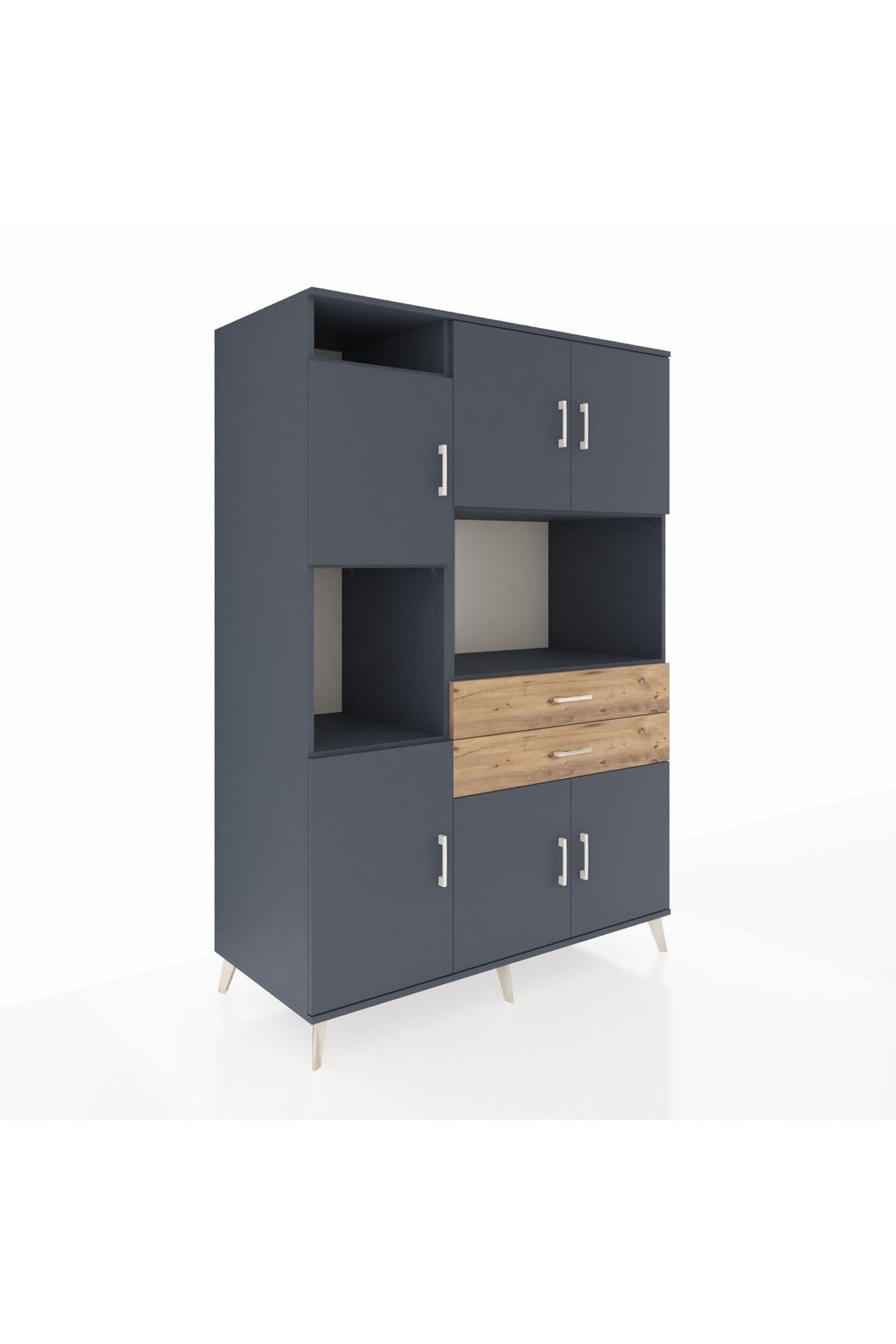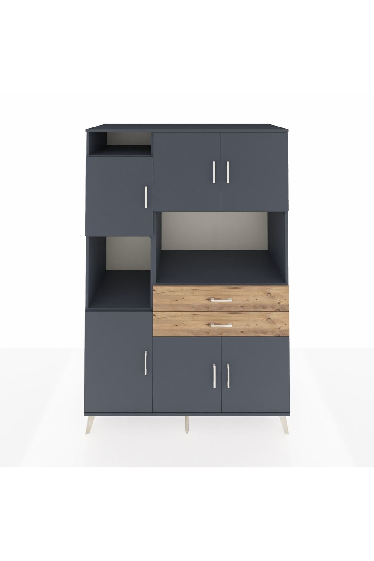 Kronos Dolap 8 Raflı 2 Çekmeceli 6 Kapaklı 132x59x195 Antrasit-Antrasit/Çam