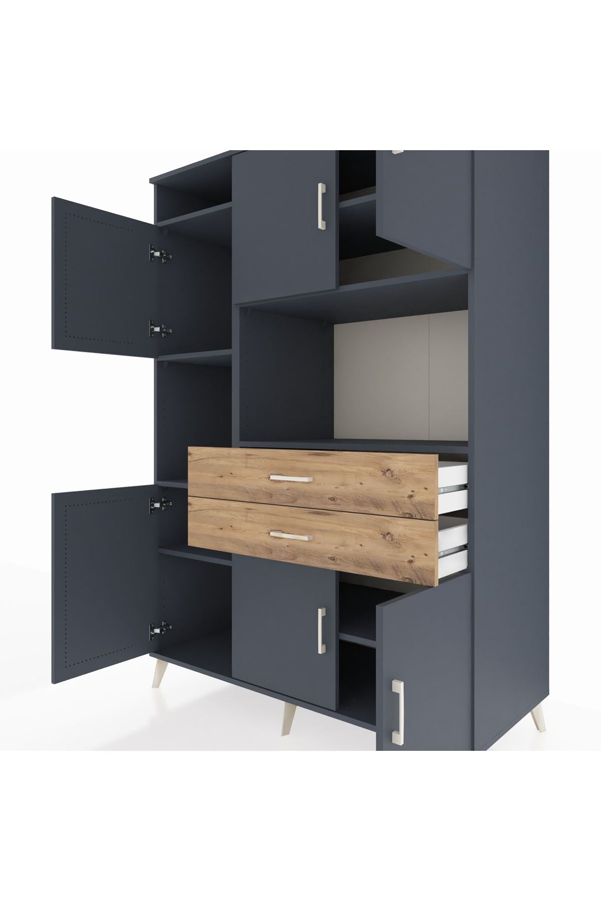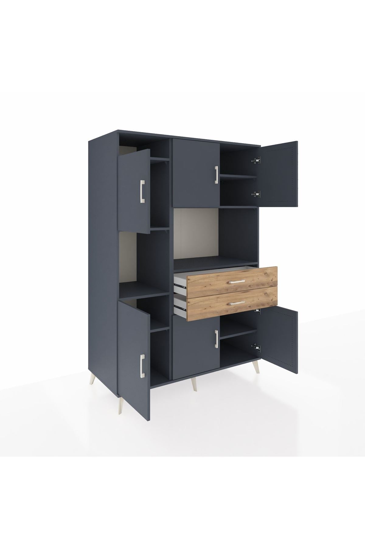 • Ofis dolabı: Evrak ve dosya düzeni için geniş raf ve çekmece kombinasyonu sunar.