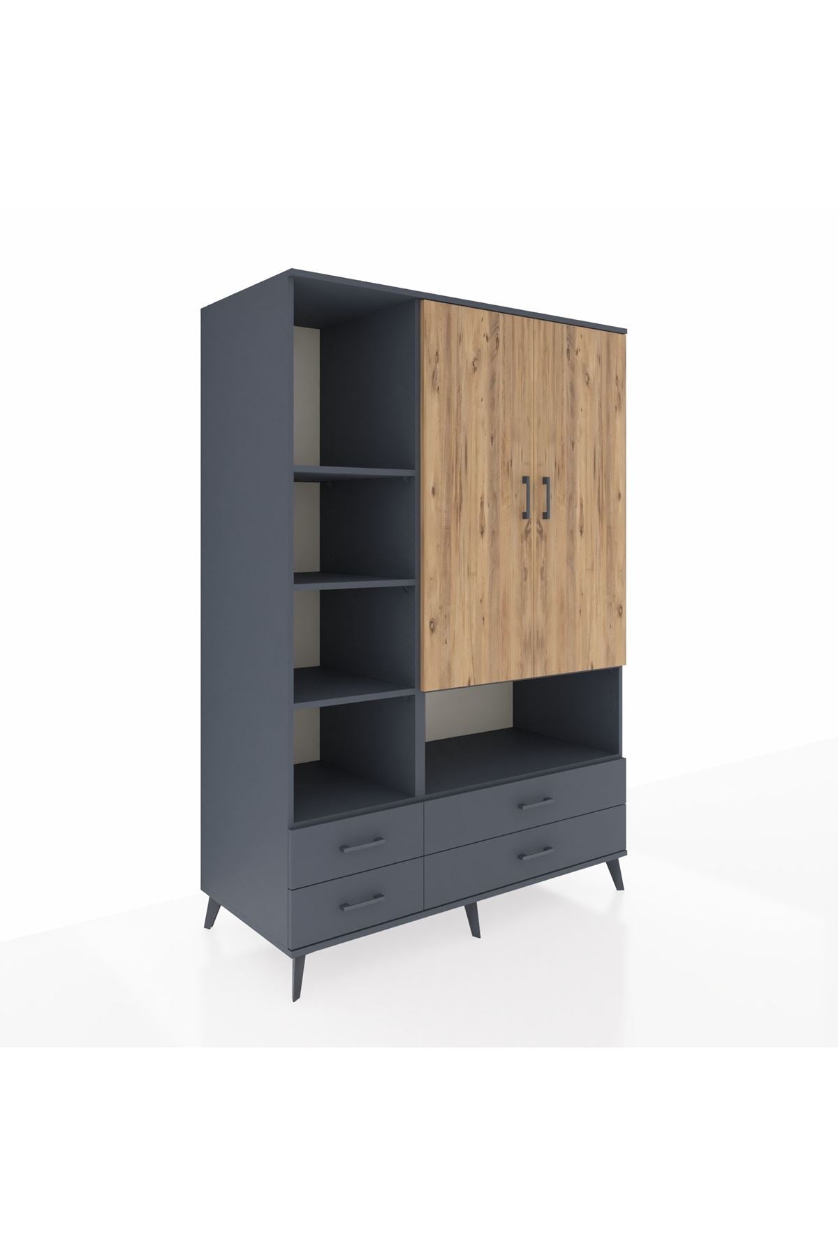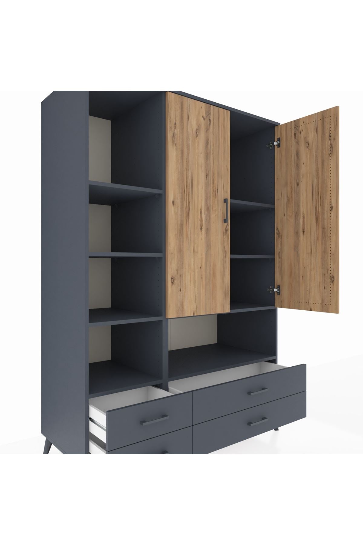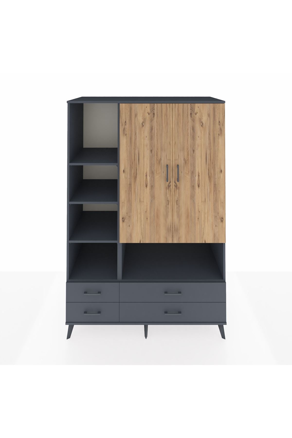Kronos Dolap 8 Raflı 4 Çekmeceli 2 Kapaklı 132x59x195 Antrasit-Çam/Antrasit