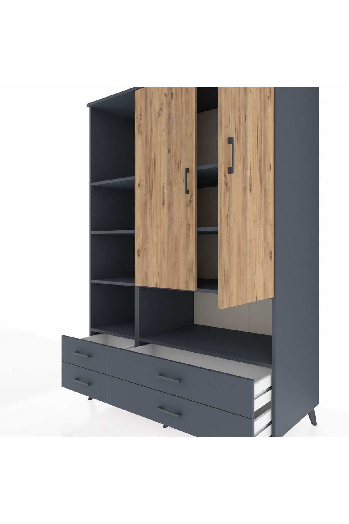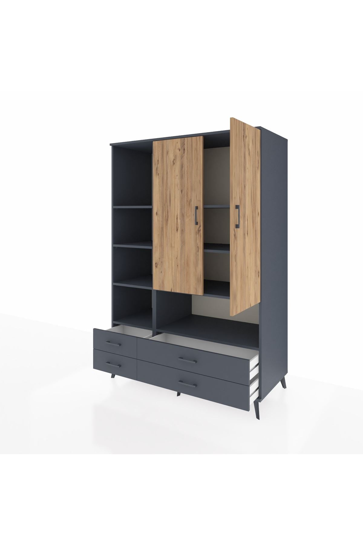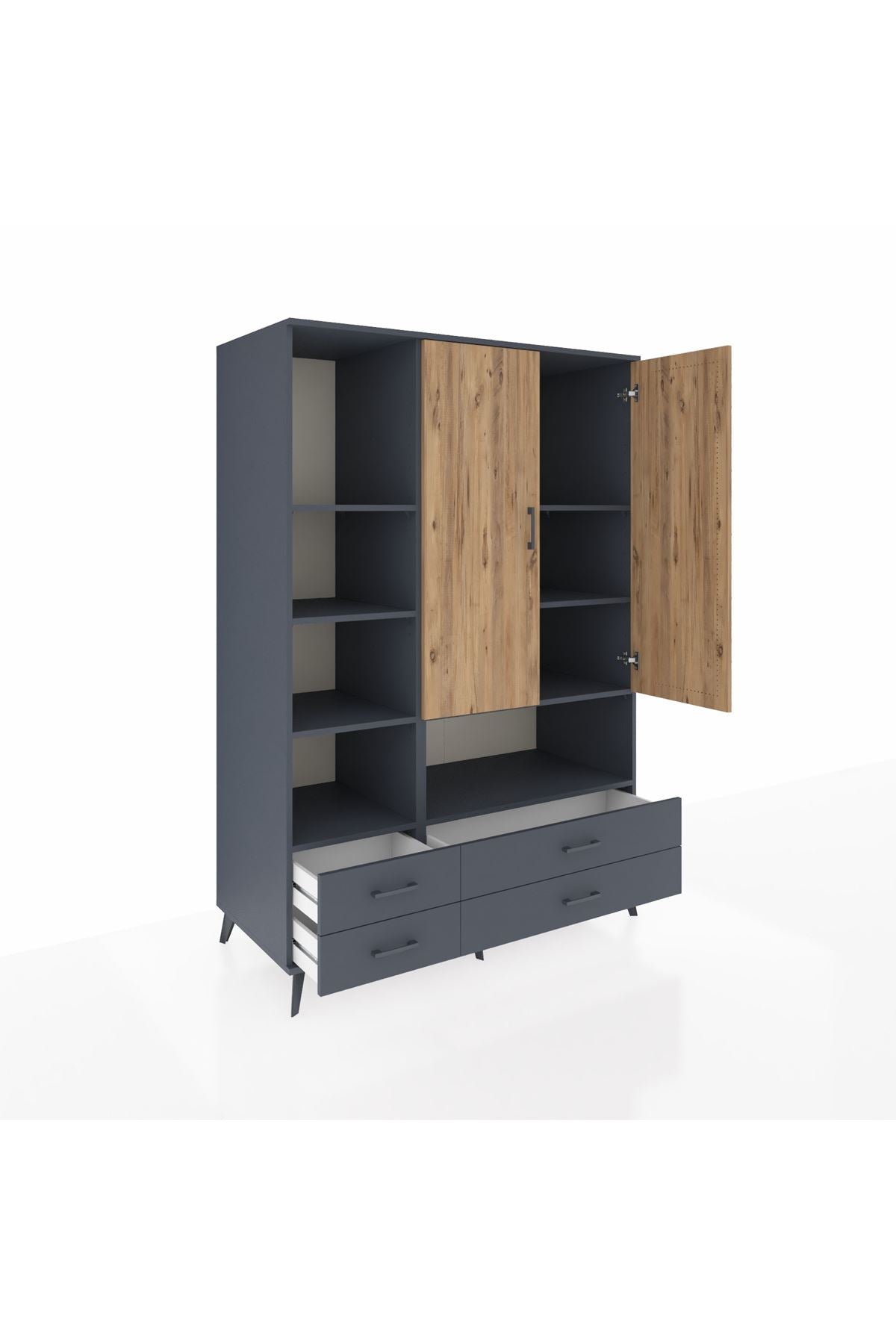 Kronos Dolap 8 Raflı 4 Çekmeceli 2 Kapaklı 132x59x195 Antrasit-Çam/Antrasit