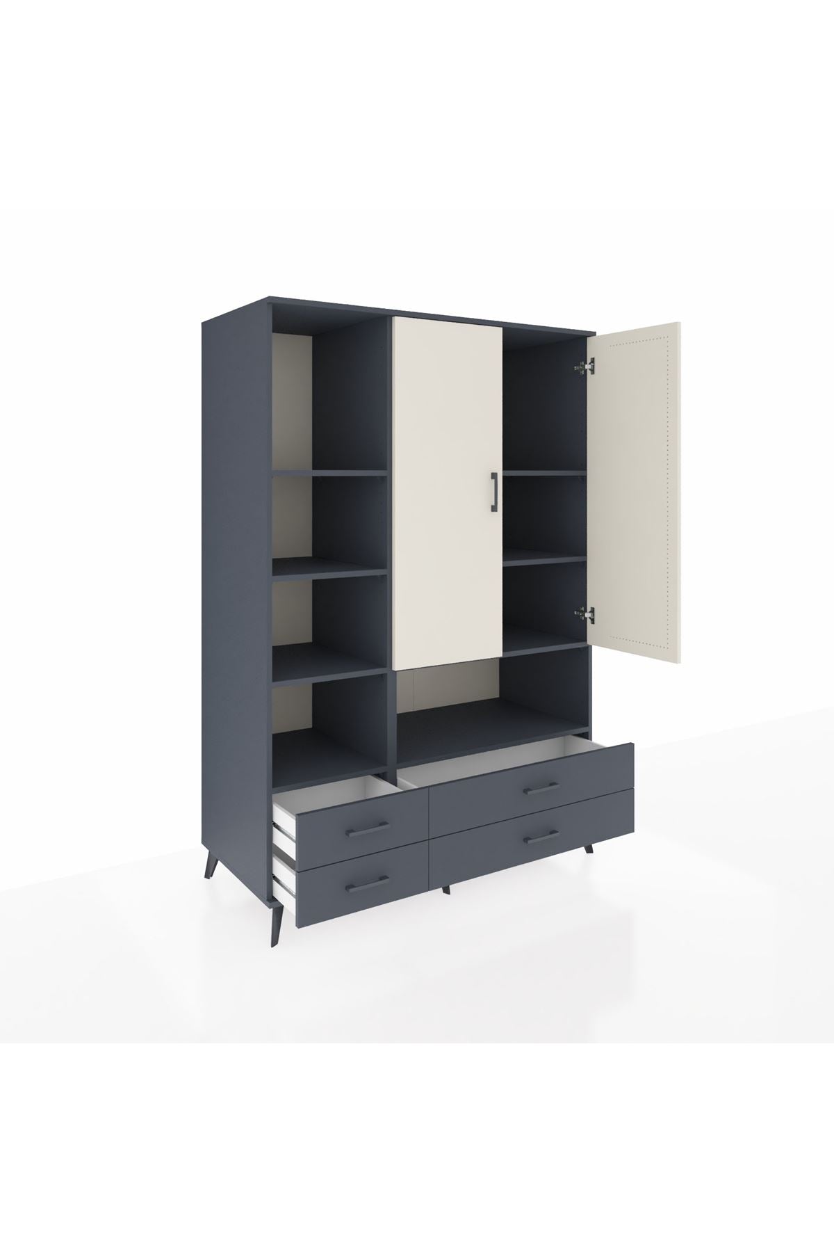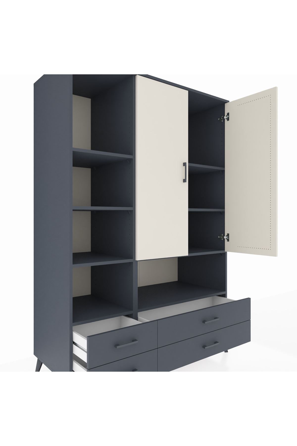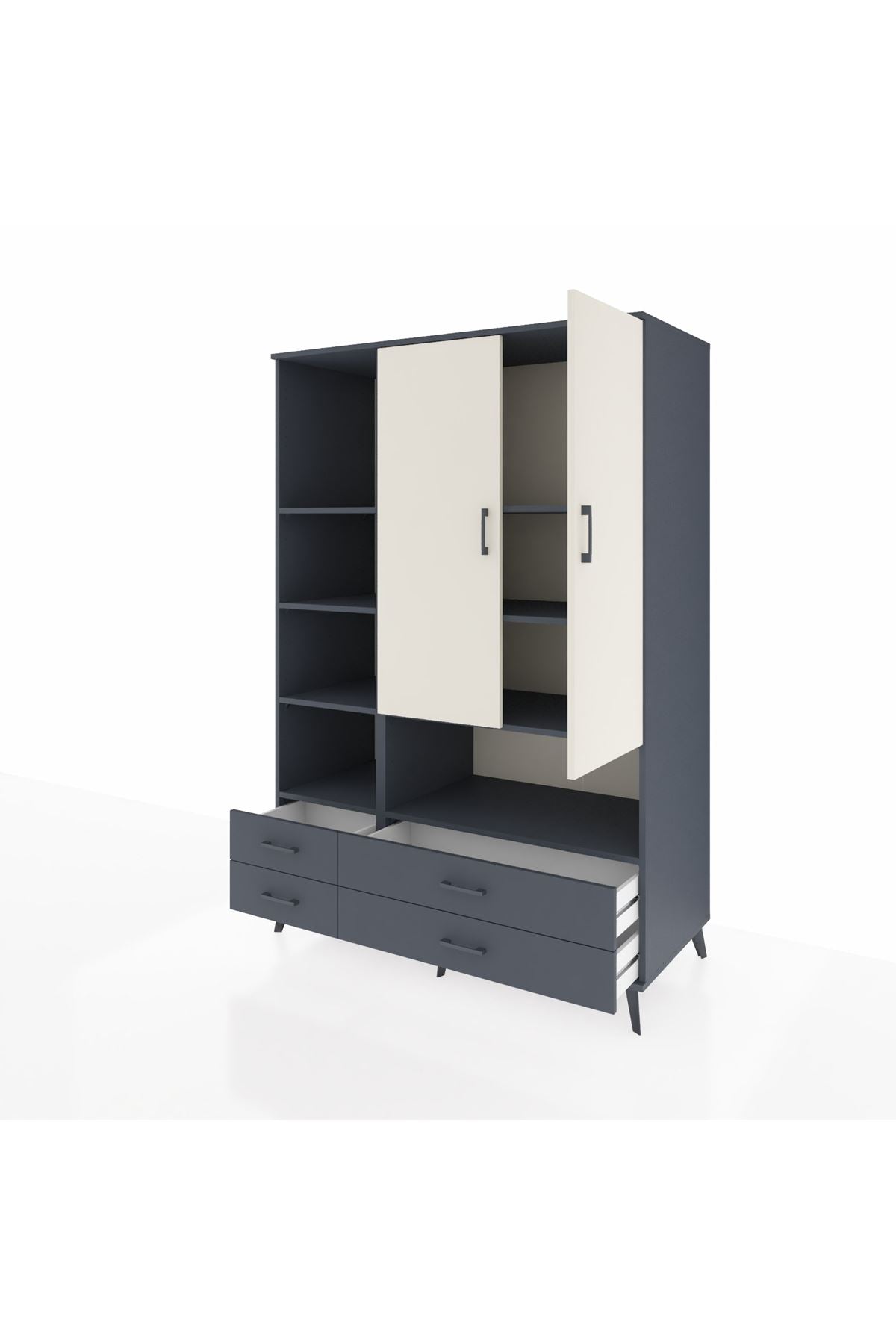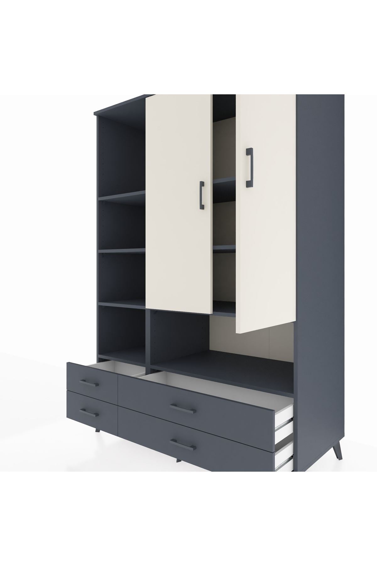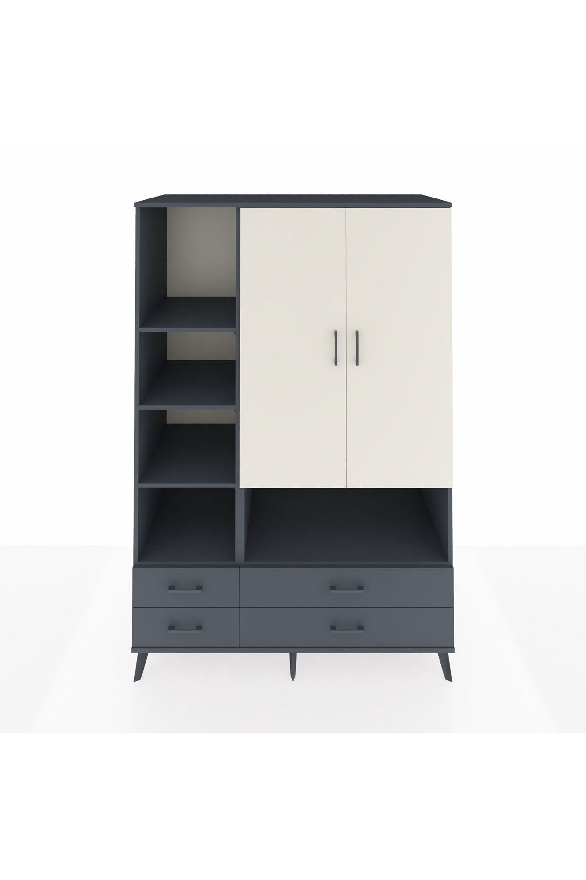 8 adet rafı sayesinde tüm eşyalarınızı düzenli şekilde yerleştirebilirsiniz. 4 geniş çekmecesi ve 2 sağlam kapaklı bölmesiyle hem büyük hem küçük eşyalarınıza kolayca erişebilirsiniz. Kasa Antrasit ve Aytaşı/Antrasit renk kombinasyonu, zamansız tasarım anlayışını yansıtır ve bulunduğu ortama sofistike bir hava katar.