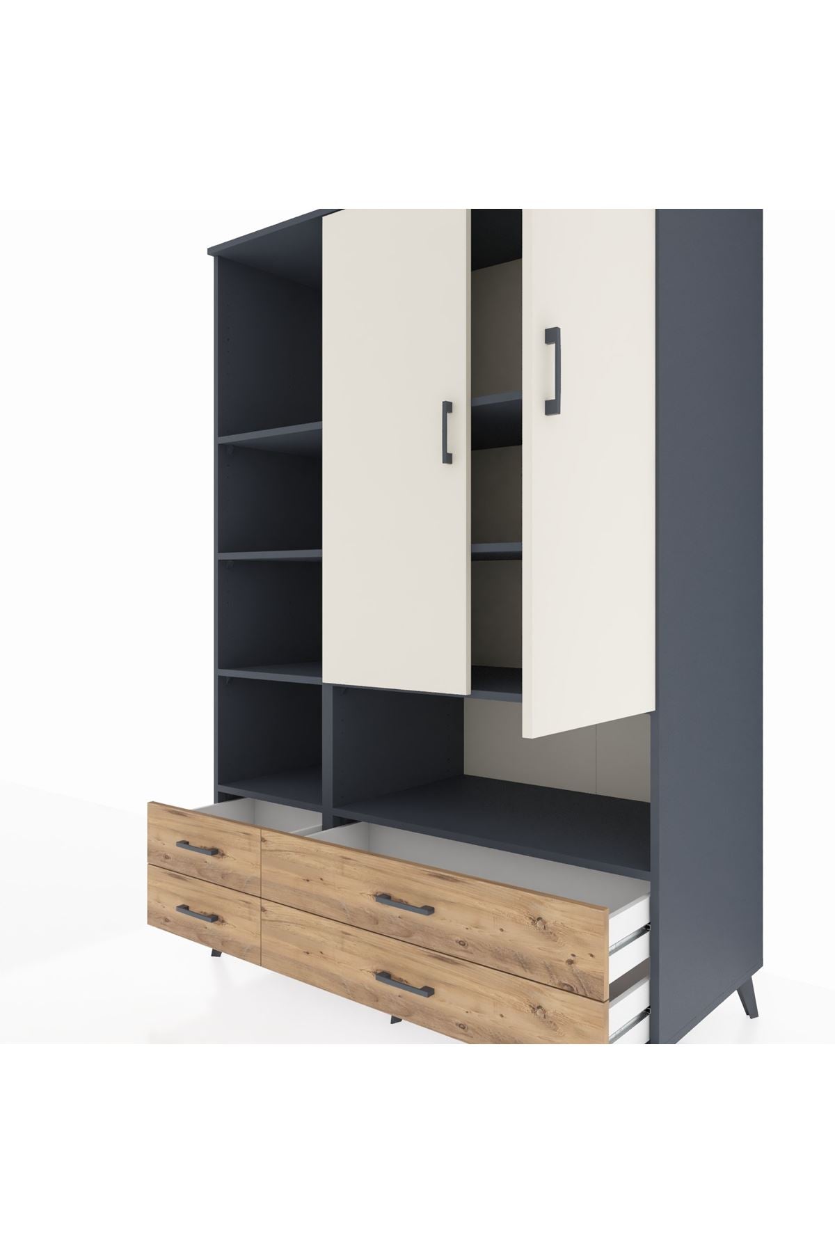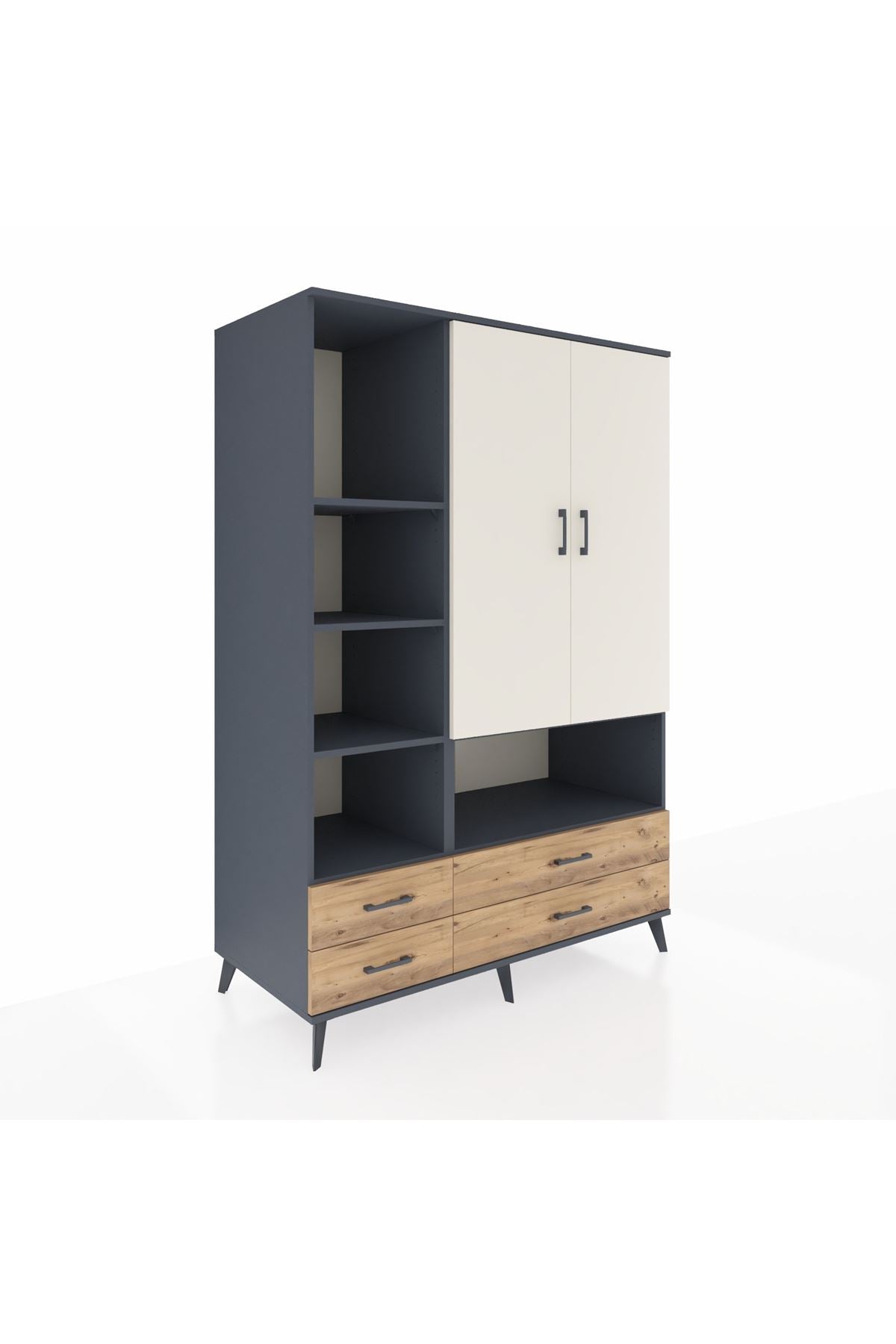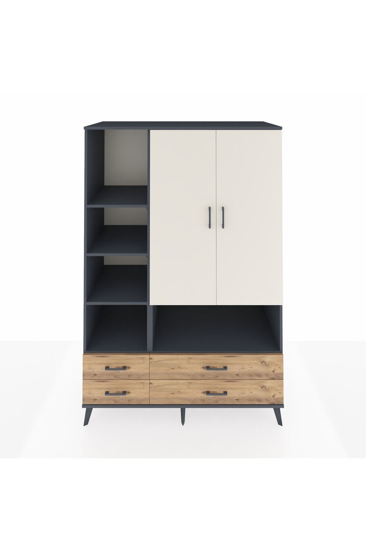 Kronos Dolap 8 Raflı 4 Çekmeceli 2 Kapaklı 132x59x195 Antrasit-Aytaşı/Çam