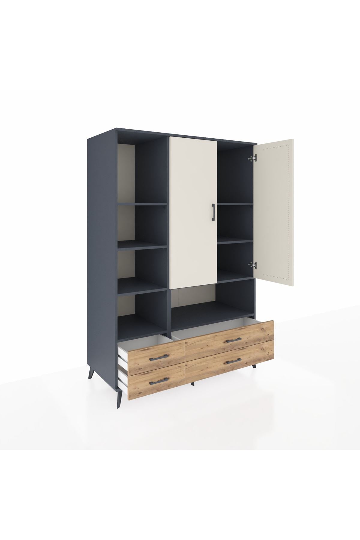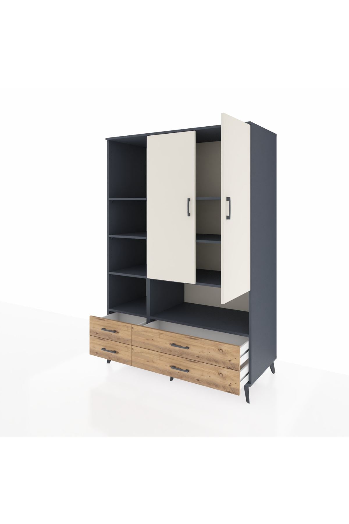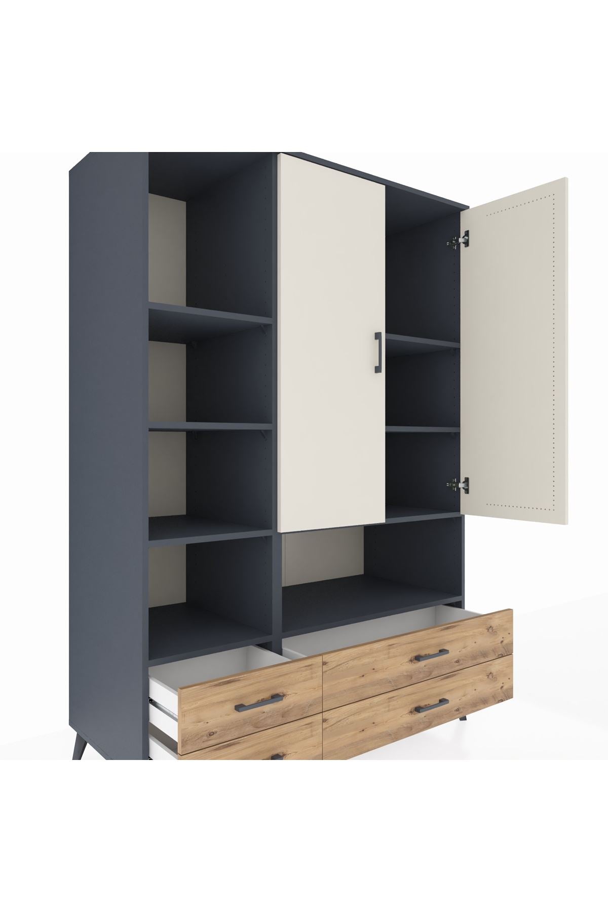 Ürünümüz 8 geniş rafı, 4 kullanışlı çekmecesi ve 2 sağlam kapağıyla maksimum depolama konforu sunar. Antrasit ve aytaşı/çam renk kombinasyonu, mekanlarınıza modern ve sıcak bir dokunuş katar. Kastamonu Entegre 1. sınıf suntalam gövdesiyle uzun ömürlü kullanım sağlar. Metal ayak ve kulplar ise hem şıklık hem de sağlamlık katar. 1.2 mm kalın kenar bandı sayesinde darbelere ve çizilmelere karşı ekstra dayanıklıdır.
