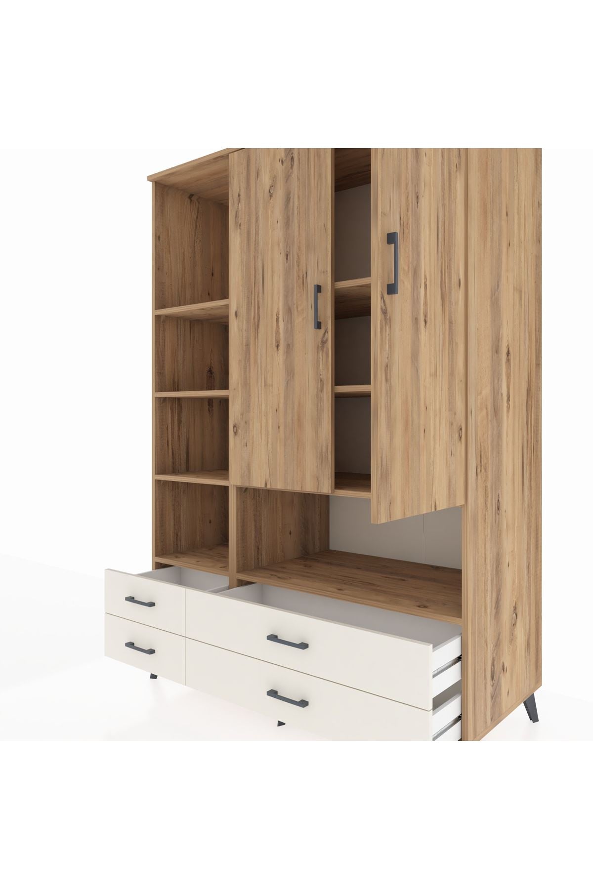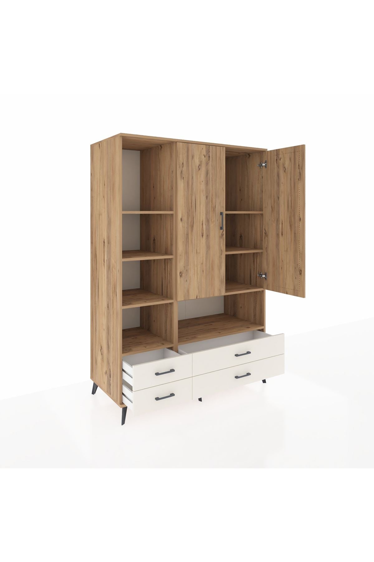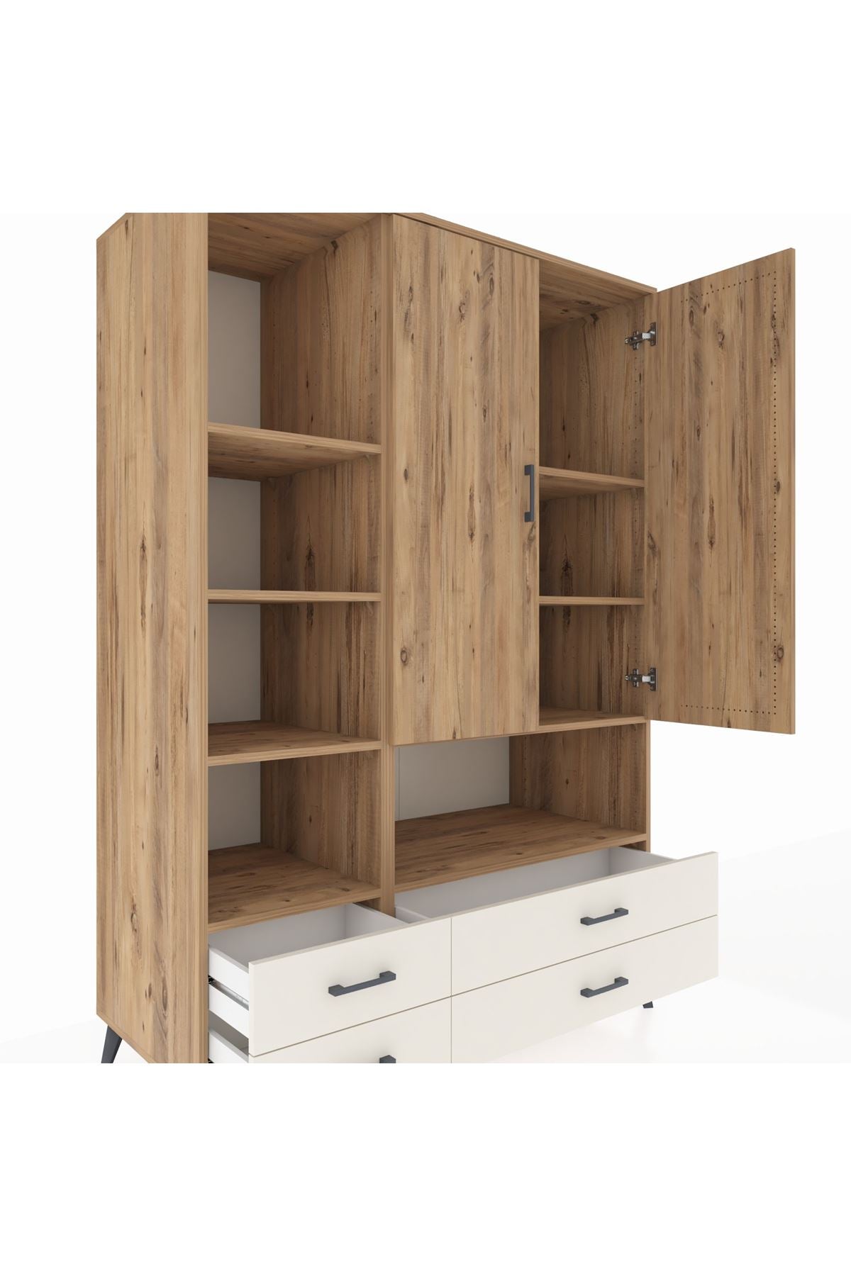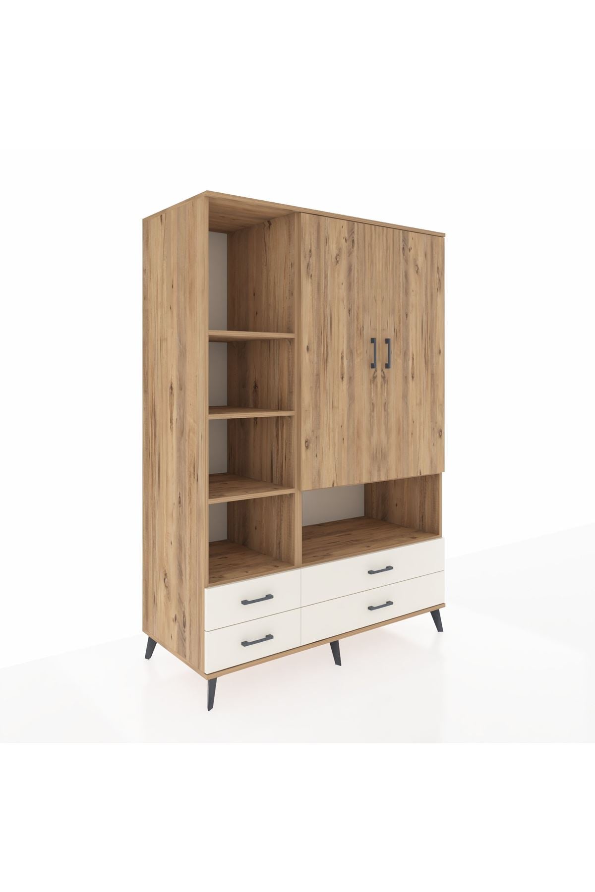 Kronos Dolap 8 Raflı 4 Çekmeceli 2 Kapaklı 132x59x195 Çam-Çam/Aytaşı