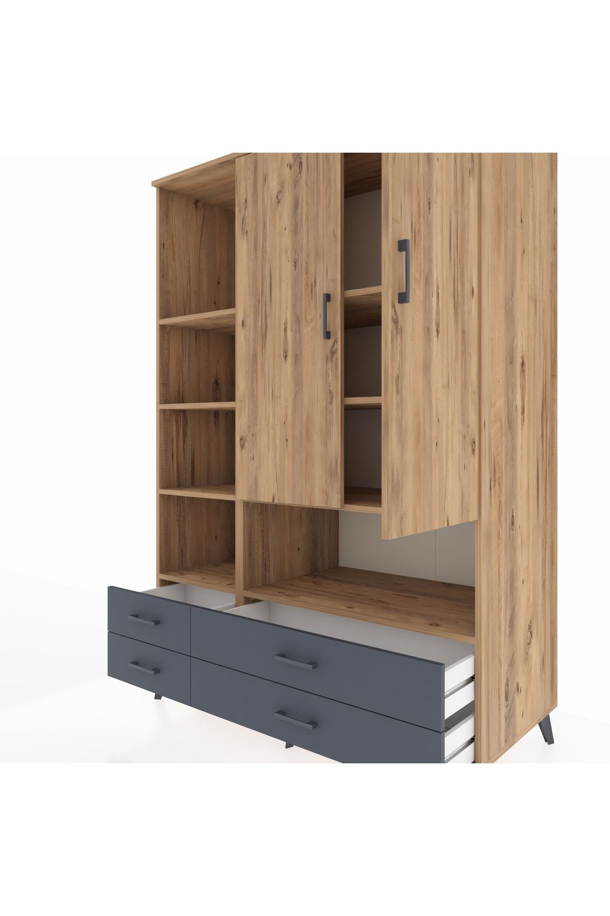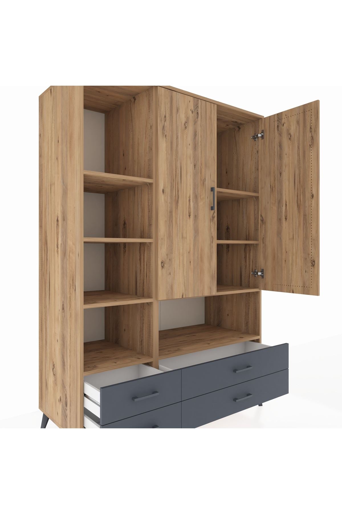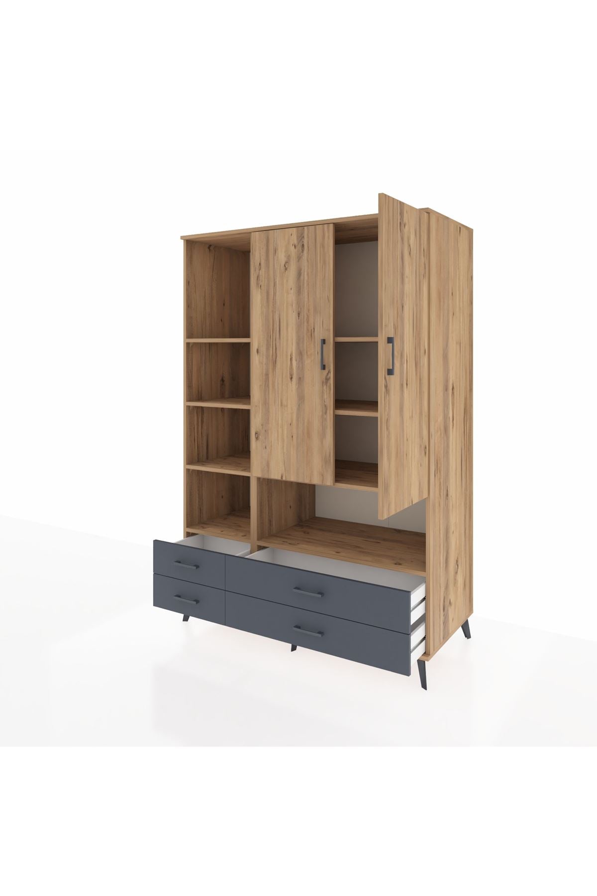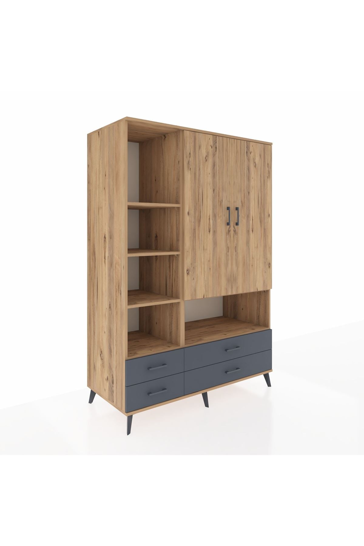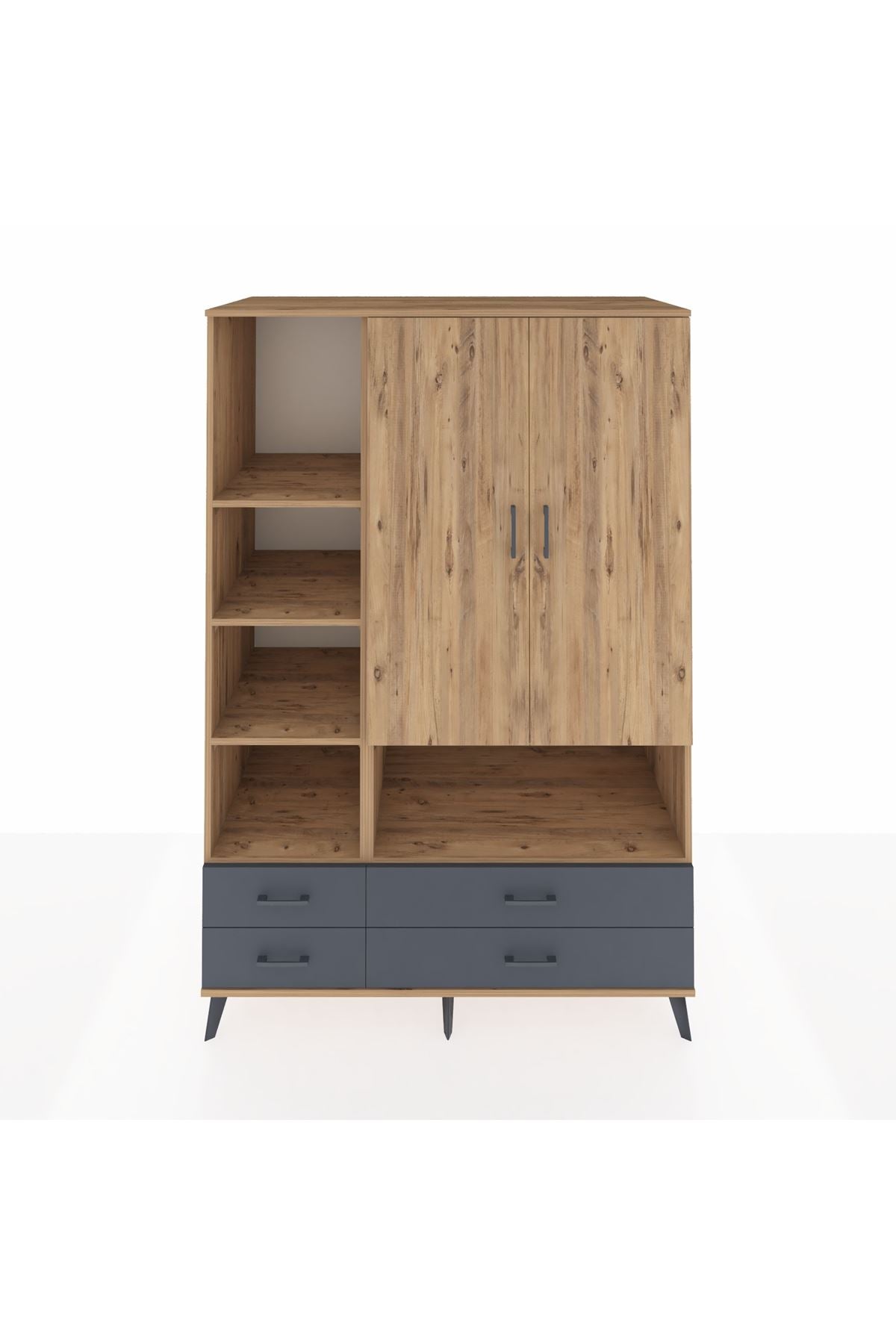 Kronos Dolap 8 Raflı 4 Çekmeceli 2 Kapaklı 132x59x195 Çam-Çam/Antrasit