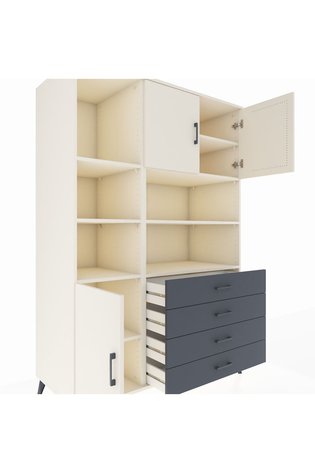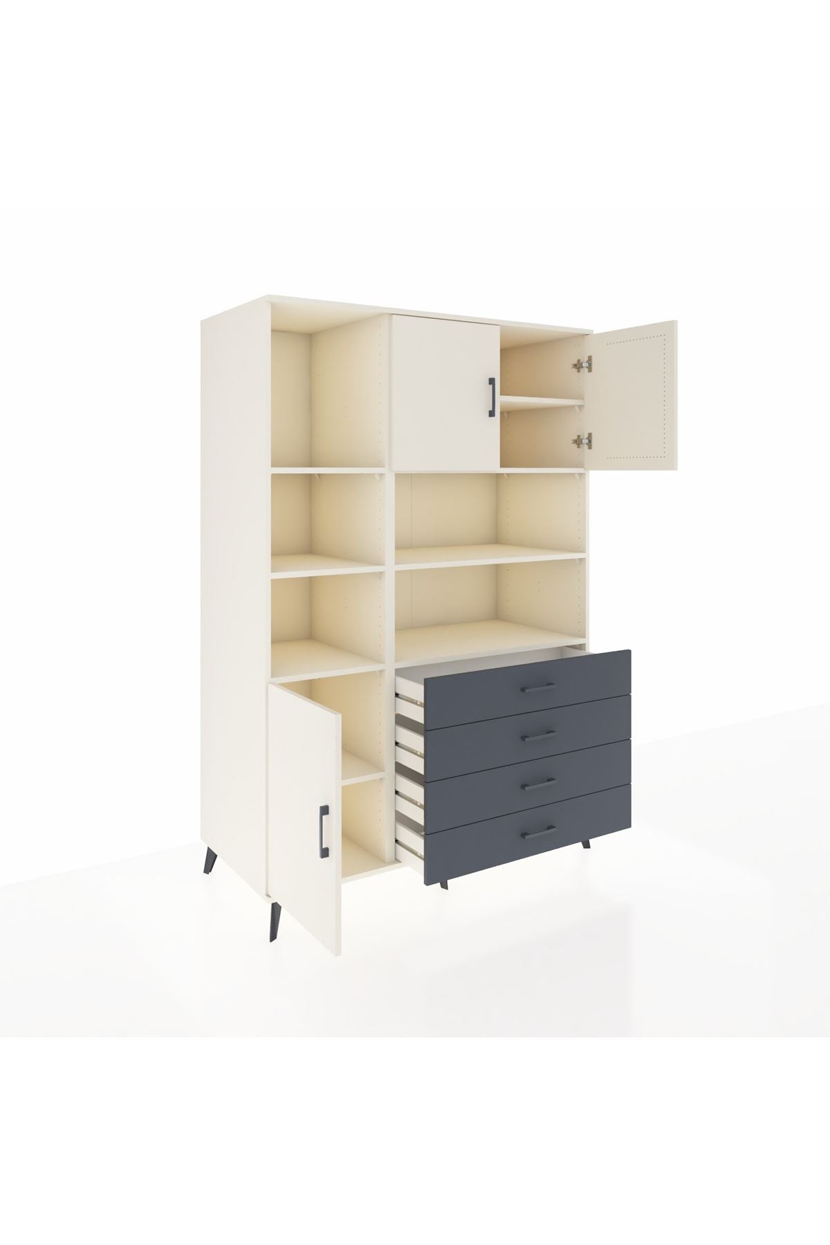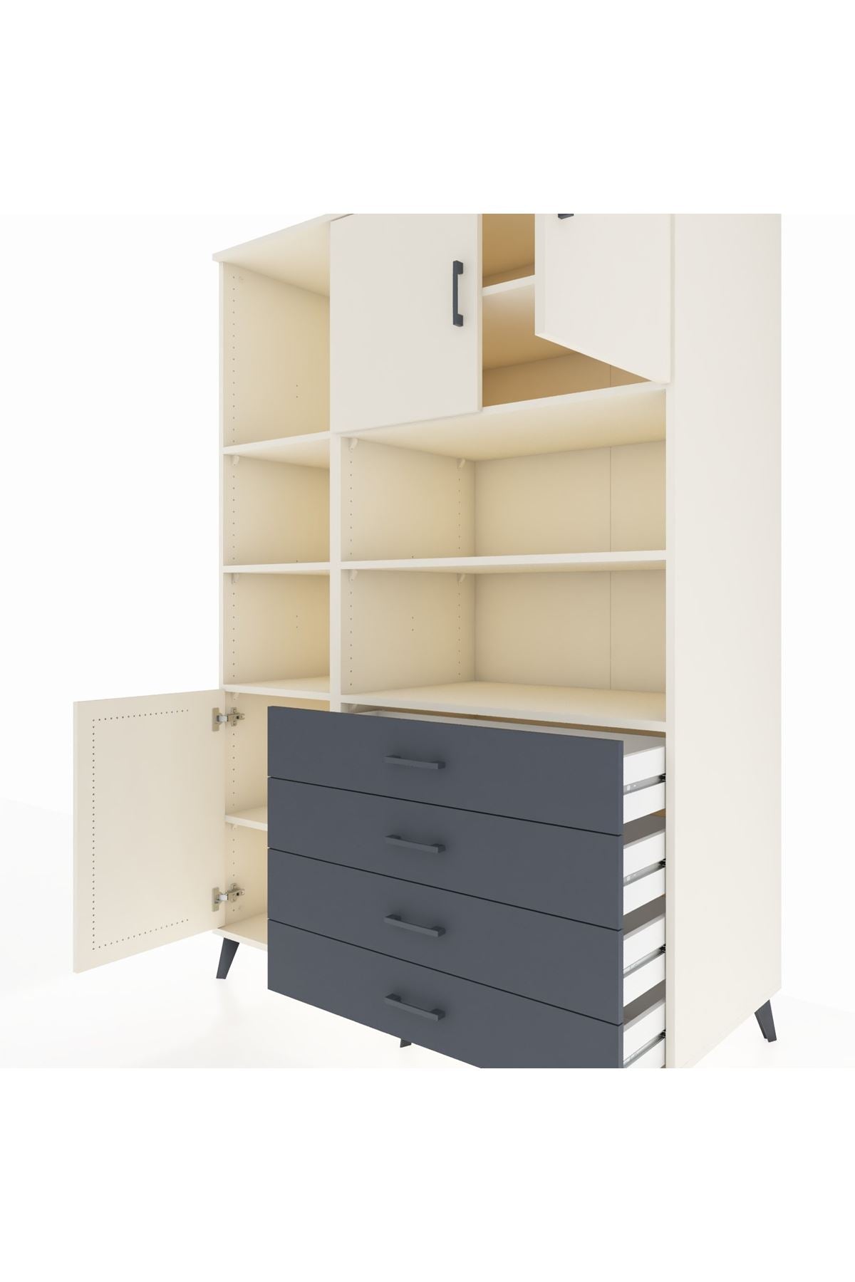 Kronos Dolap 8 Raflı 4 Çekmeceli 3 Kapaklı 132x59x195 Aytaşı-Aytaşı/Antrasit