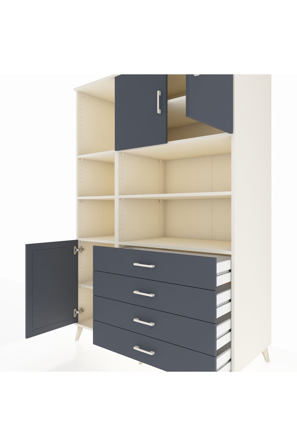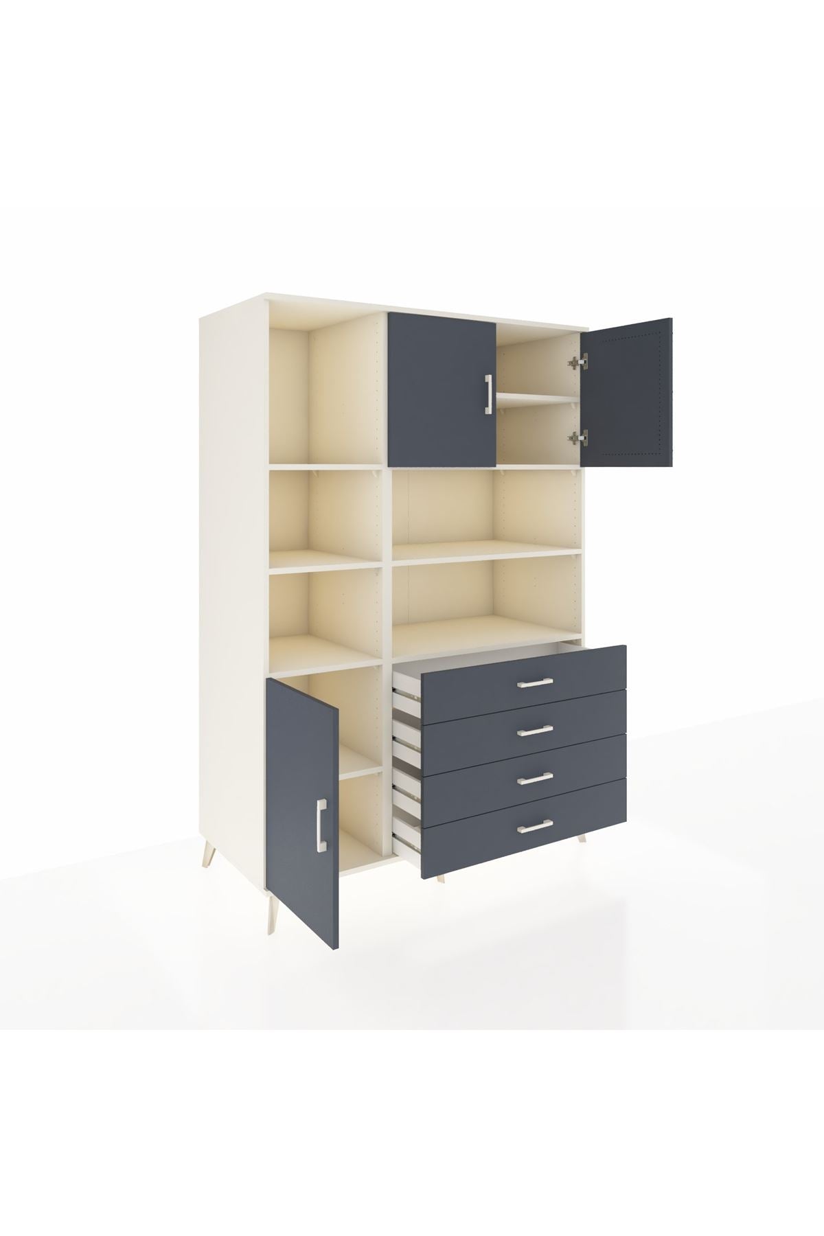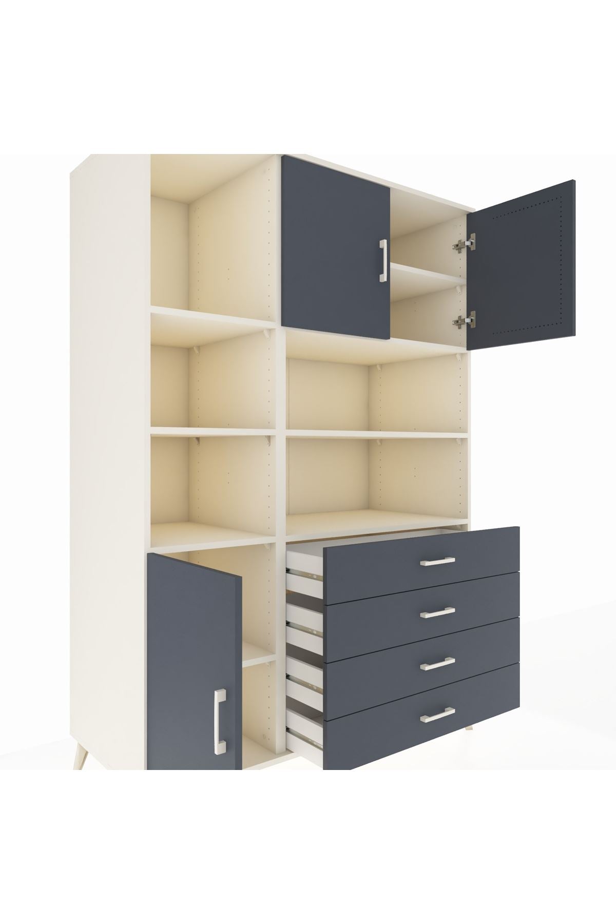 8 geniş rafı 🗄️ ve 4 çekmecesi ile eşyalarınızı rahatça yerleştirebilirsiniz.