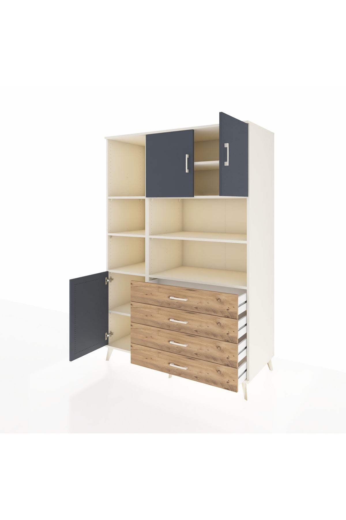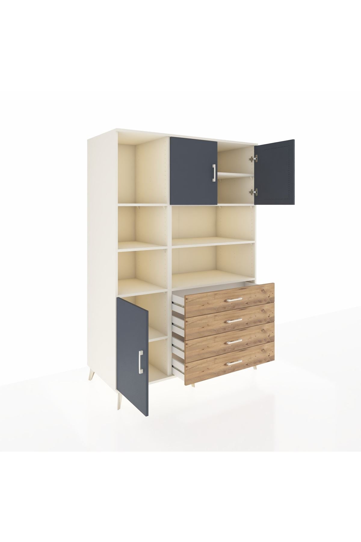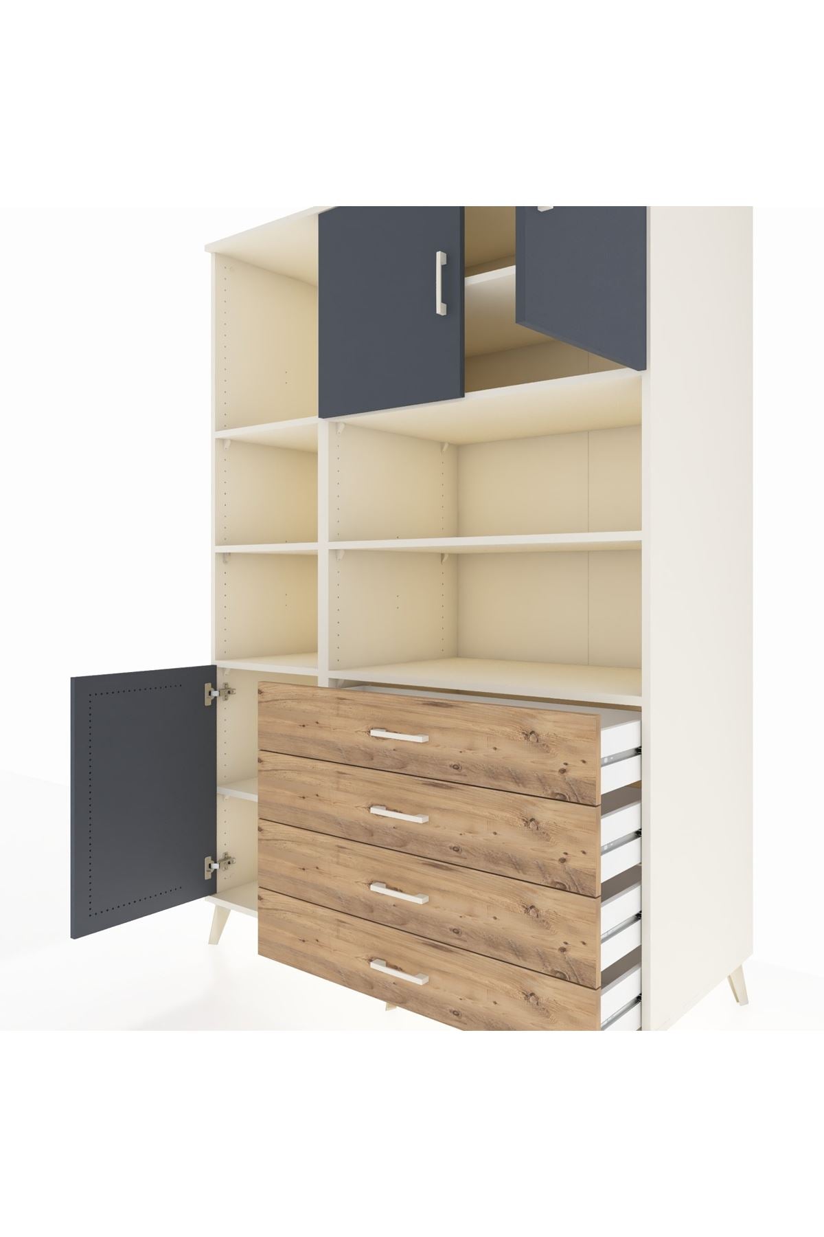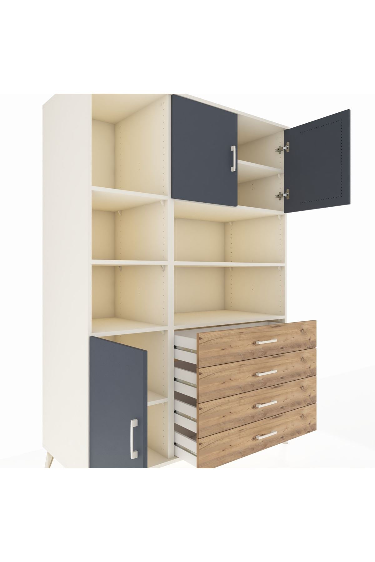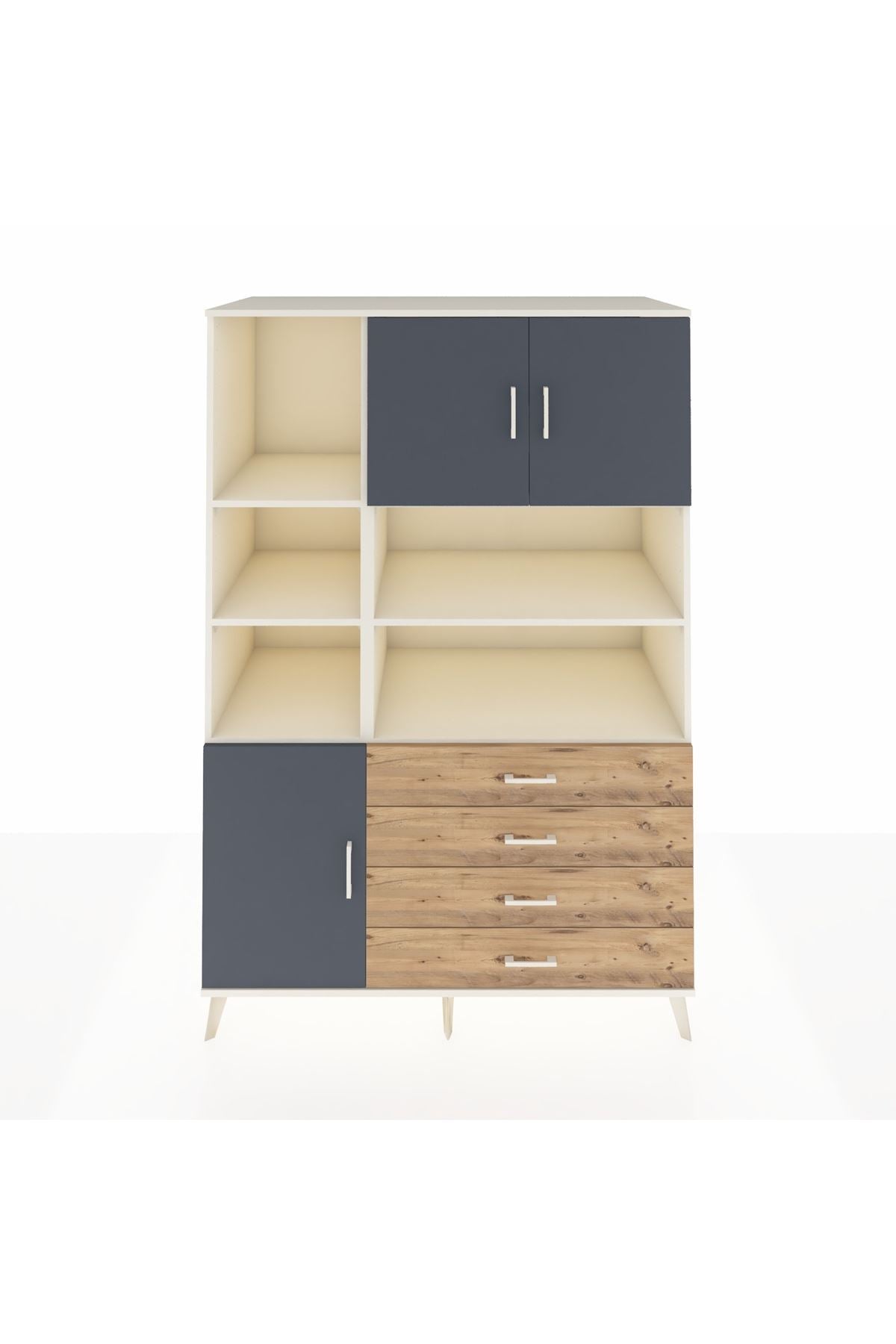 8 adet geniş rafı, 4 kullanışlı çekmecesi ve 3 adet sağlam kapağı ile ihtiyaç duyduğunuz her eşyayı kolayca organize edebilirsiniz. Aytaşı-antrasit ve çam tonlarının birleşimi, mekânlarınıza sıcaklık ve zarafet katar. 🌲✨ Metal ayak ve metal kulplar sayesinde hem sağlamlık hem de şık bir görünüm elde edilmiştir.