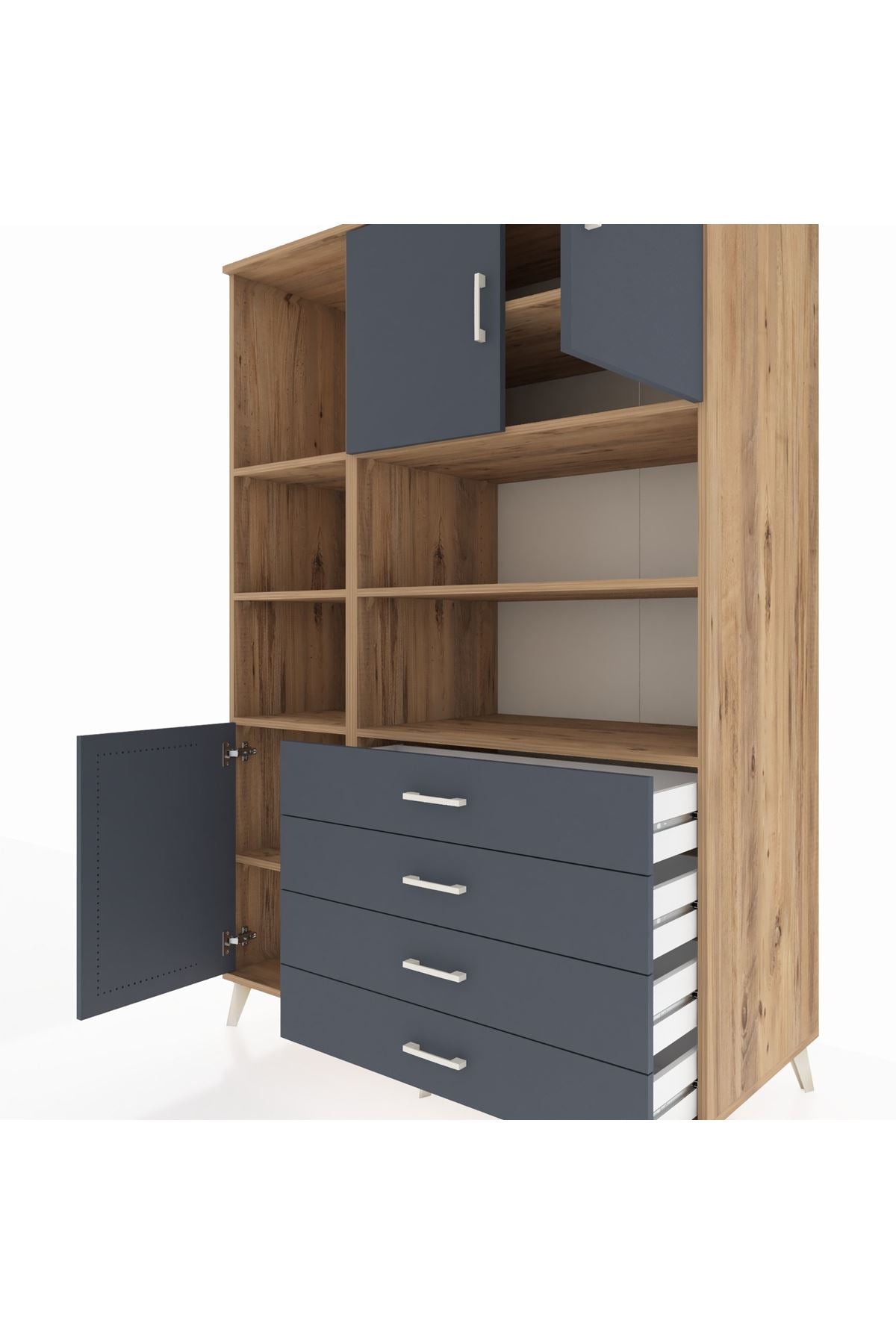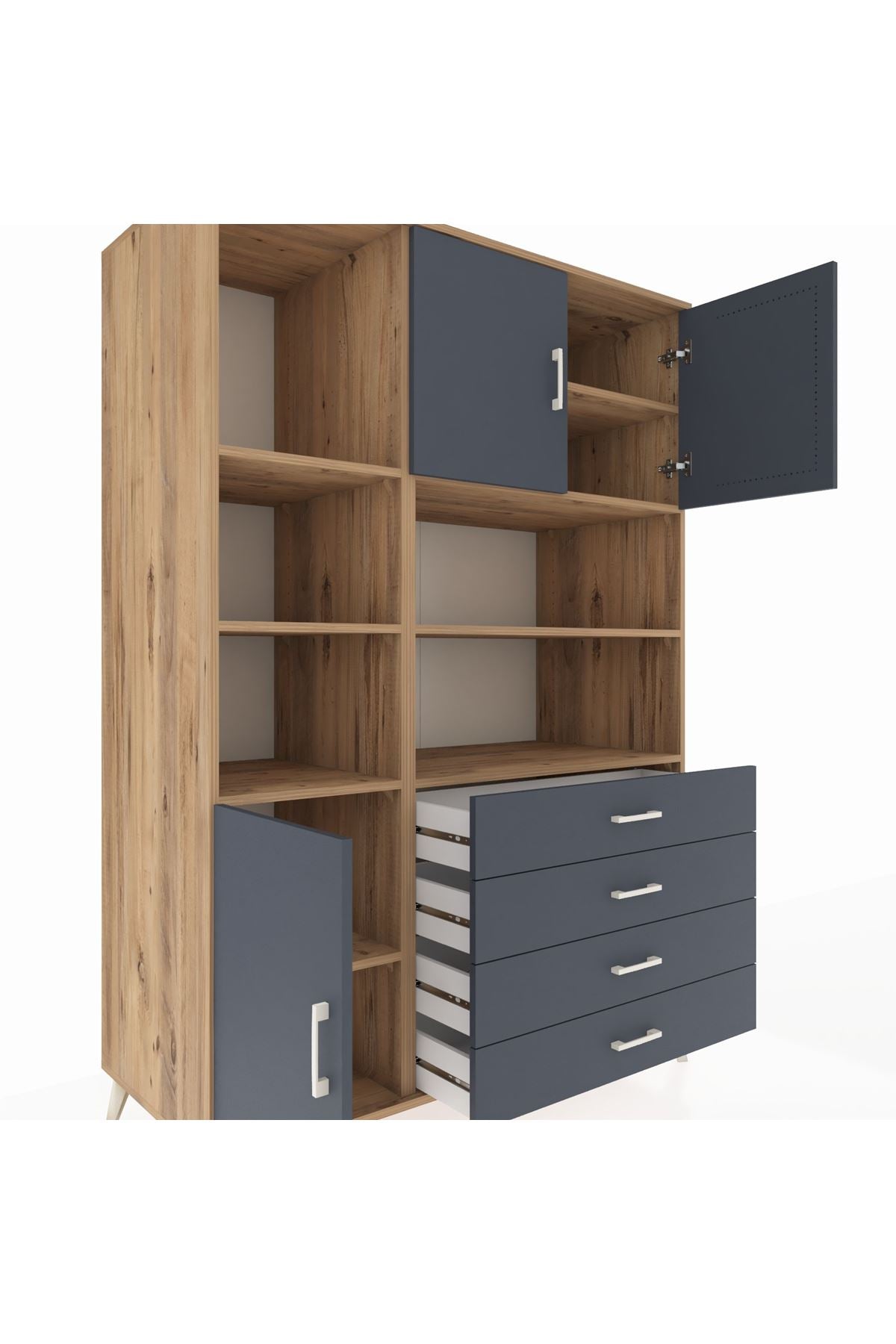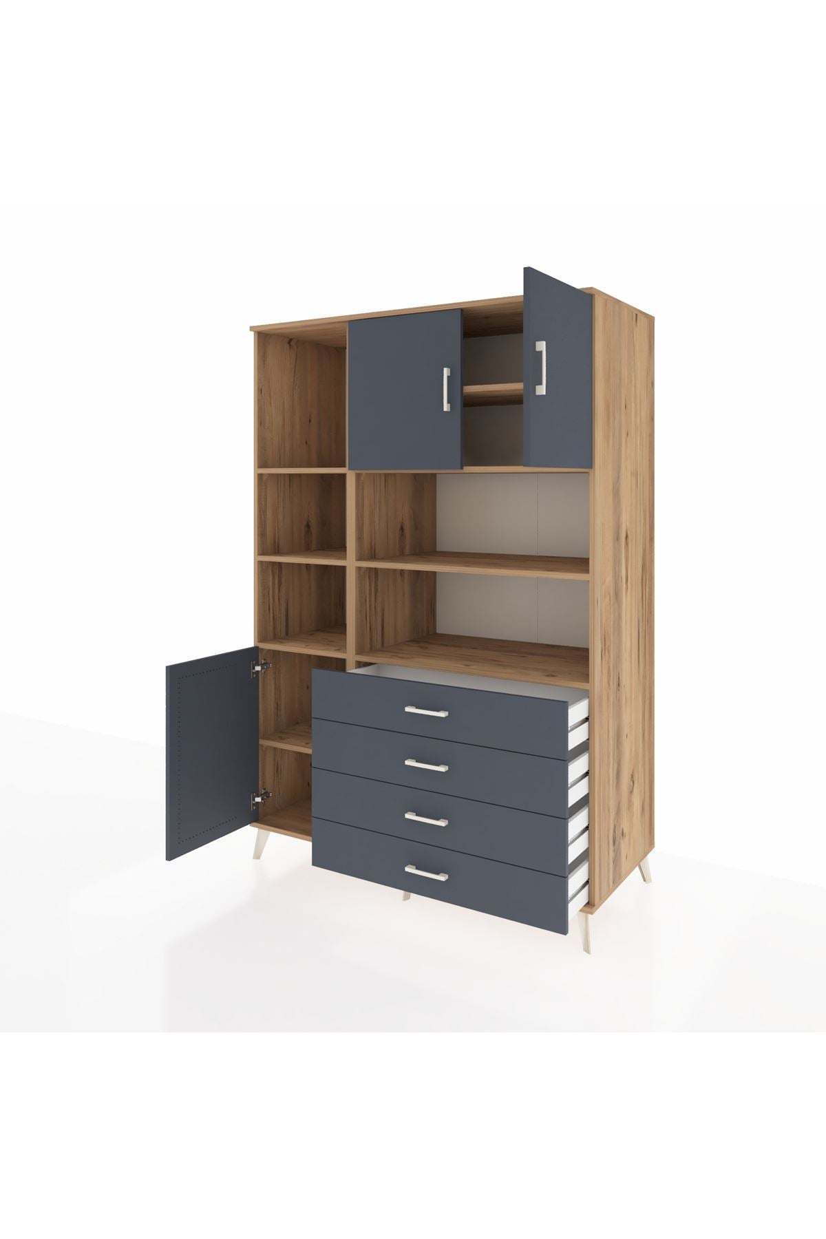 Kronos Dolap 8 Raflı 4 Çekmeceli 3 Kapaklı 132x59x195 Çam-Antrasit/Antrasit