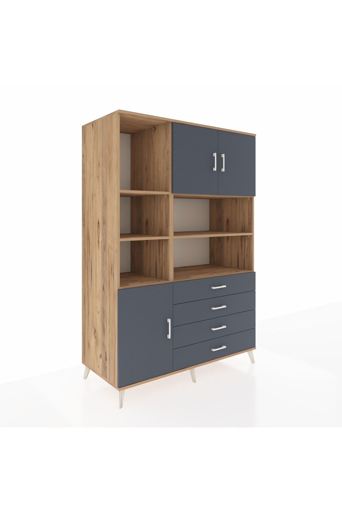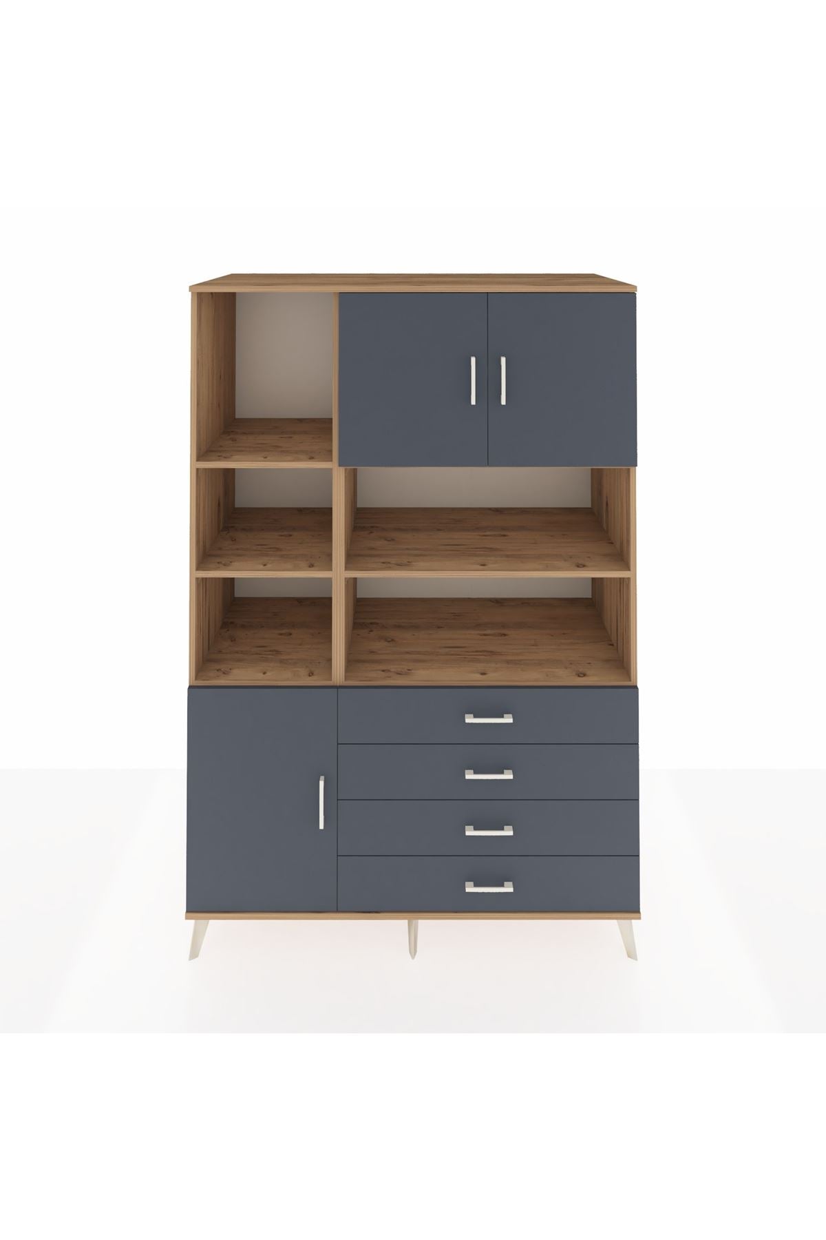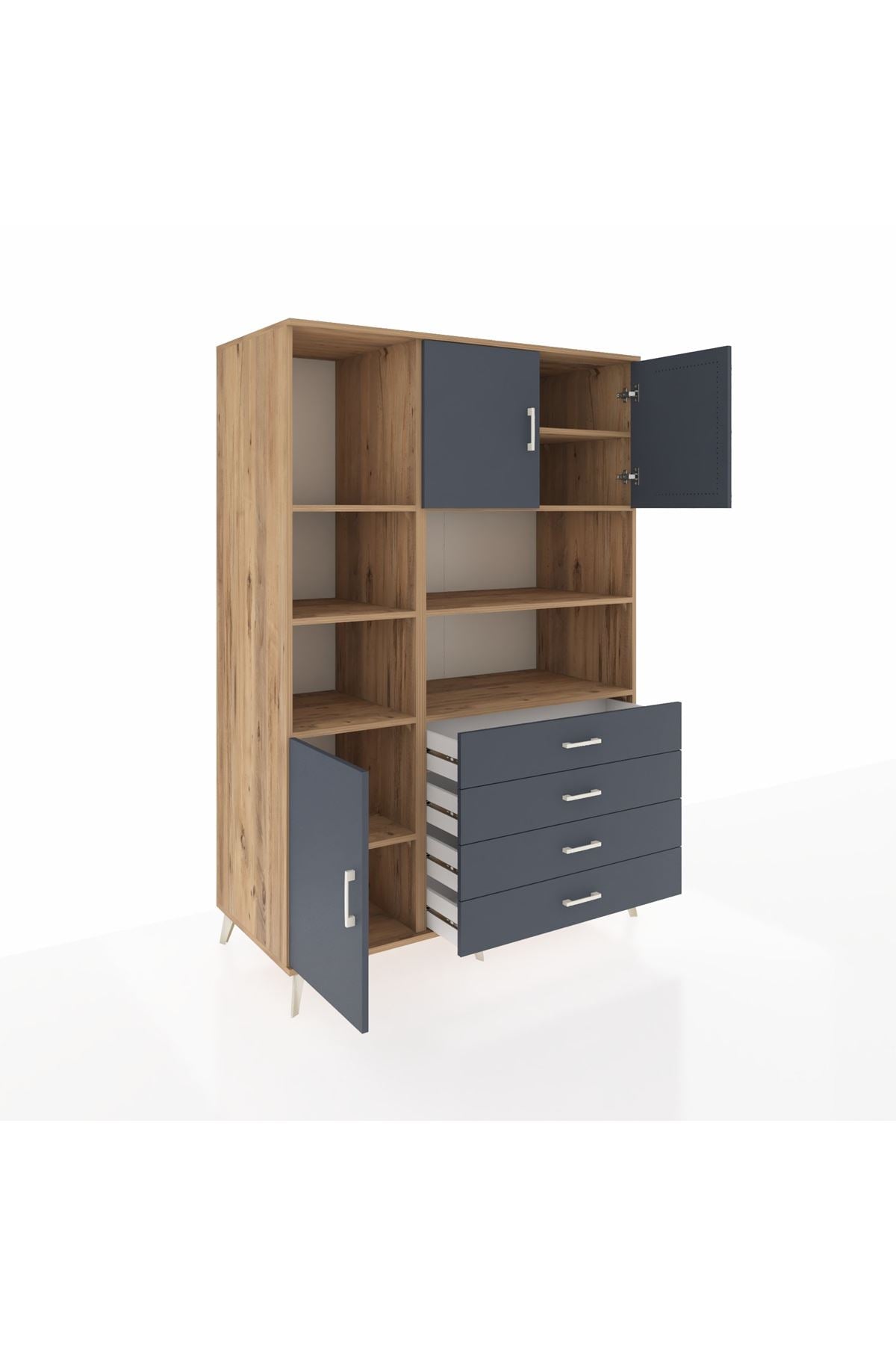 Kronos Dolap 8 Raflı 4 Çekmeceli 3 Kapaklı 132x59x195 Çam-Antrasit/Antrasit