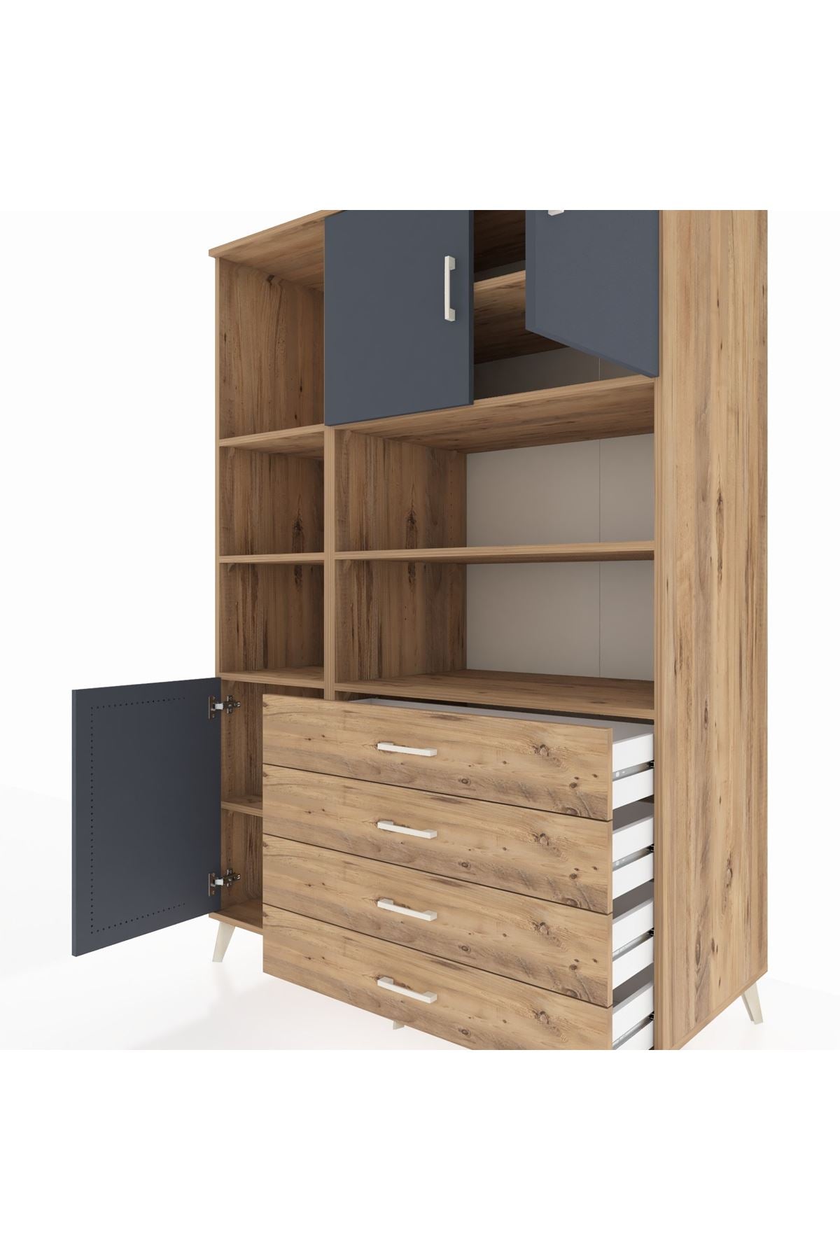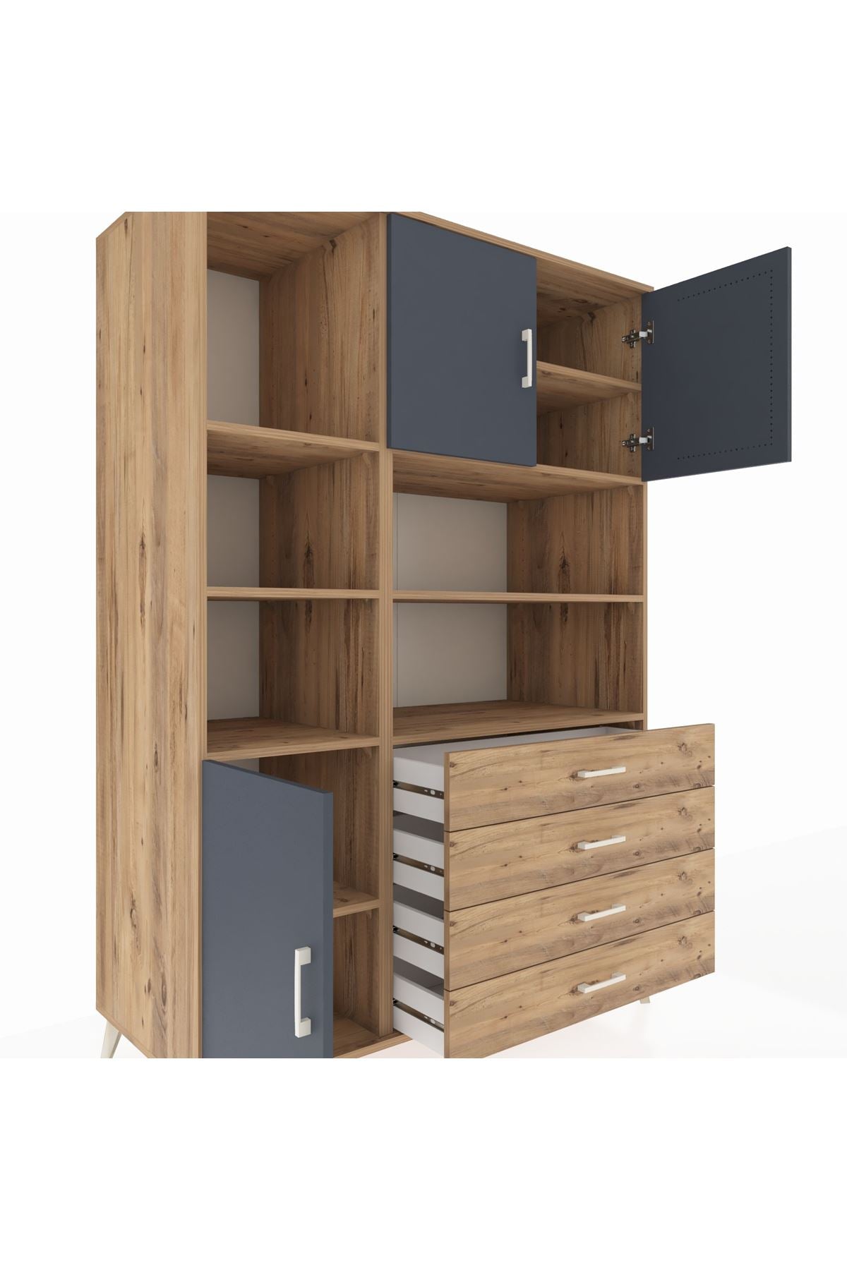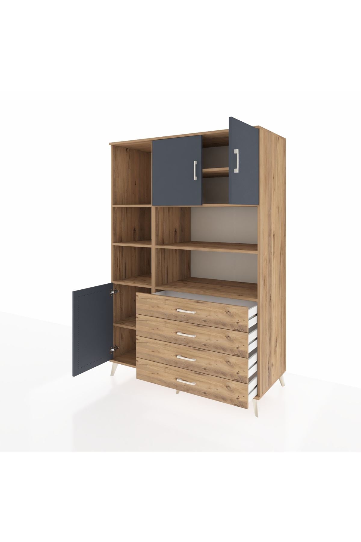 Kronos Dolap 8 Raflı 4 Çekmeceli 3 Kapaklı 132x59x195 Çam-Antrasit/Çam