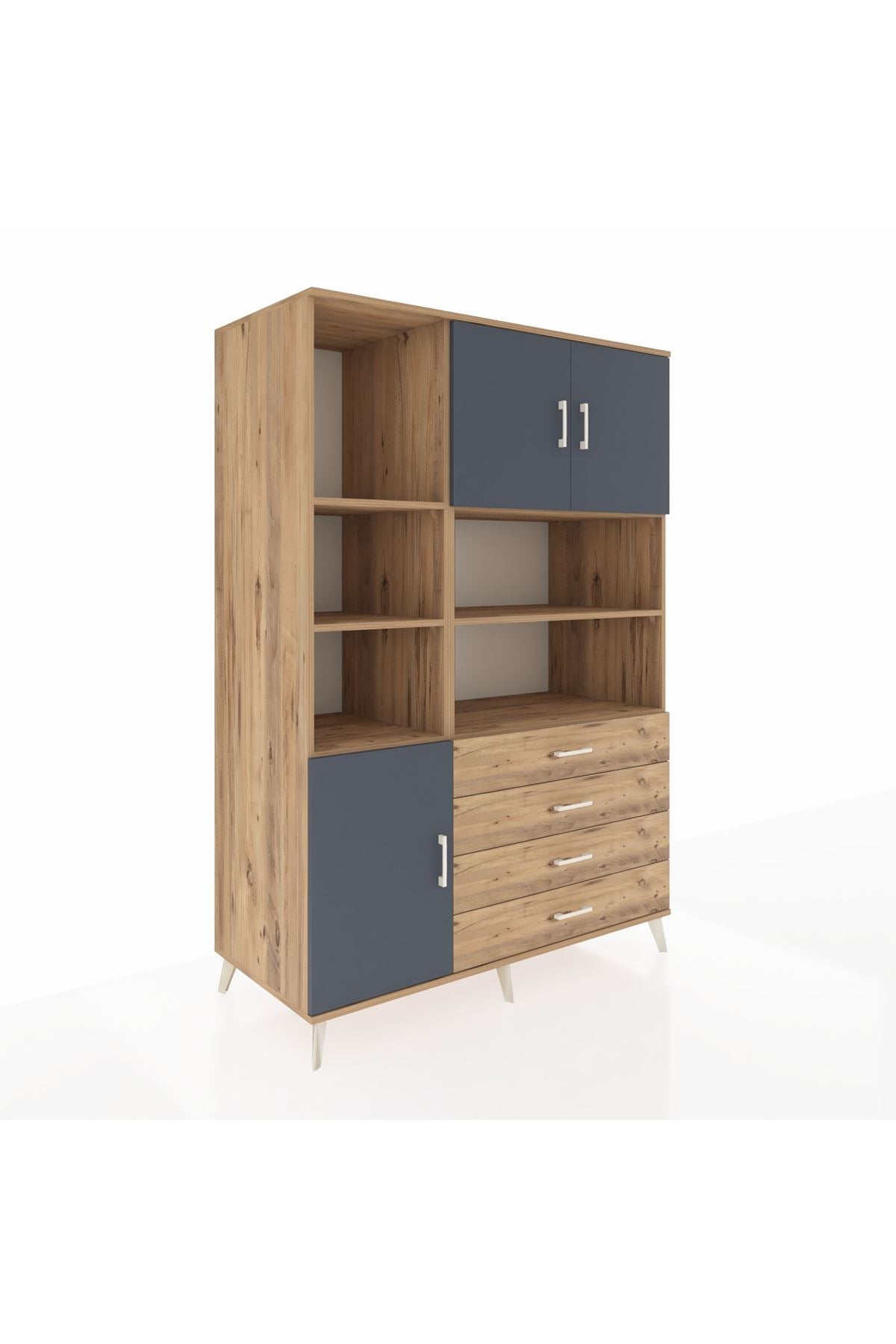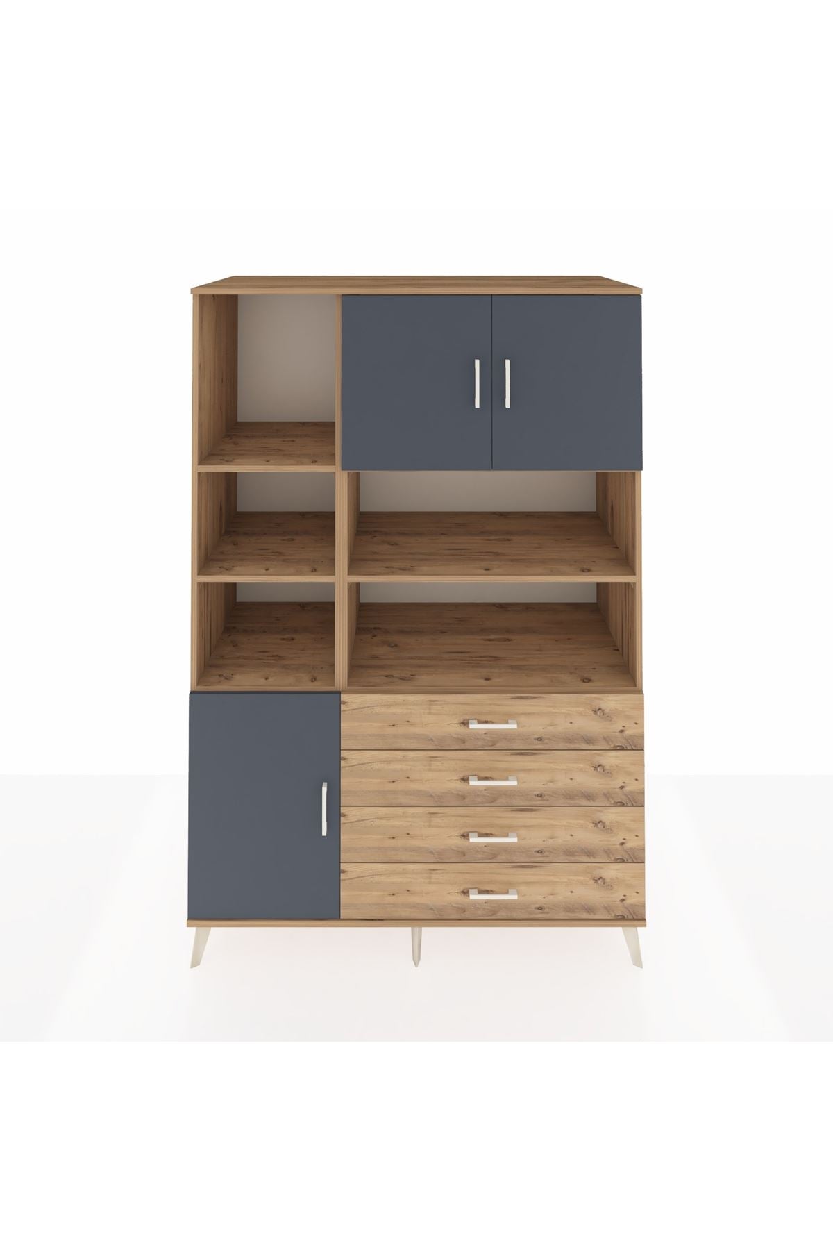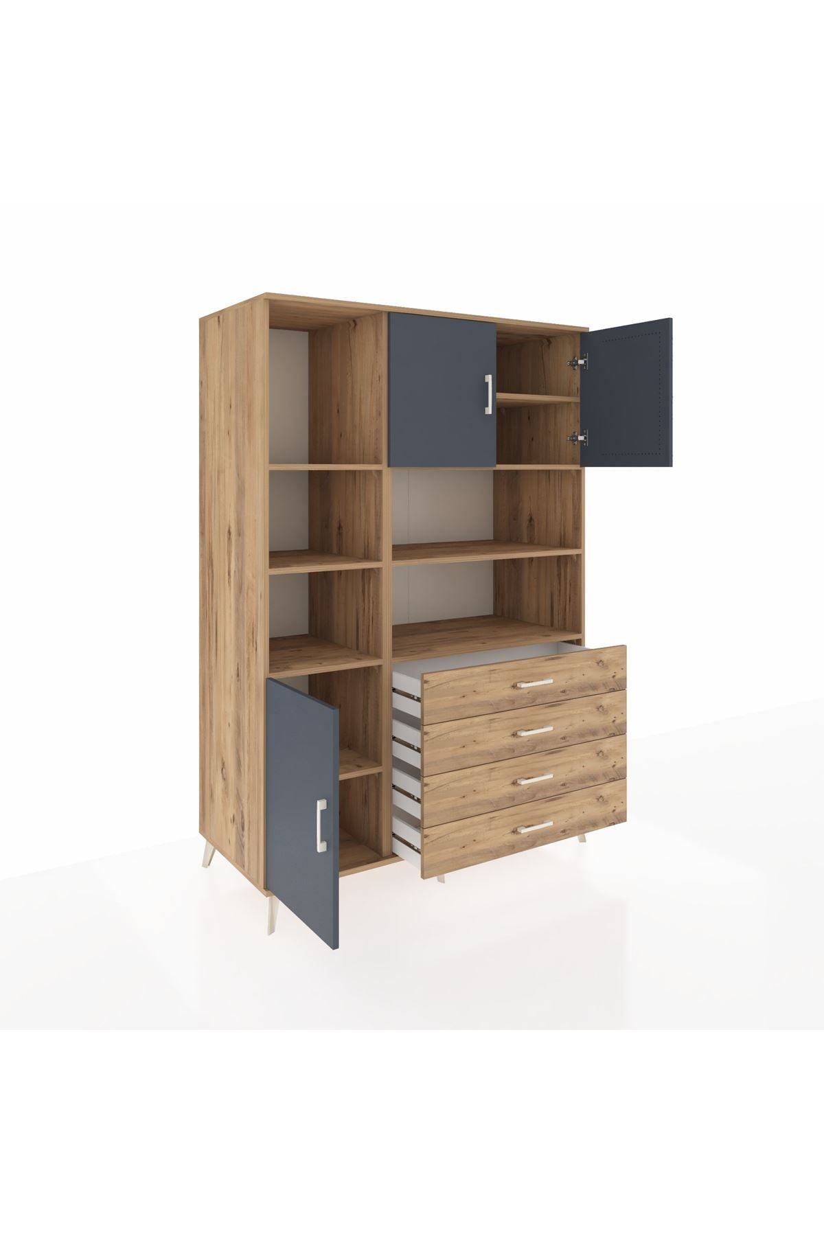 Kronos Dolap 8 Raflı 4 Çekmeceli 3 Kapaklı 132x59x195 Çam-Antrasit/Çam
