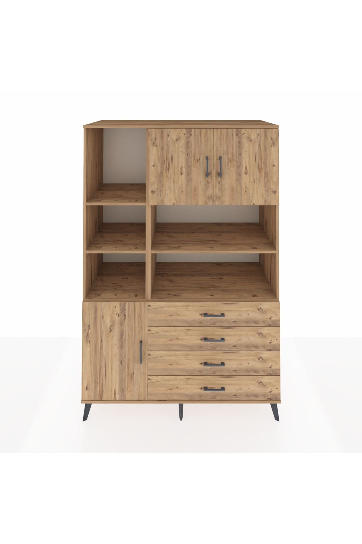 Kronos Dolap 8 Raflı 4 Çekmeceli 3 Kapaklı 132x59x195 Çam-Çam/Çam