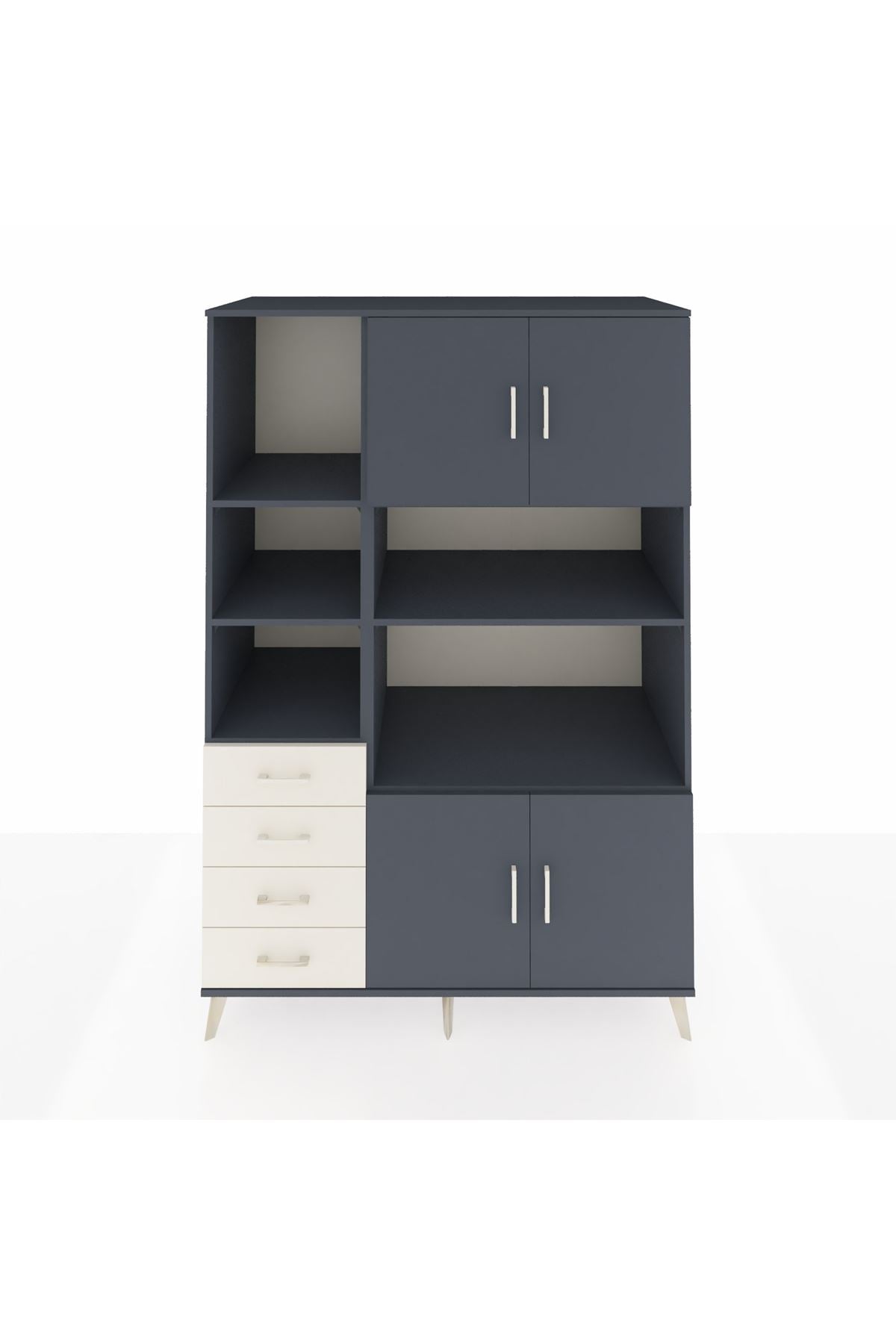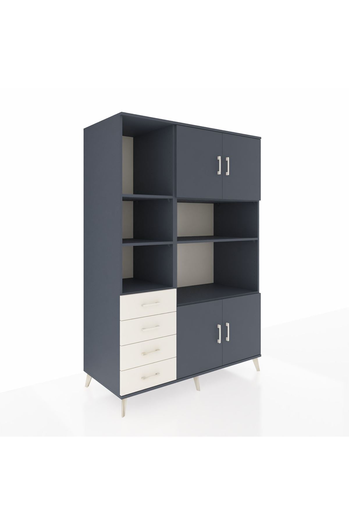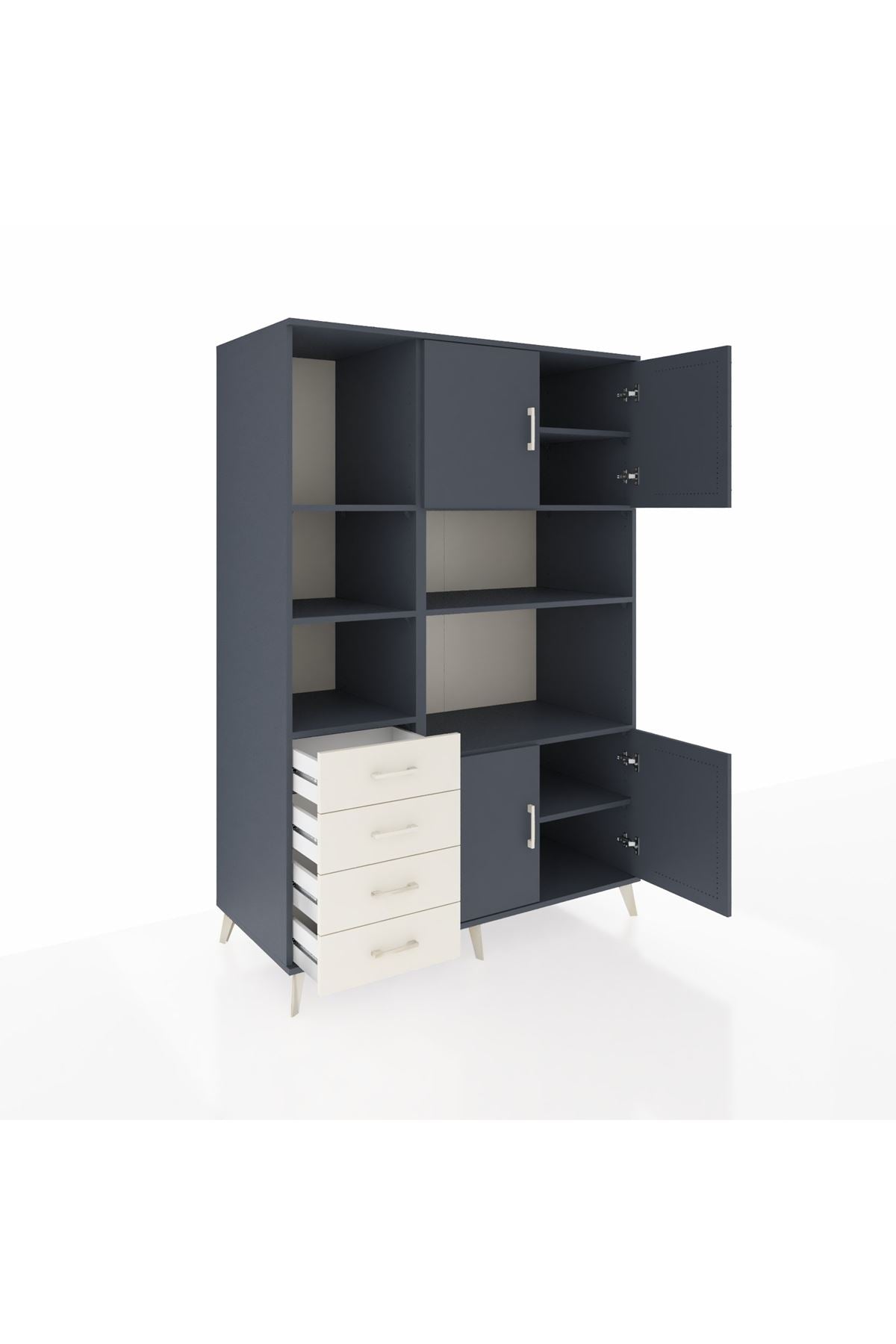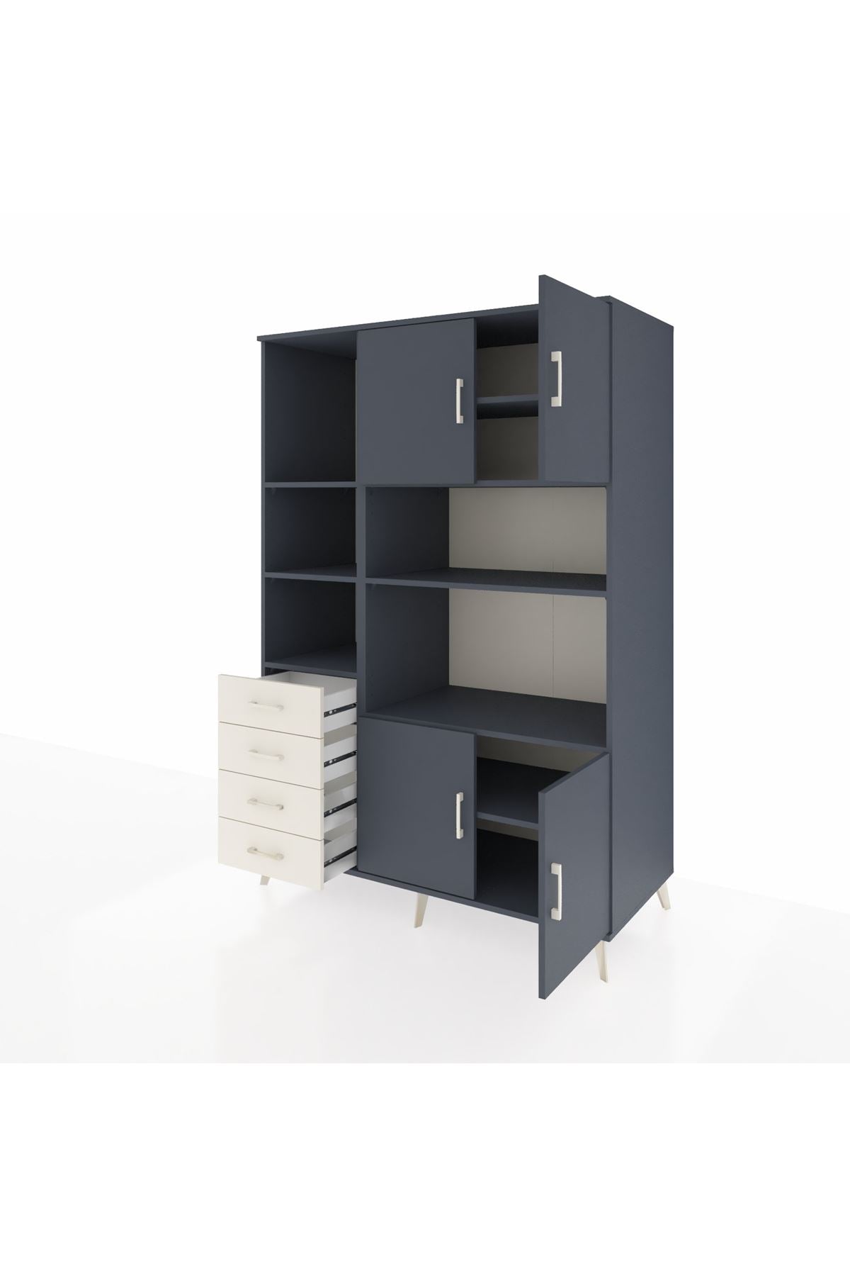Kronos Dolap 8 Raflı 4 Çekmeceli 4 Kapaklı 132x59x195 Antrasit-Antrasit/Aytaşı
