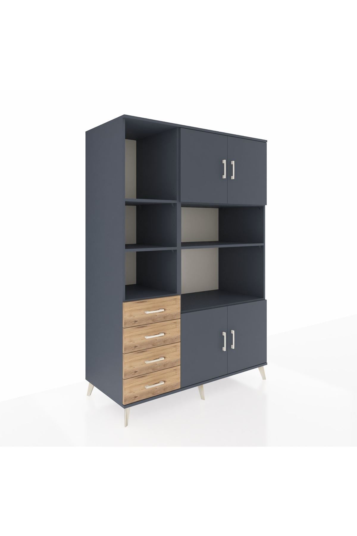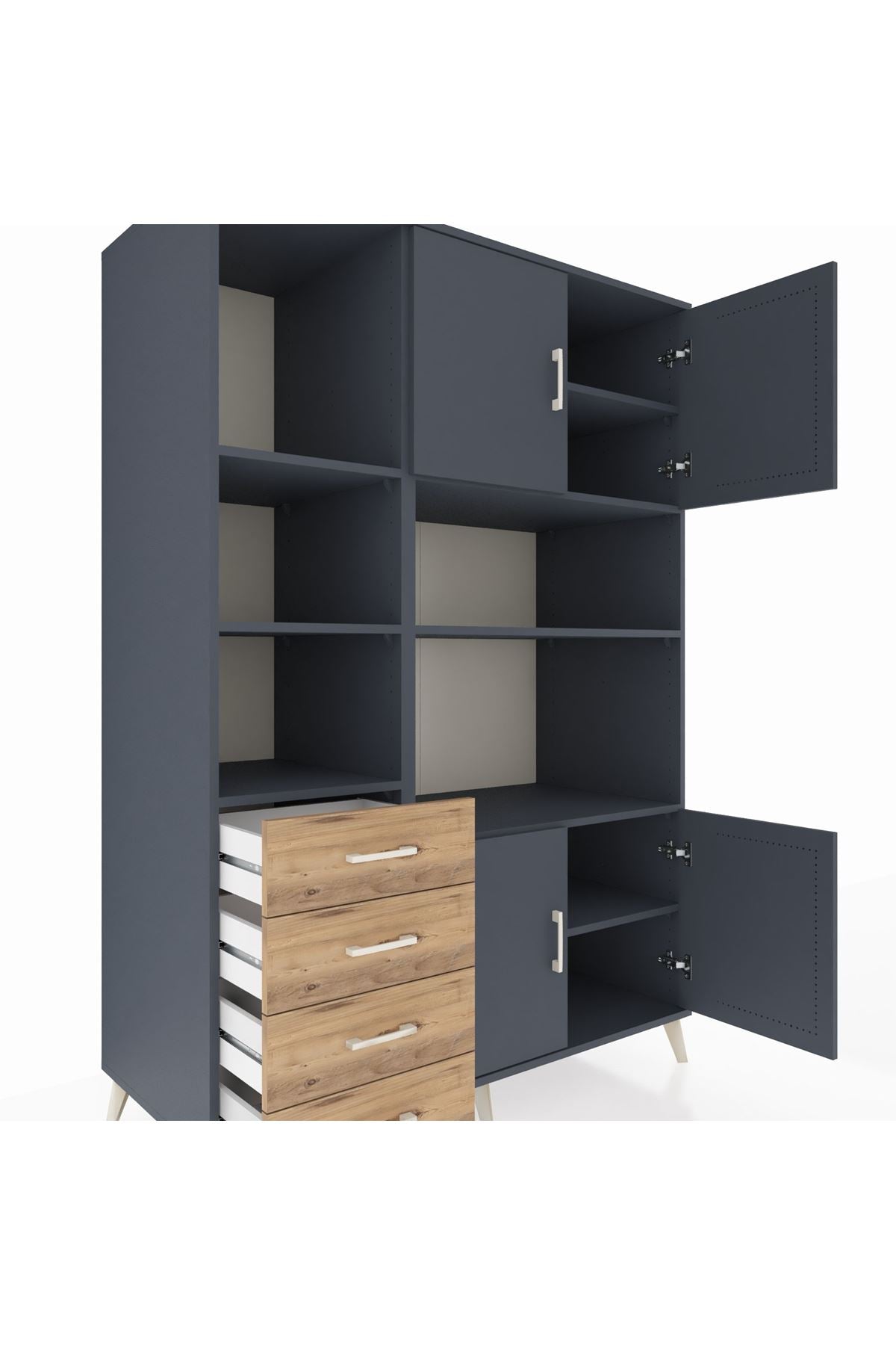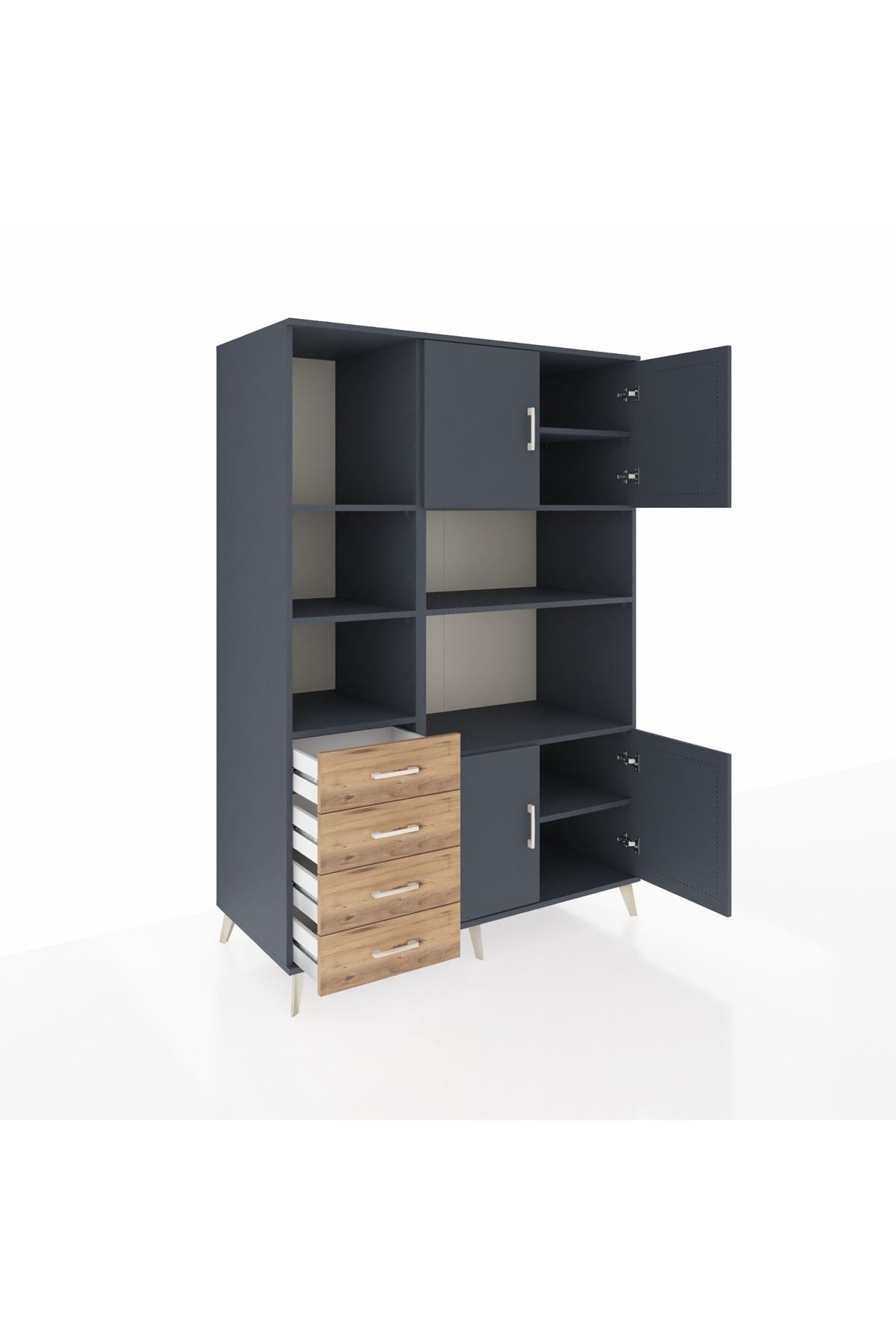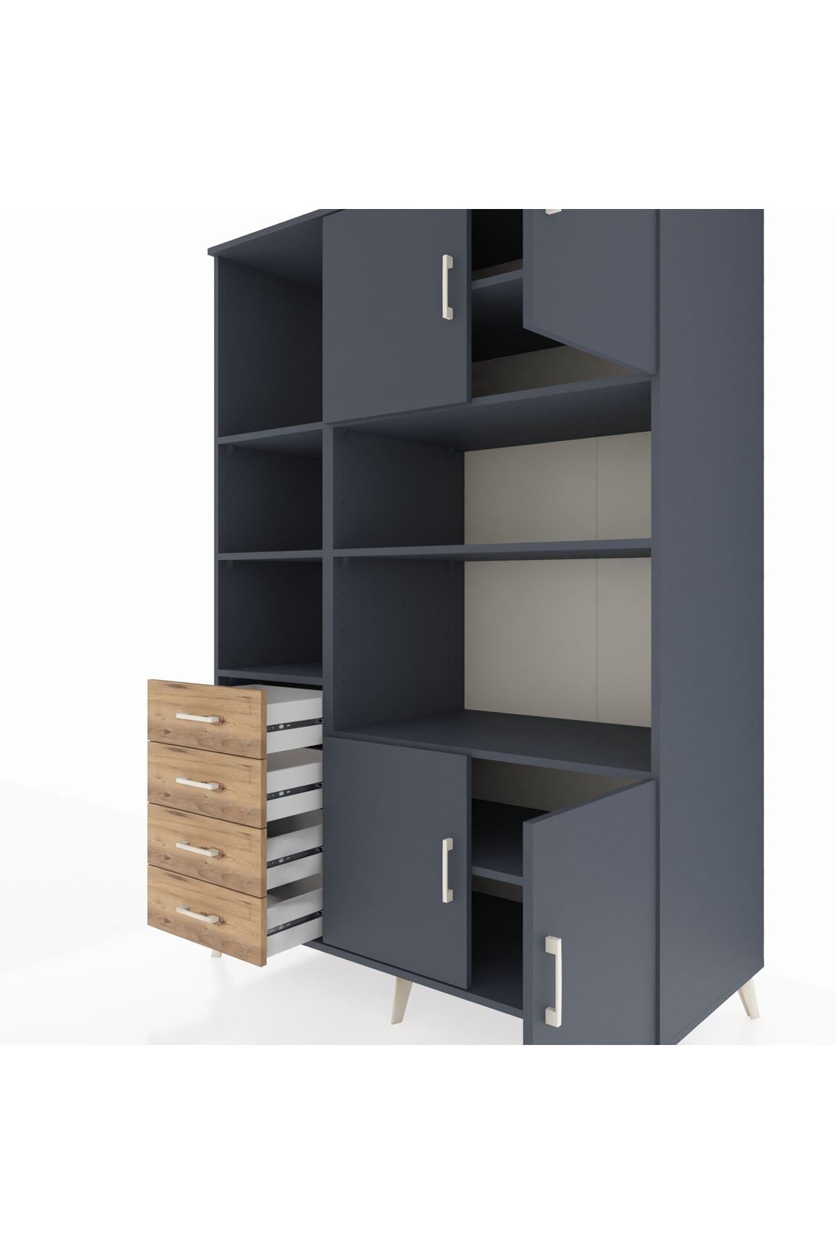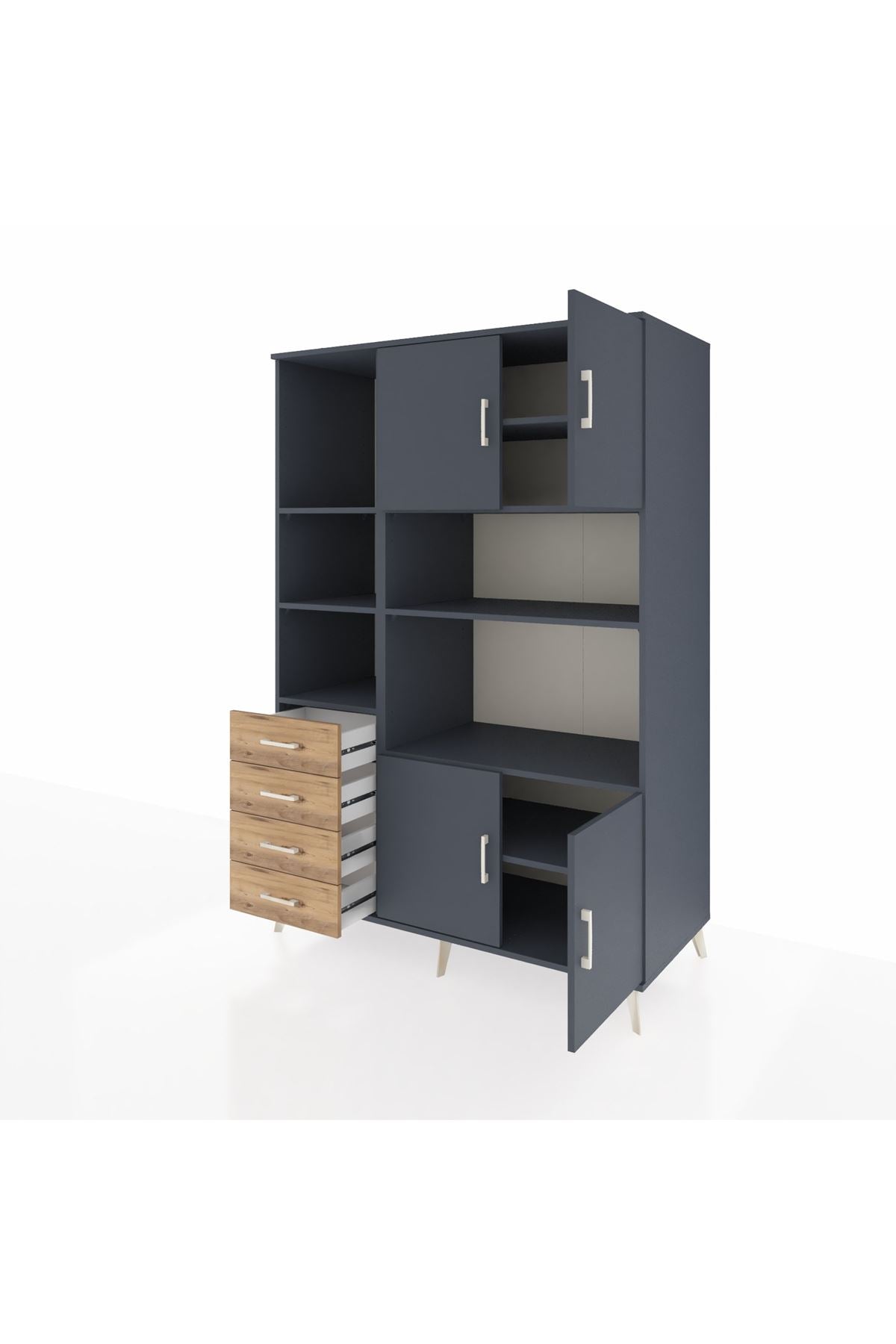Kronos Dolap 8 Raflı 4 Çekmeceli 4 Kapaklı 132x59x195 Antrasit-Antrasit/Çam