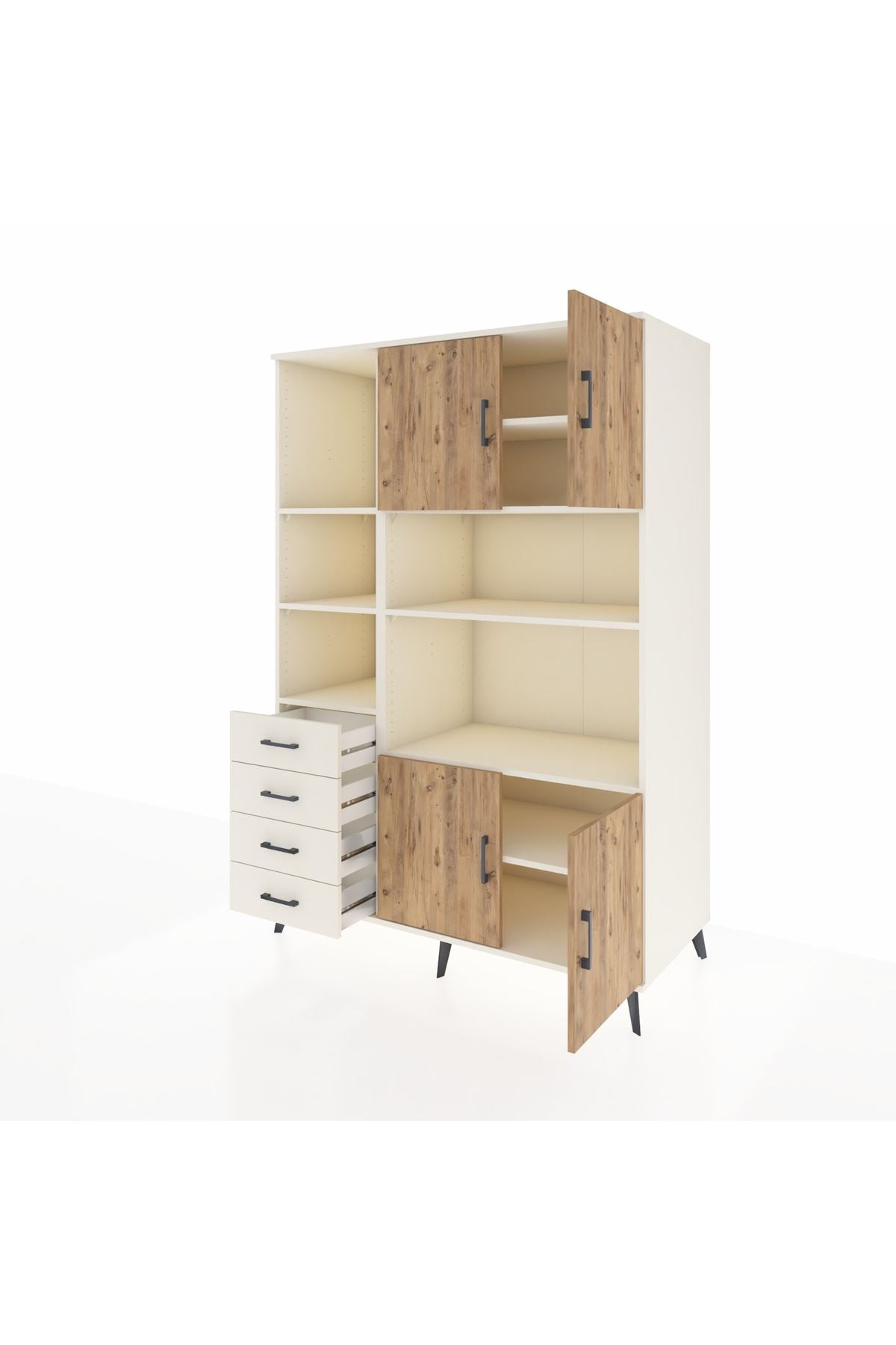 Kronos Dolap 8 Raflı 4 Çekmeceli 4 Kapaklı 132x59x195 Aytaşı-Çam/Aytaşı