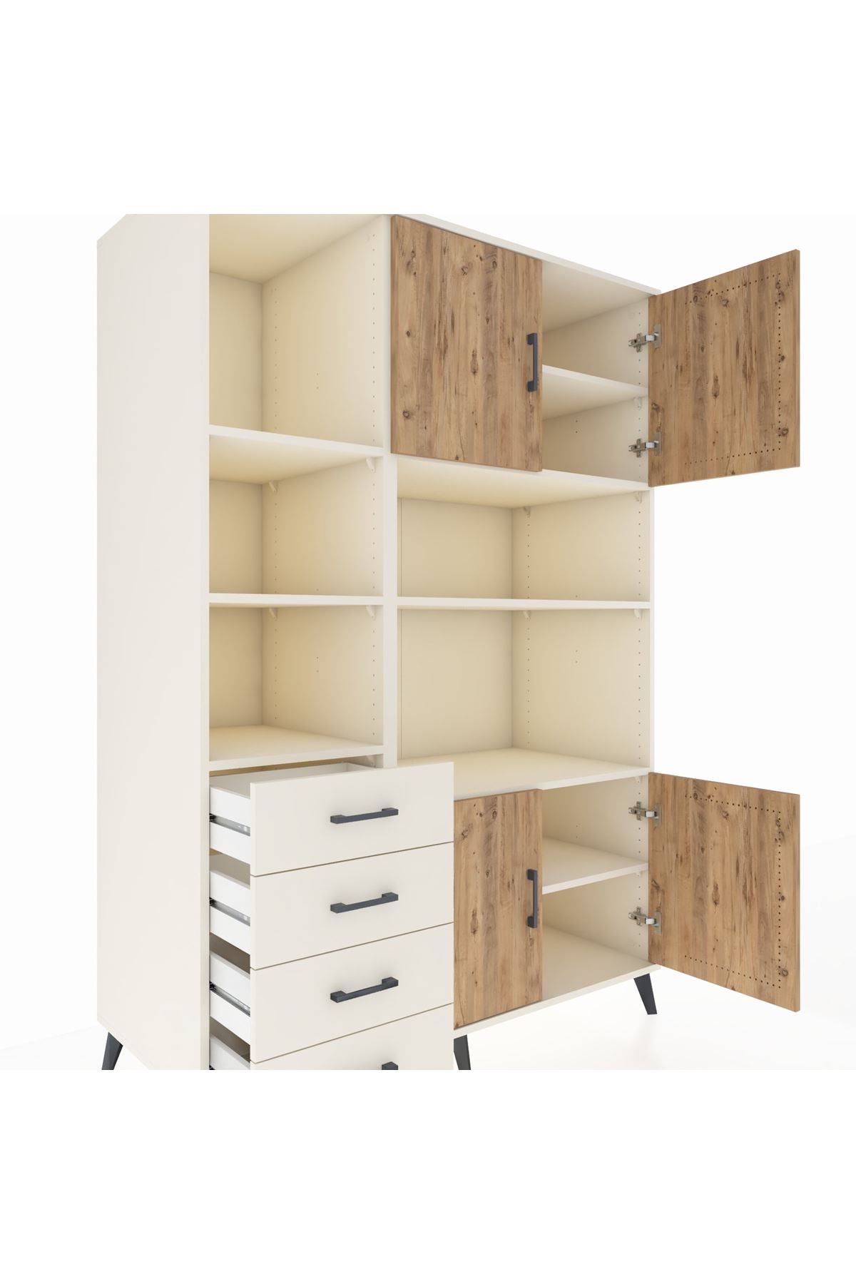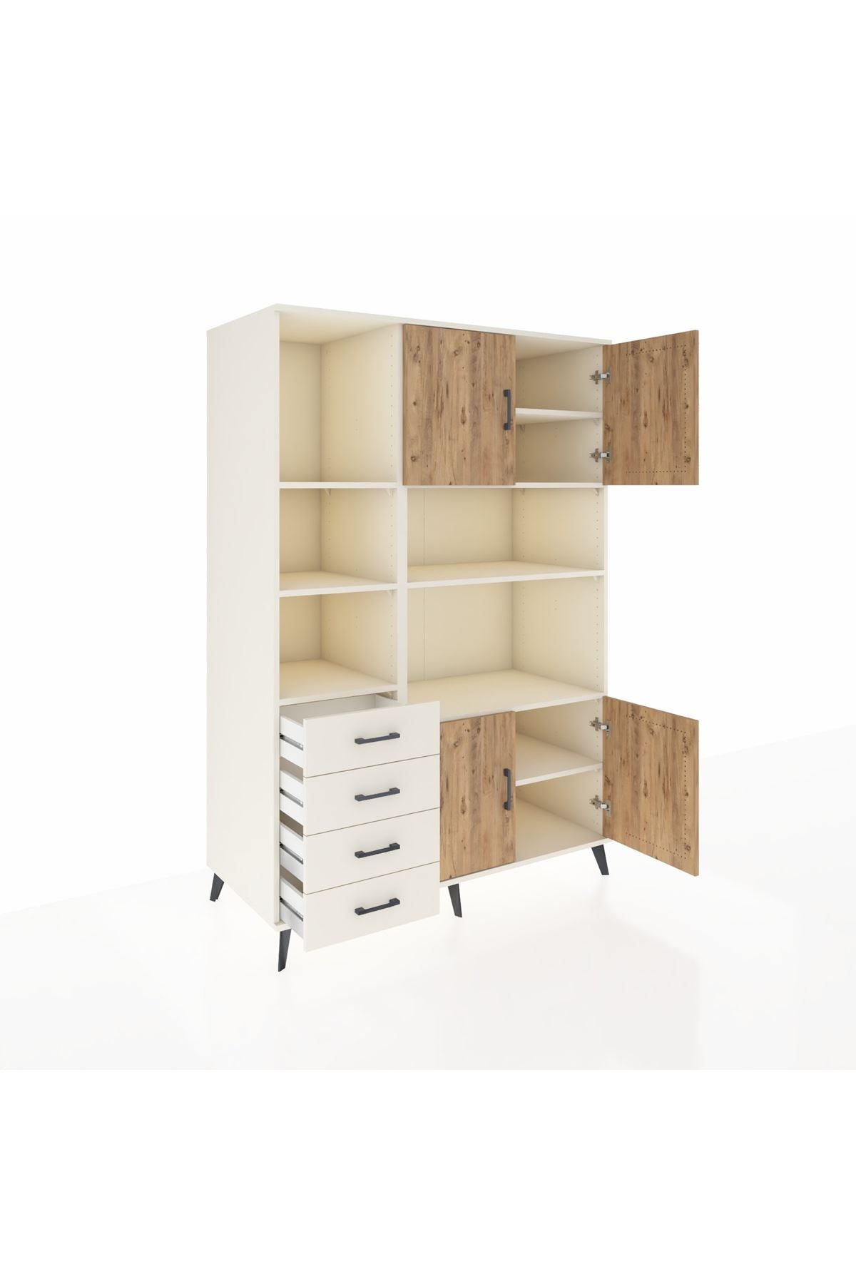 Geniş iç hacmi, 8 rafı, 4 çekmecesi ve 4 kapaklı tasarımı sayesinde tüm eşyalarınızı düzenli ve kolayca saklayabilirsiniz.