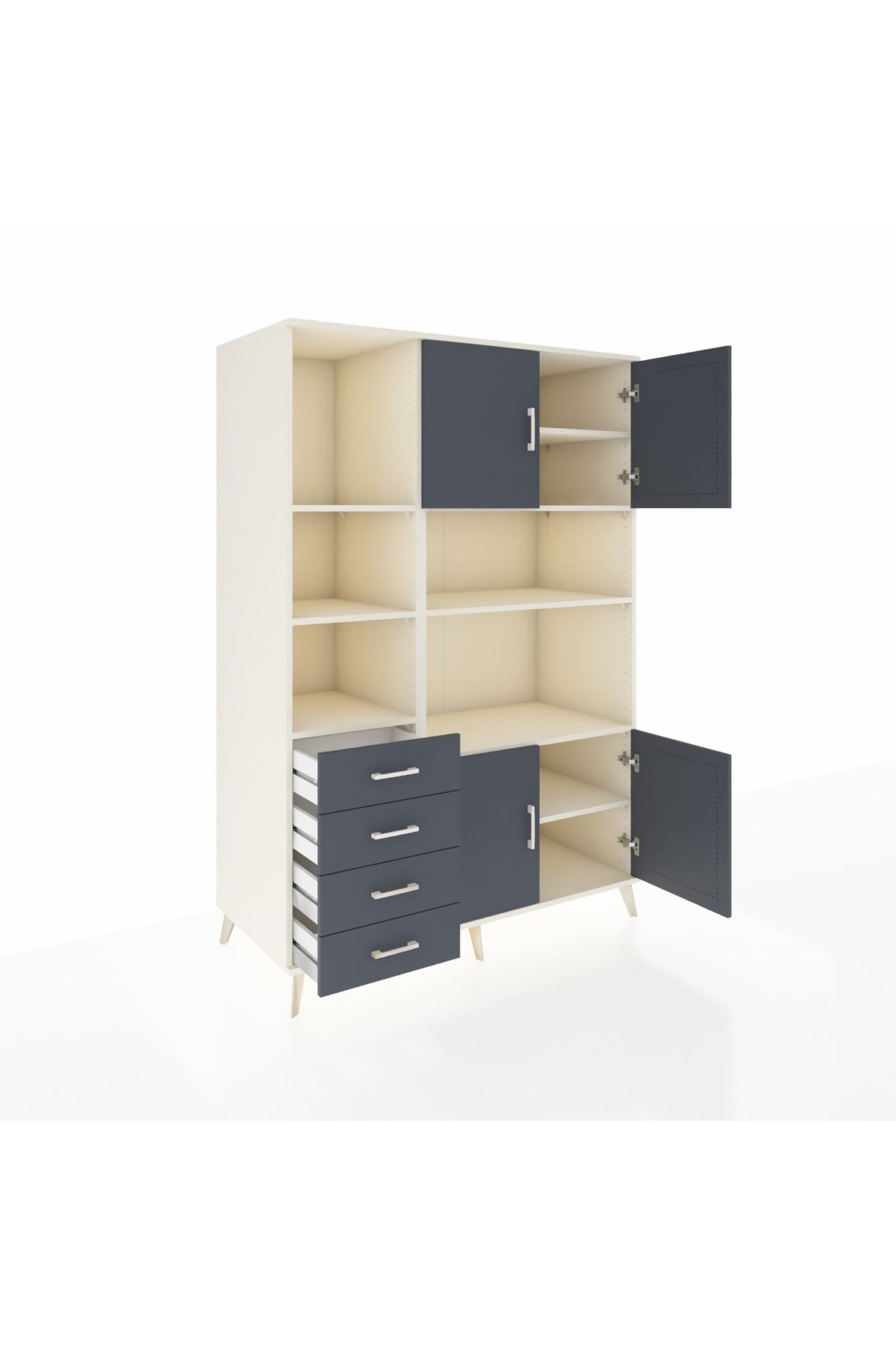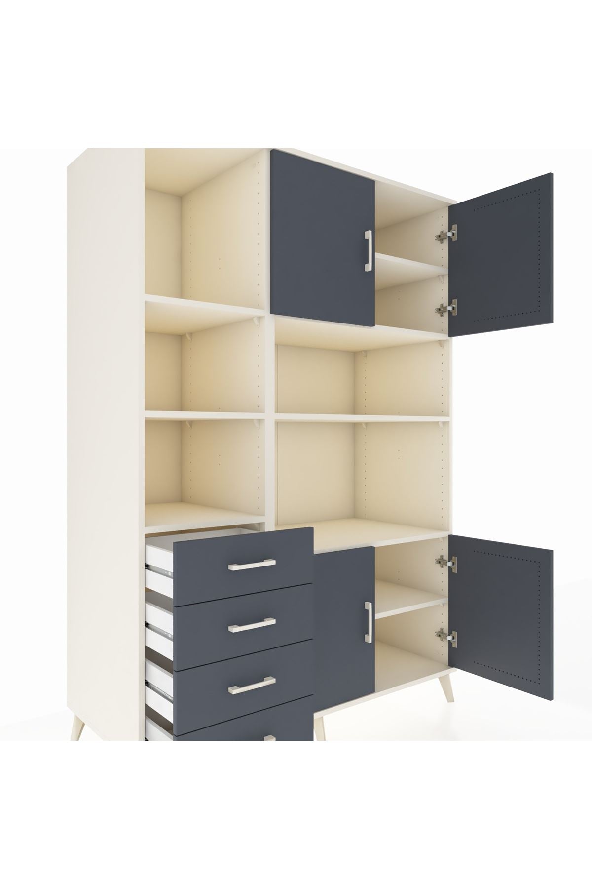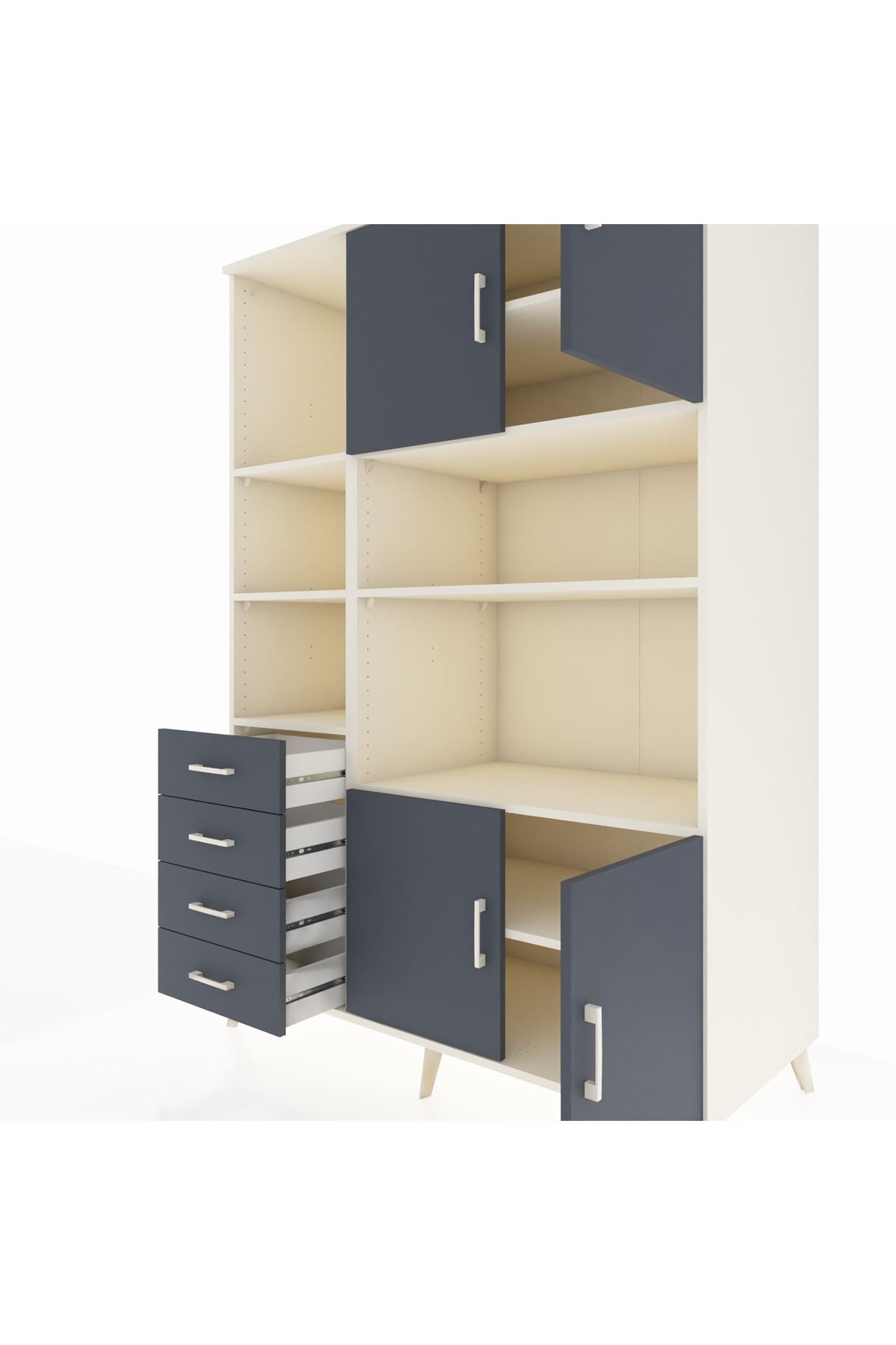 8 geniş rafı ile kitap, dosya, kıyafet ve ev eşyalarınızı kolayca organize edebilirsiniz. 4 derin çekmecesi ve 4 kapaklı bölmesiyle günlük ihtiyaçlarınızı elinizin altında tutar. Aytaşı ve antrasitin zamansız uyumu, yaşam alanınıza modern bir dokunuş katar. Kullanışlı ölçüleri sayesinde ister oturma odasında ister yatak odasında, ister ofiste mükemmel uyum sağlar.