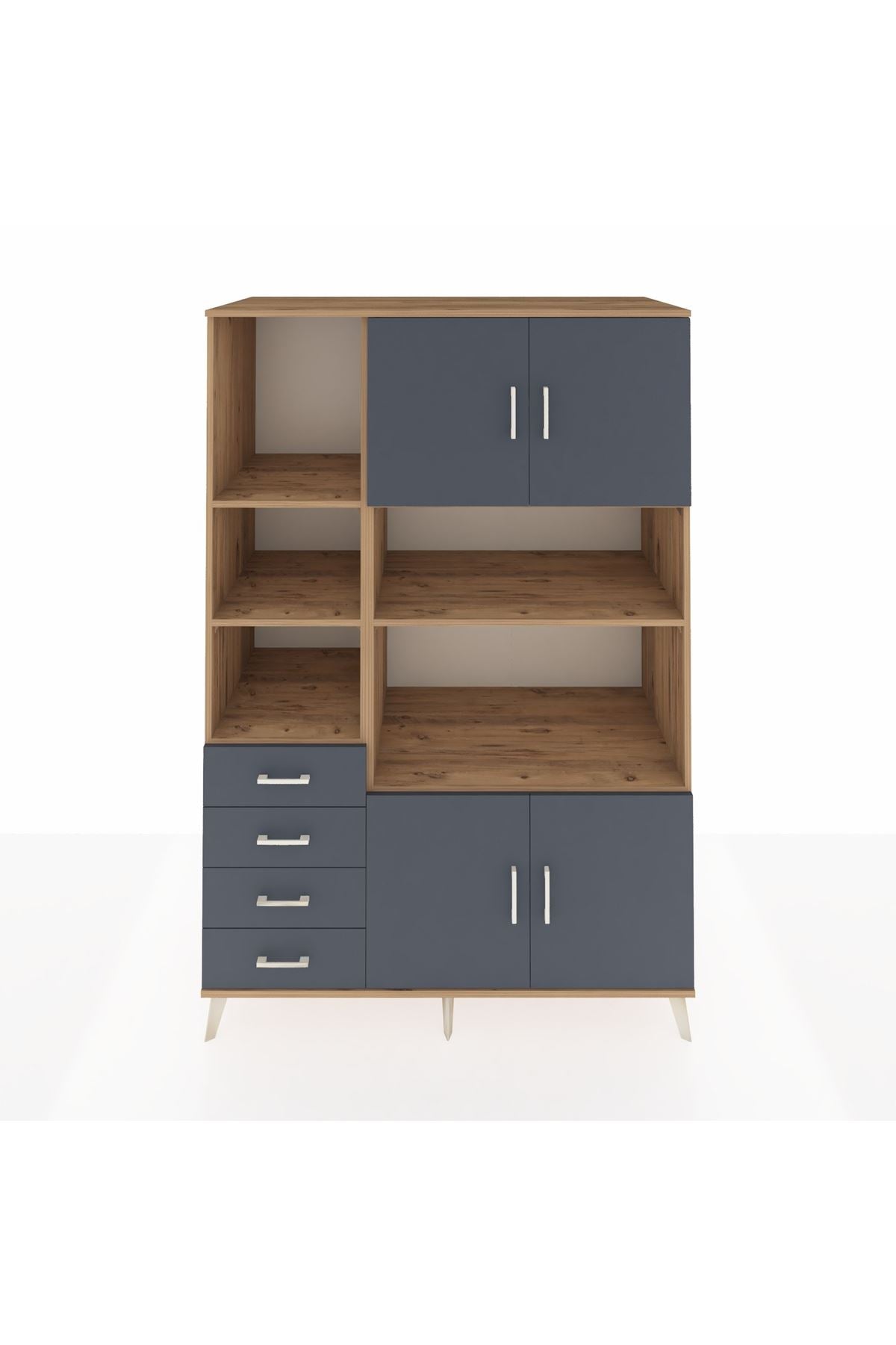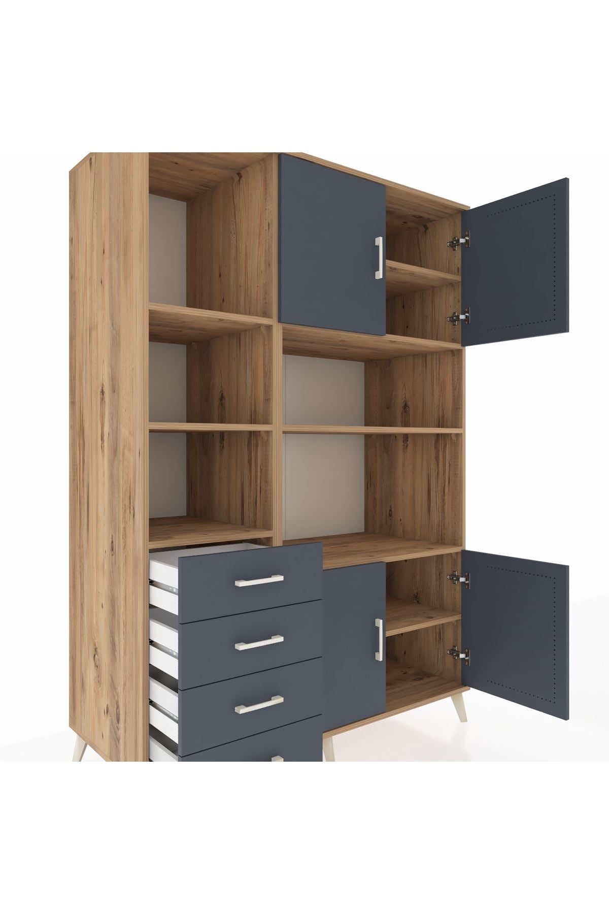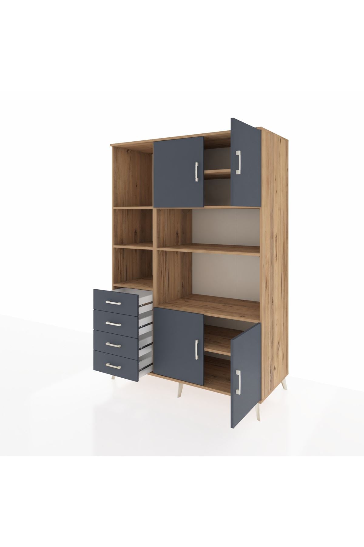 Kronos Dolap 8 Raflı 4 Çekmeceli 4 Kapaklı 132x59x195 Çam-Antrasit/Antrasit