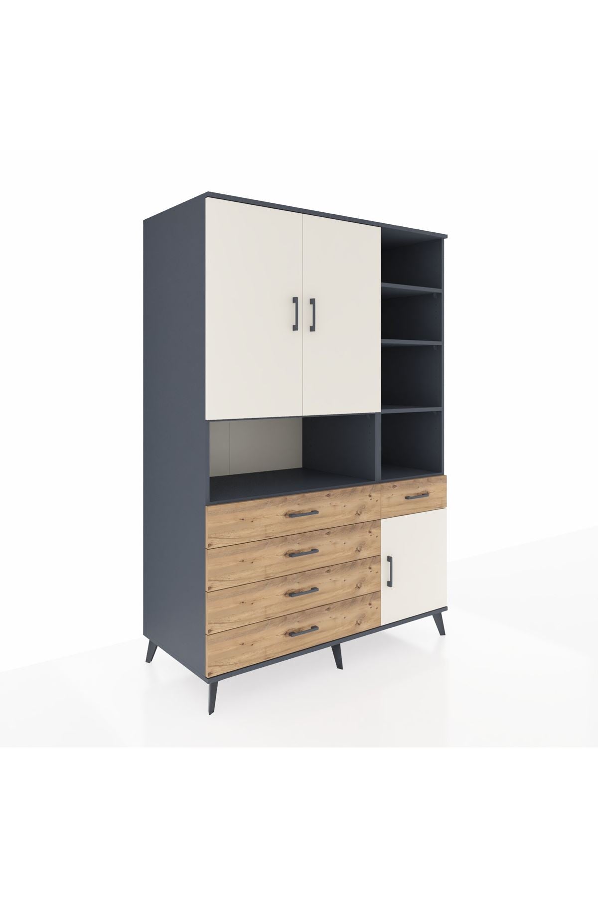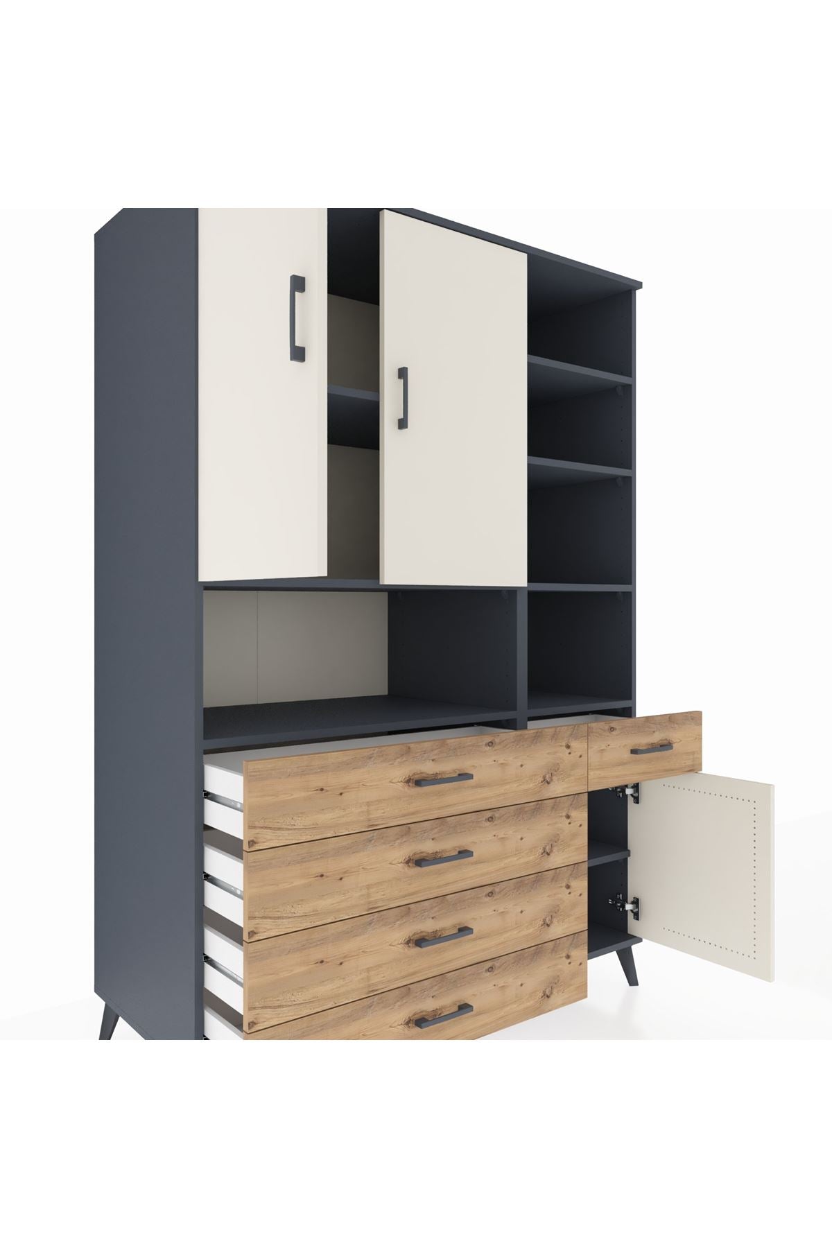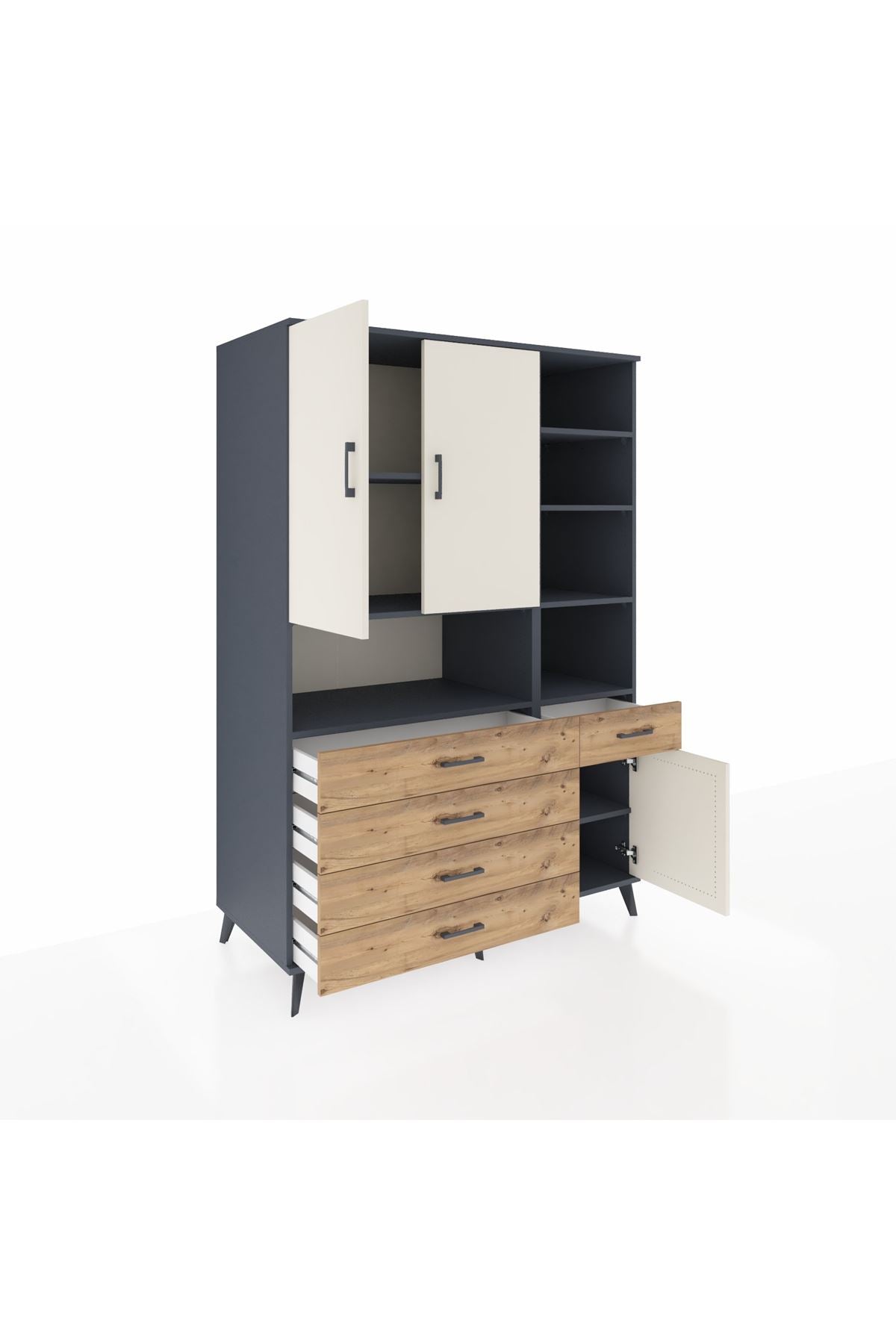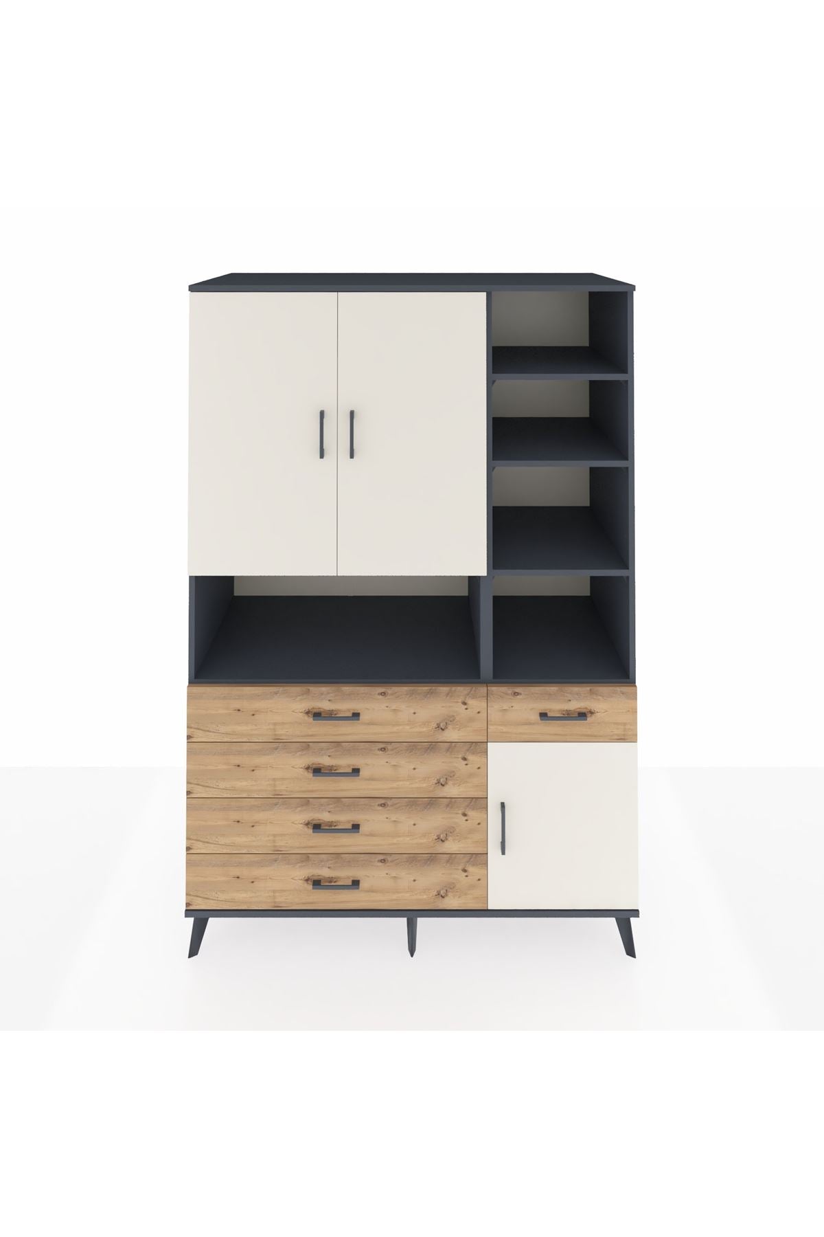 132 cm genişlik, 59 cm derinlik ve 195 cm yüksekliğiyle modern alanlar için mükemmel boyutlarda tasarlandı. Antrasit ve aytaşı/çam renk kombinasyonu, yaşam alanınıza şık ve zamansız bir dokunuş katar. 🌟