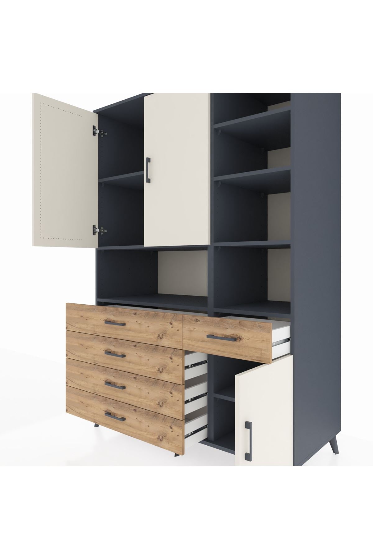 Kronos Dolap 8 Raflı 5 Çekmeceli 3 Kapaklı 132x59x195 Antrasit-Aytaşı/Çam