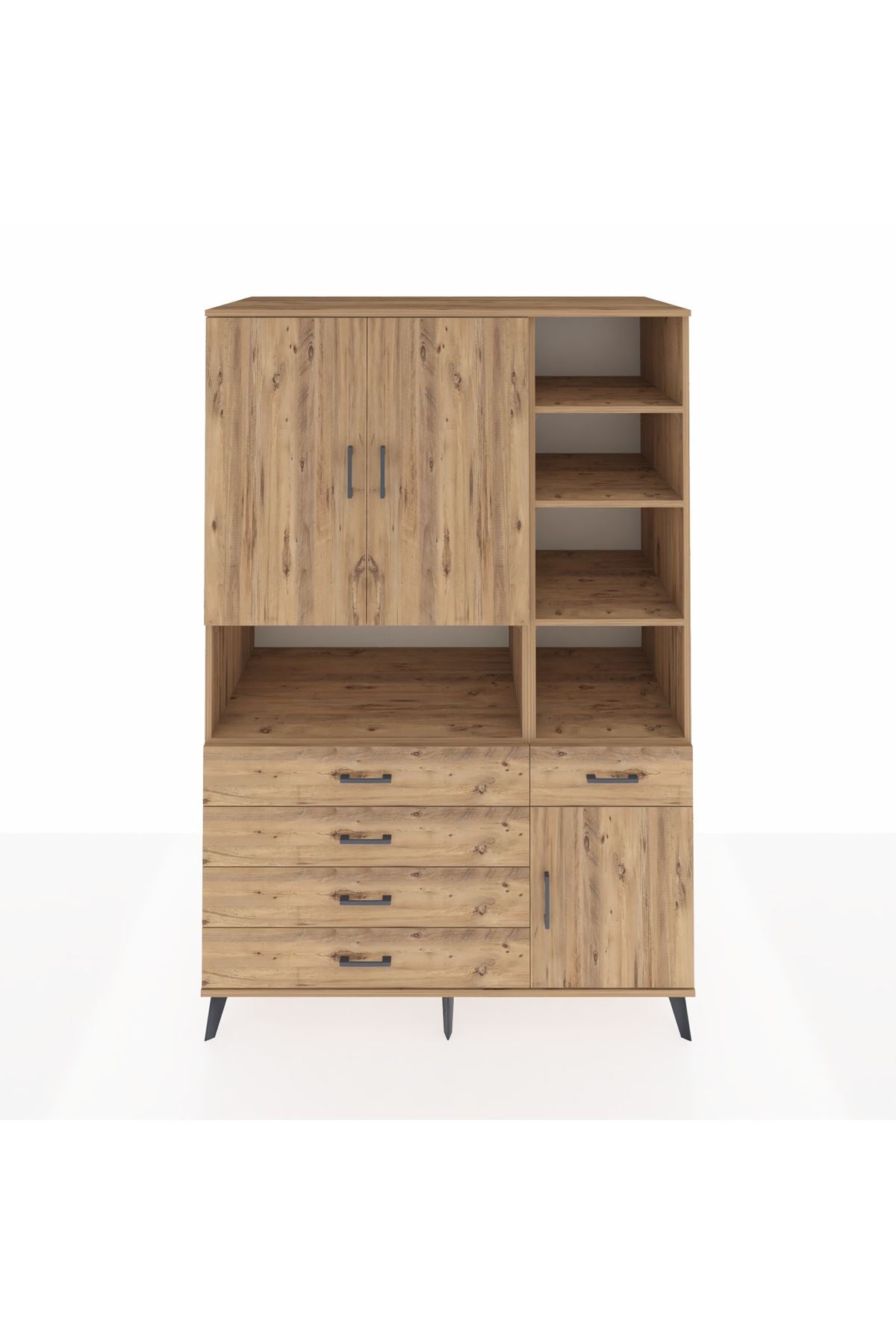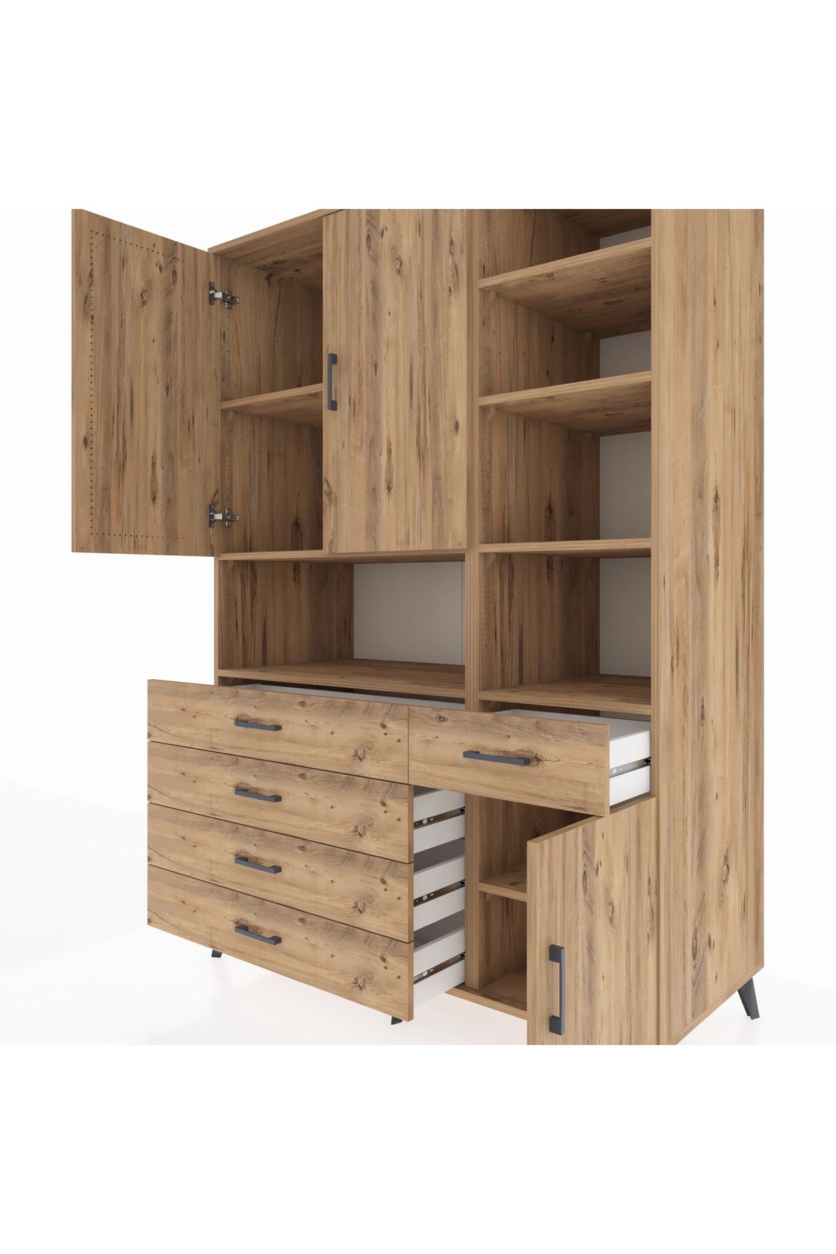 Kronos Dolap 8 Raflı 5 Çekmeceli 3 Kapaklı 132x59x195 Çam-Çam/Çam